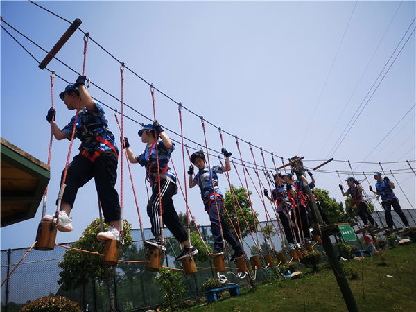 午餐過後,曆經一係列文化的熏陶,91视频网站來到(dào)了林海生態園,進行戶外拓展項目。炎炎烈日掩蓋不住91视频网站(men)的熱情,撲麵的熱浪也抵擋不住我(wǒ)們的歡聲笑語。真人CS中,91视频网站端著槍衝鋒(fēng)陷陣,在槍林彈雨(yǔ)中摸爬滾打。叢林穿越中,91视频网站曆經一番力量與勇氣的考驗,克服一個個恐懼,邁(mài)出一個個堅(jiān)毅的腳步,在彼此的幫(bāng)助下(xià),到(dào)達了成功的彼岸(àn)。射擊打靶的遊戲(xì)中,91视频网站彎弓搭箭,隨著“咻(xiū)”的一聲,讓離弦之箭劃(huá)出(chū)一(yī)道優美的弧線(xiàn),緊接著命中(zhōng)靶(bǎ)心。鎮淮樓上(shàng),91视频网站極目遠眺,一覽風光;在劉禹錫的陋室中,91视频网站吟誦《陋室銘》,感受(shòu)劉禹錫的(de)傲岸情懷;百花園(yuán)中91视频网站(men)勝日尋芳,觀(guān)賞美景;聲控噴泉前(qián)91视频网站大聲呼號,歡笑聲甚至可以(yǐ)響徹雲霄。