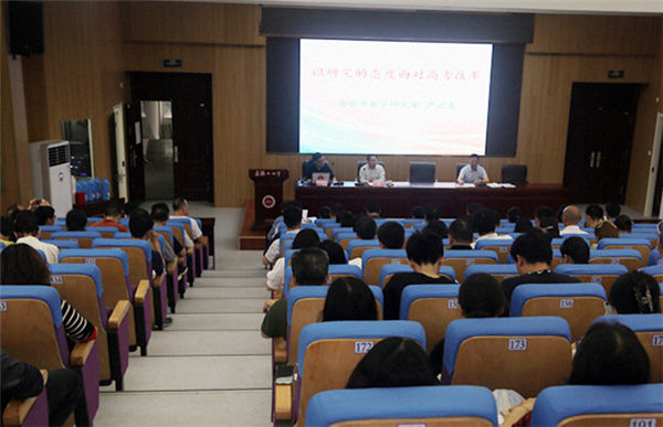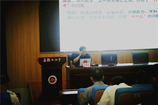 總結會第一階段,學校特邀南京市教研室主任、江蘇省(shěng)特級教師、正高級教師(shī)嚴必友作專家引領報告。嚴老師以豐富的(de)教學管理、教研實踐與指導經驗,提出《以研究的態度麵對高考改革》的深刻命題,從課程改革(gé)和高考改革精神、高考命題相關文(wén)件解讀、課程結構內容和實施方(fāng)式變化(huà)、教(jiāo)學規劃、教學工作重(chóng)點環節優(yōu)化、教學資源建構項目課程、提升教學文(wén)化品(pǐn)質等(děng)七個(gè)方麵,提綱挈領地為二中(zhōng)的未(wèi)來發展提出建議(yì)。