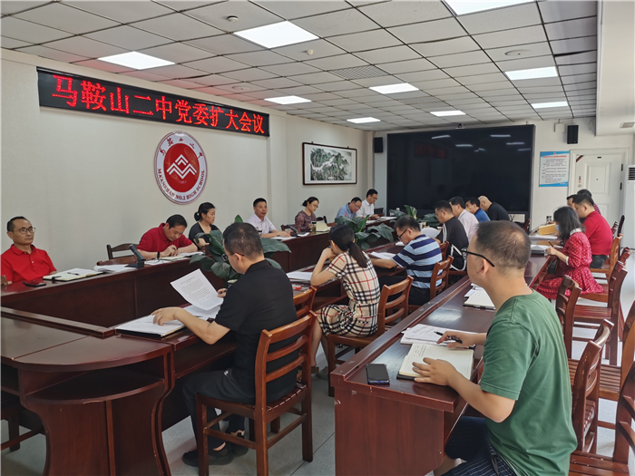 8月(yuè)9日,馬鞍山二中黨(dǎng)委在行政樓一樓會議室召開黨委(wěi)擴大會。黨委書記、校長王玉平主持會議,學(xué)校黨委委員、各支部書記、學校中層以上黨員幹部參加了會議。