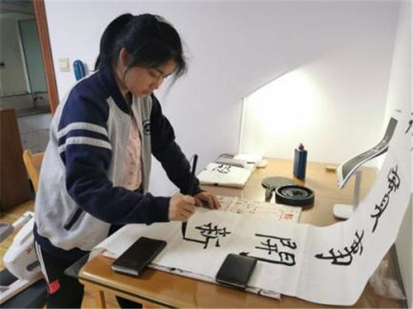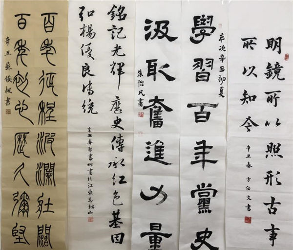 展開一張宣紙(zhǐ),拿起一支(zhī)毛筆,橫豎撇捺,起筆收筆,同學們滿懷激情,各顯身手,呈現了一幅幅精美的軟筆書法作品,或飄逸雋秀,或舒展開闊,或蒼勁(jìn)有力,充分展示了同學們深厚的基本功(gōng)底和(hé)對(duì)軟筆書法的熱愛。“百(bǎi)年征(zhēng)程波瀾壯闊百年初心曆久彌堅”“學史明理 學史增信 學史崇德 學史(shǐ)力行(háng)”“學習百年黨史 汲取奮進力量”“明鏡所以照形 古事所以知今”……一(yī)個個優美流暢(chàng)的漢字躍然紙上,一句句學習感悟留於心間。