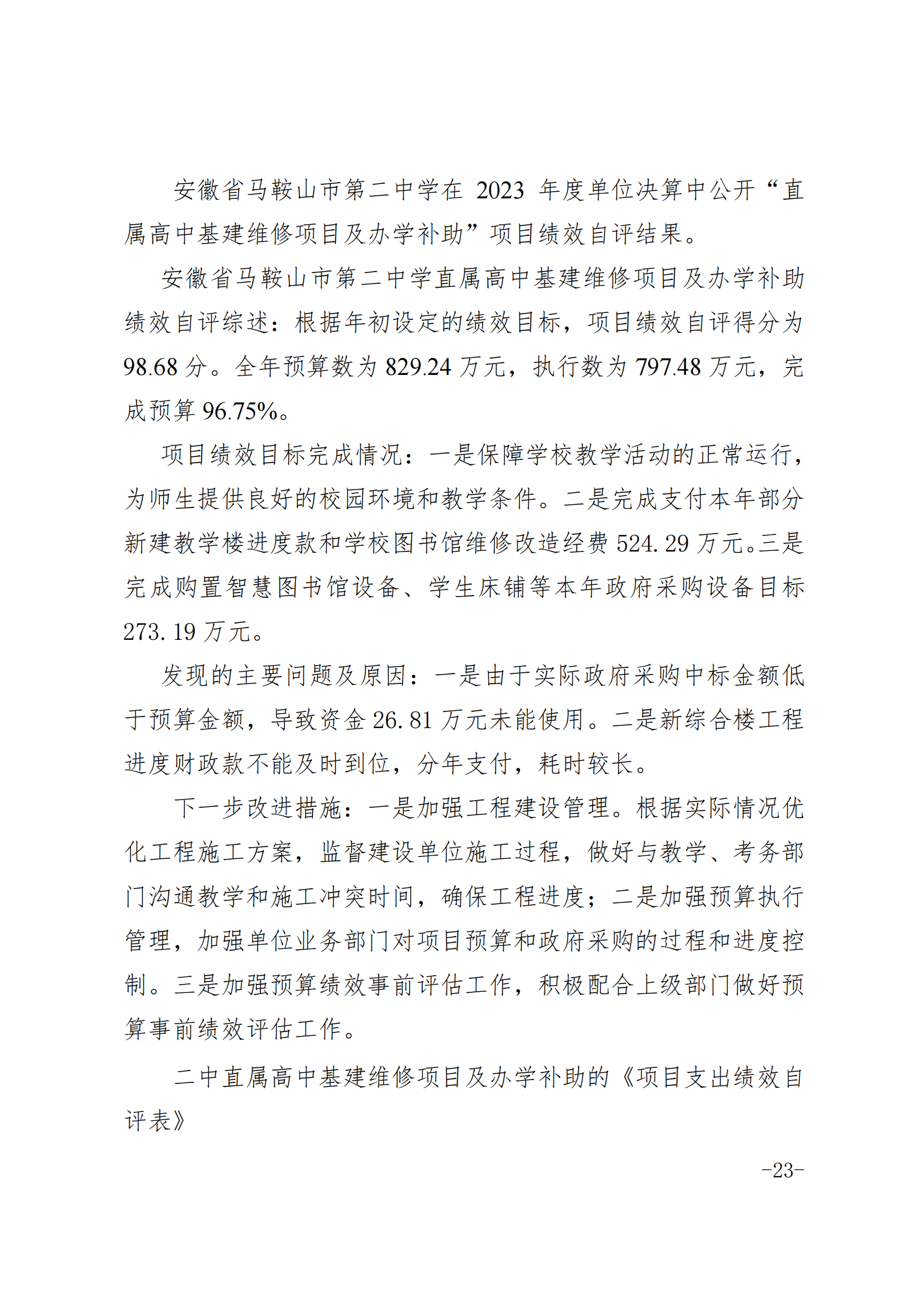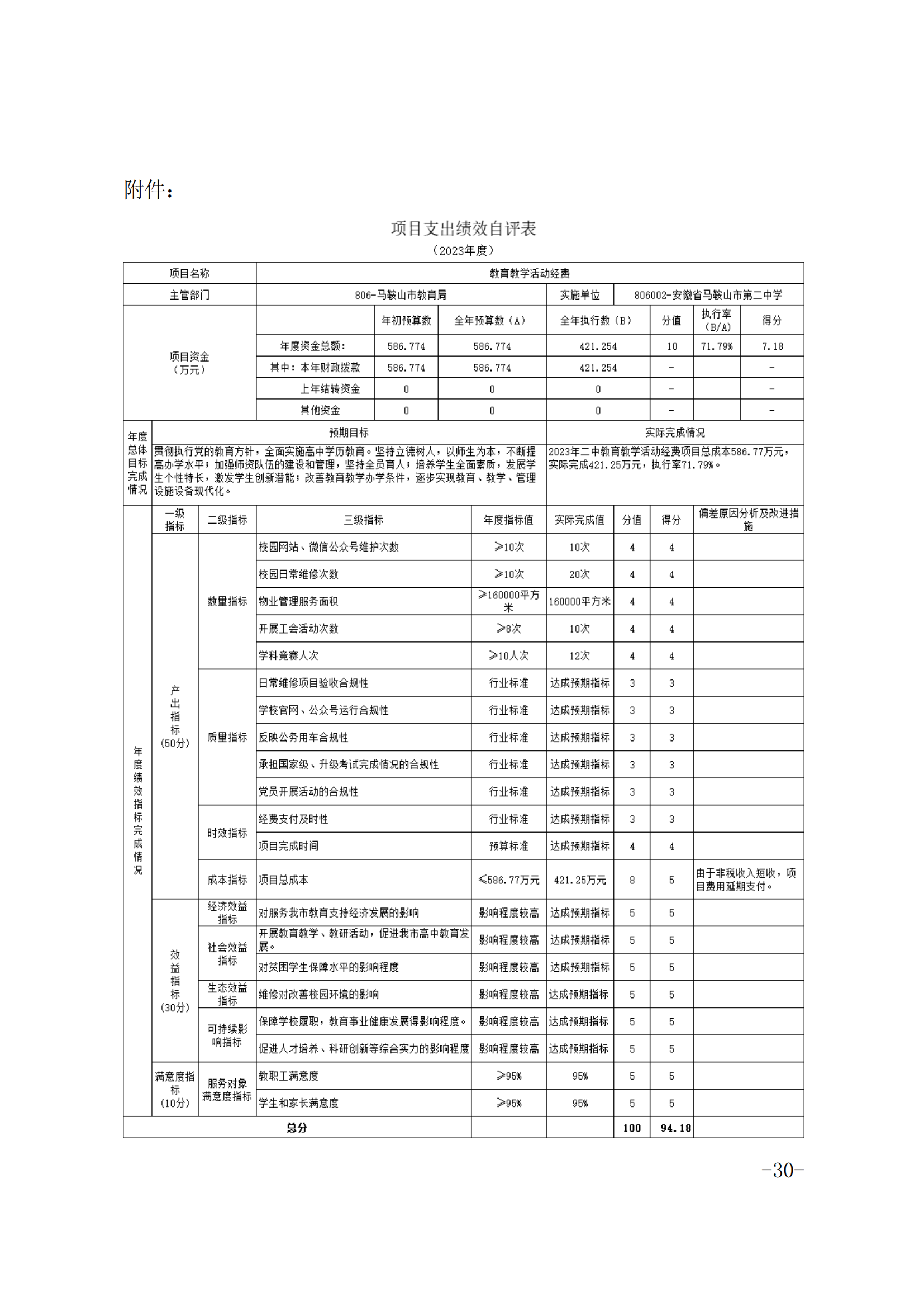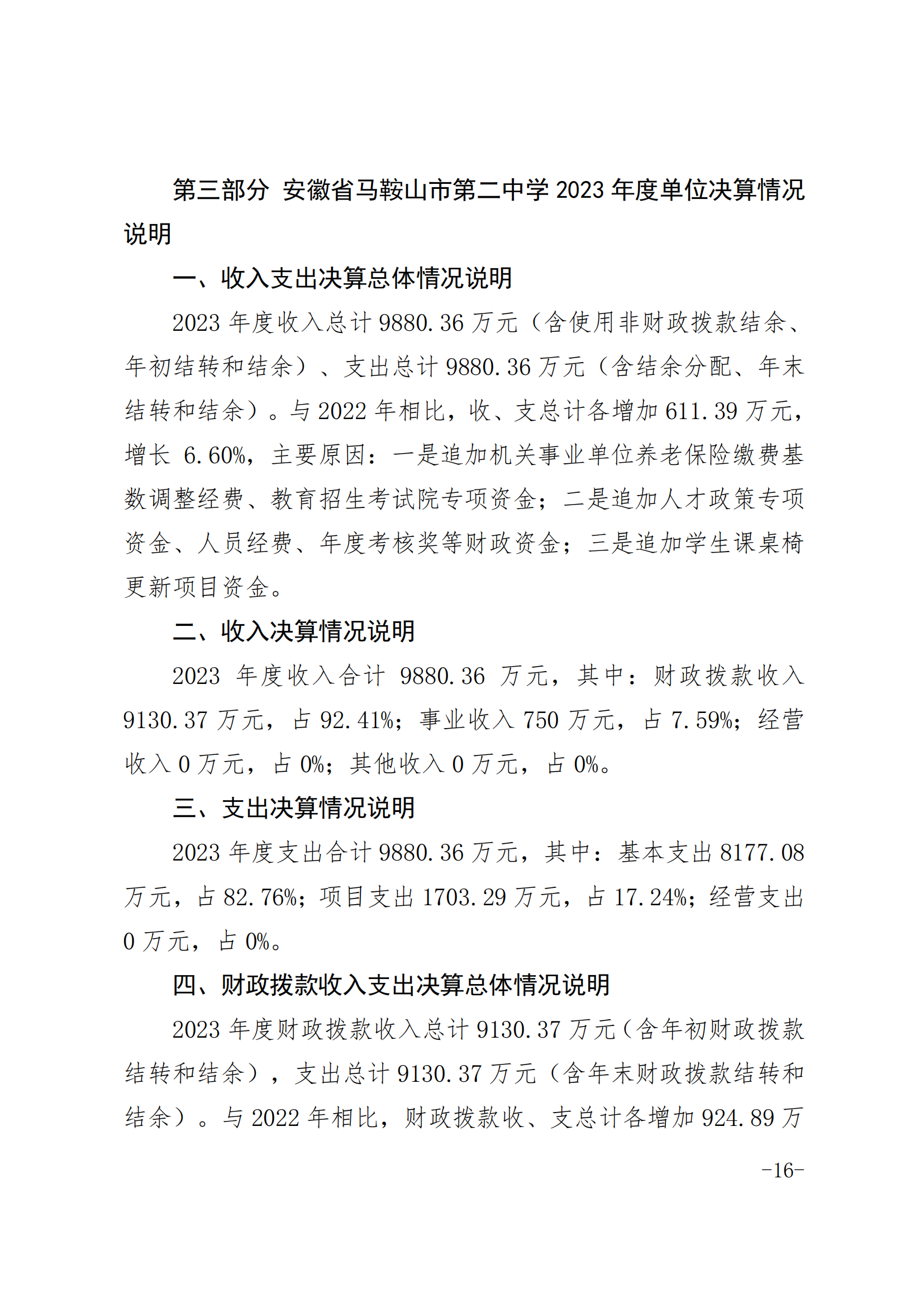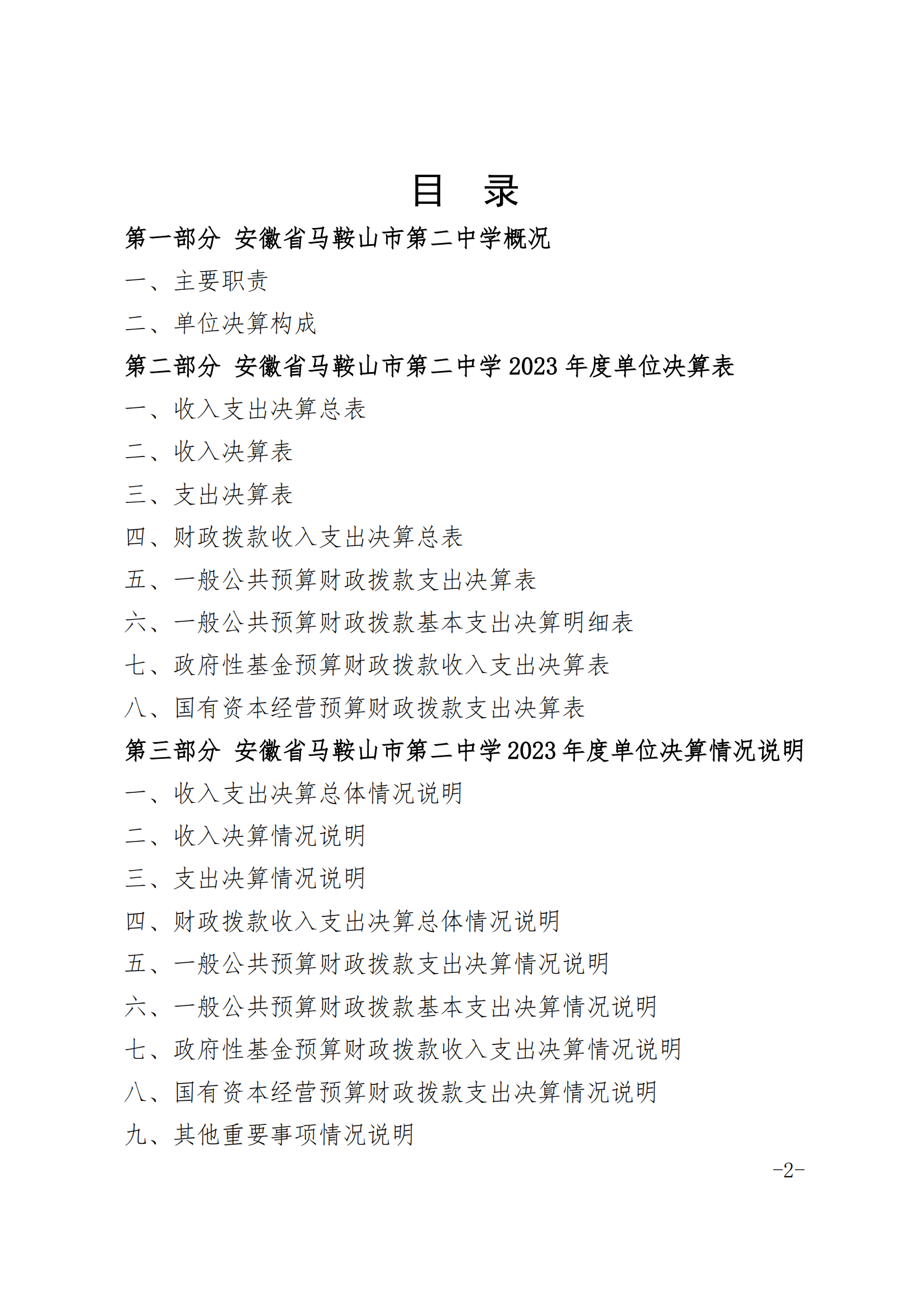 安(ān)徽省馬鞍山市第二中學2023年度單(dān)位決算