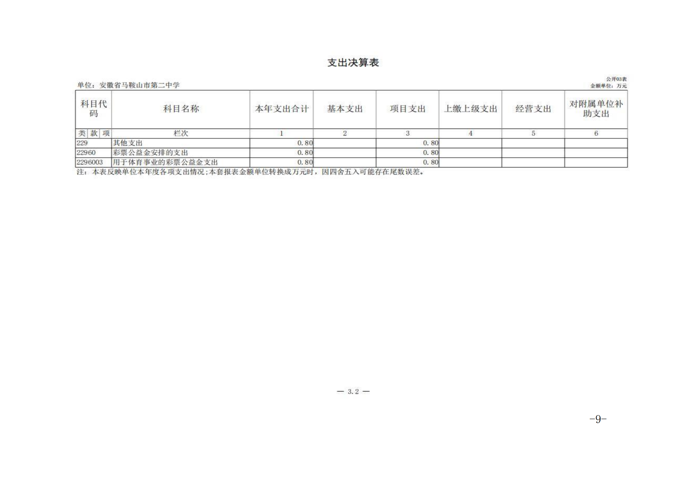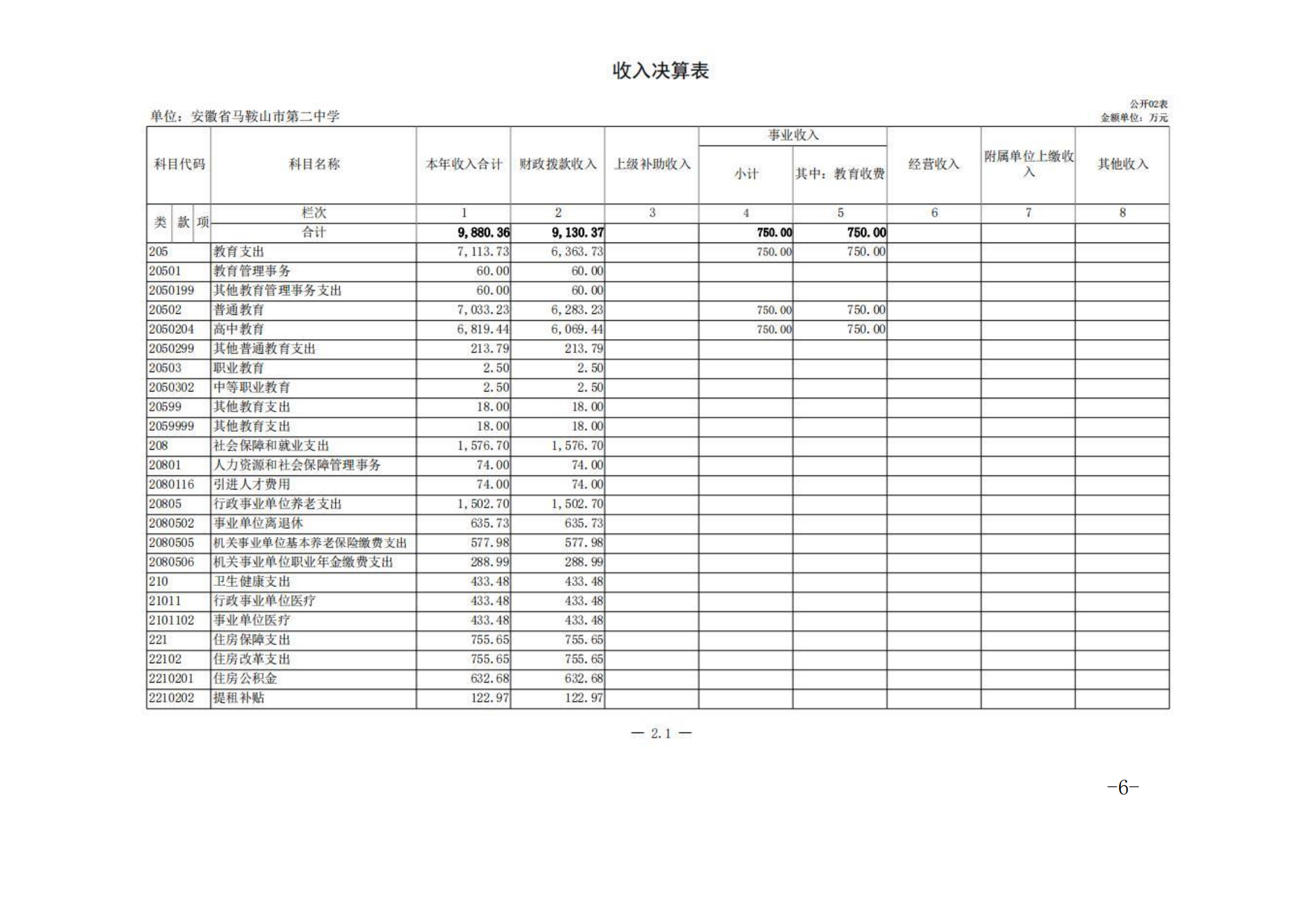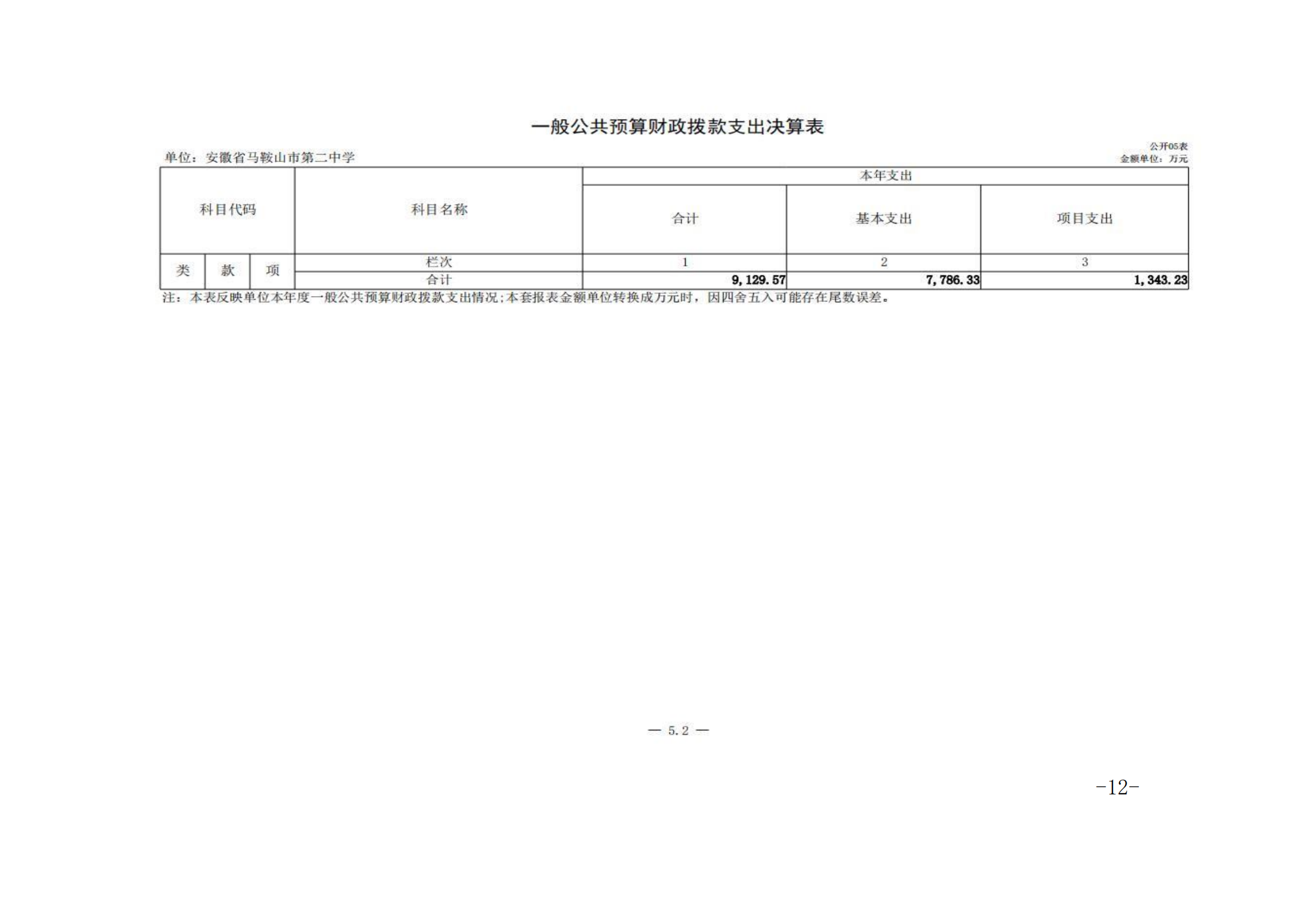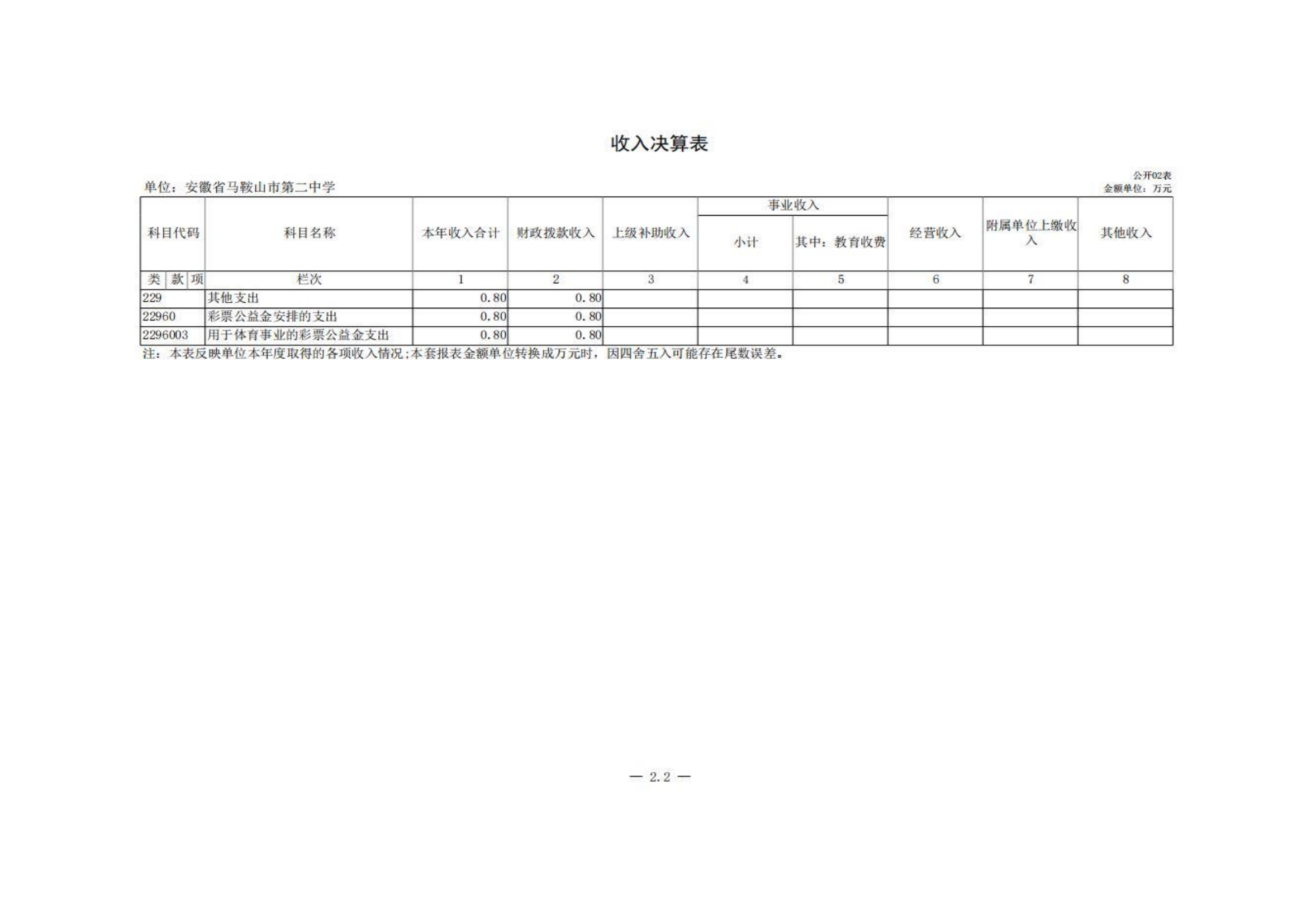 安徽省馬(mǎ)鞍山市第二中學2023年度單位決算
