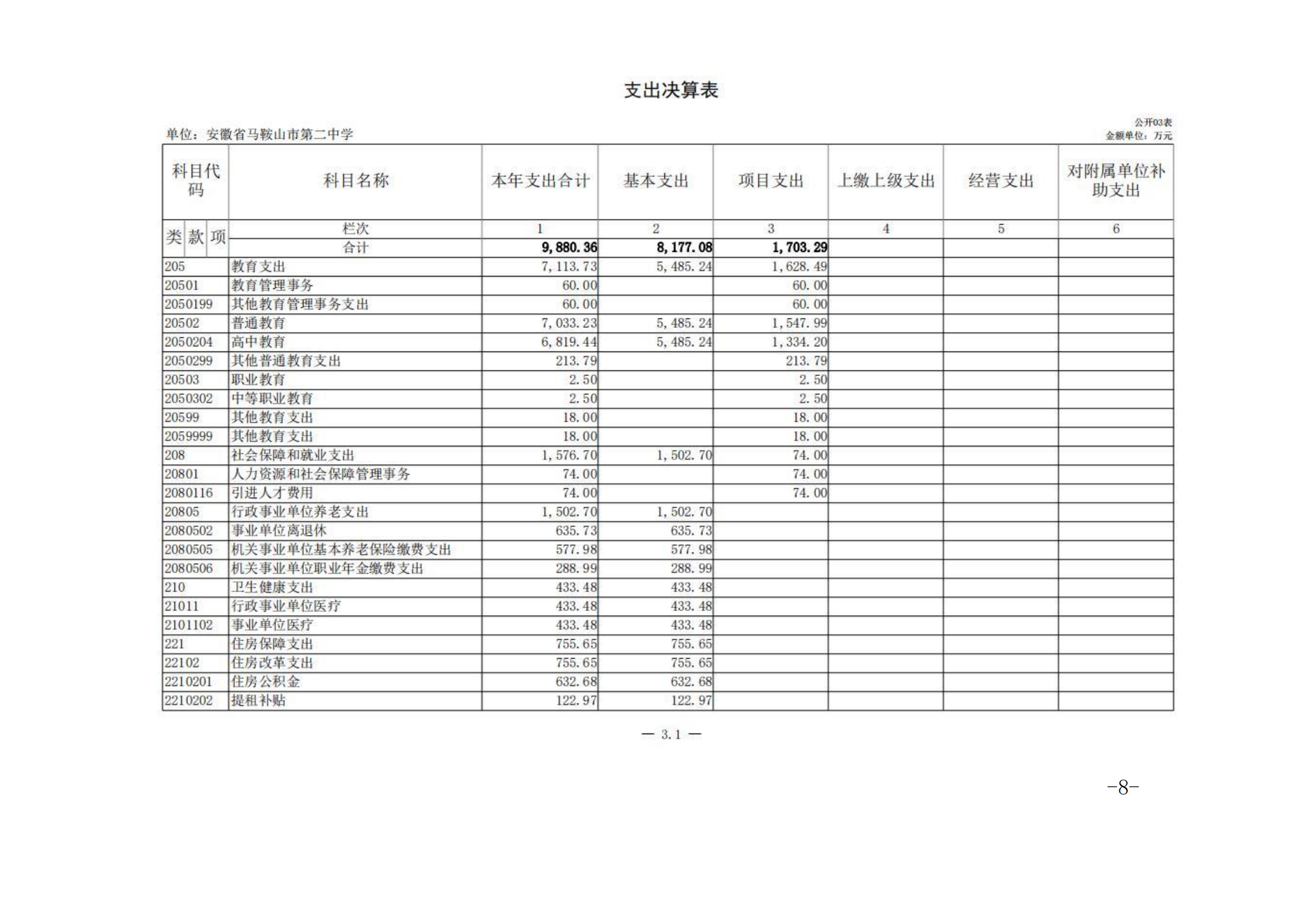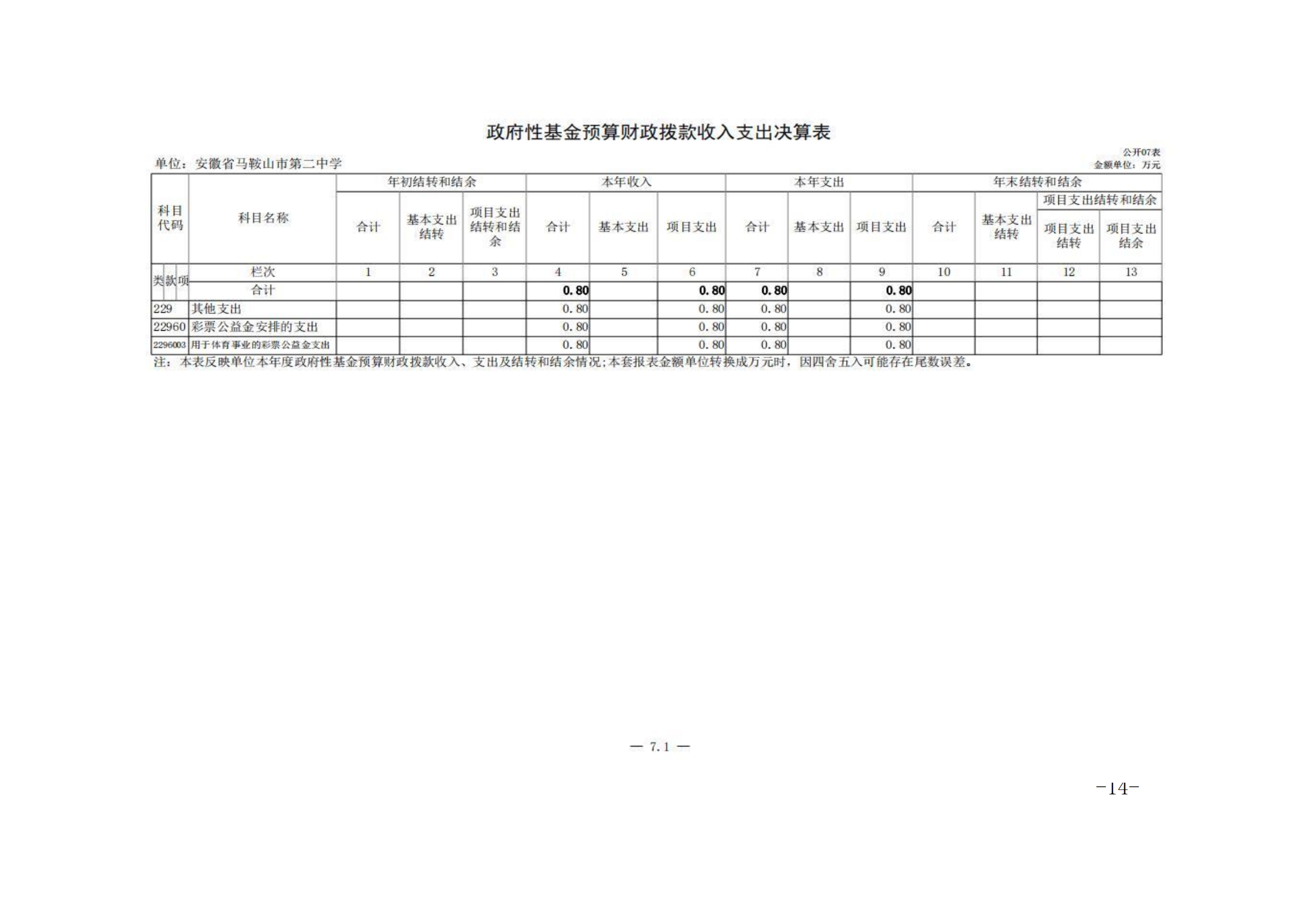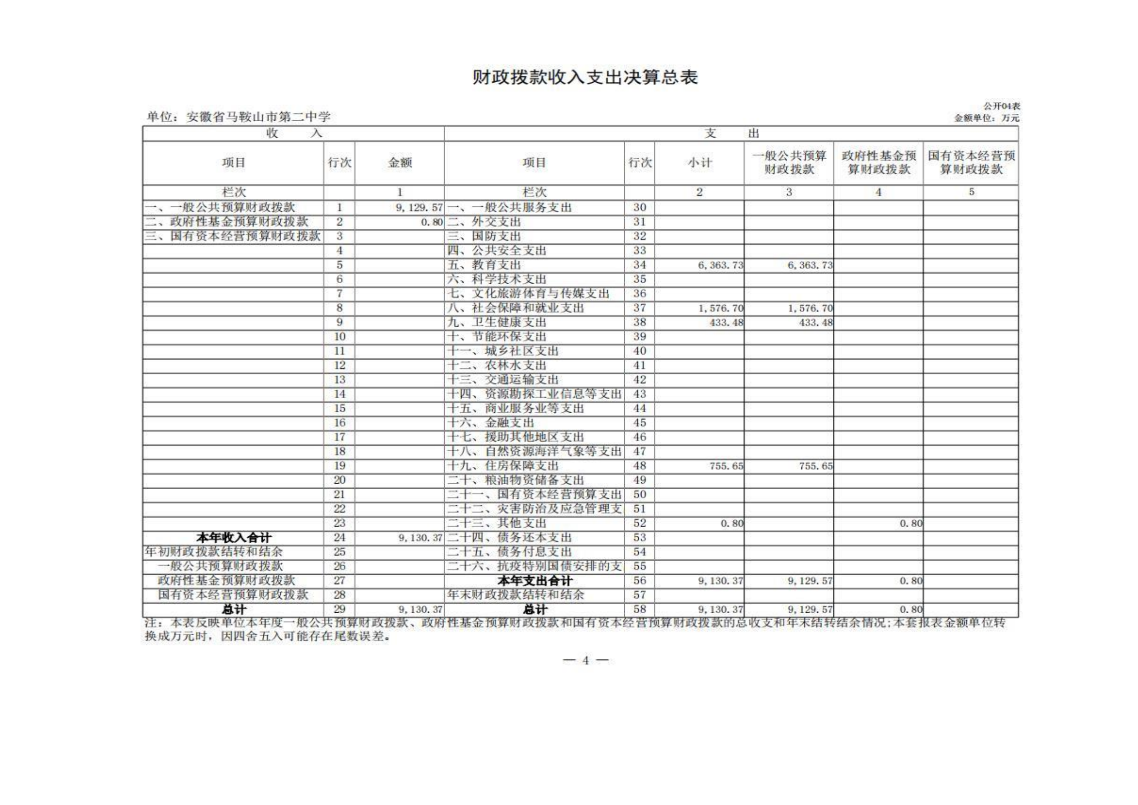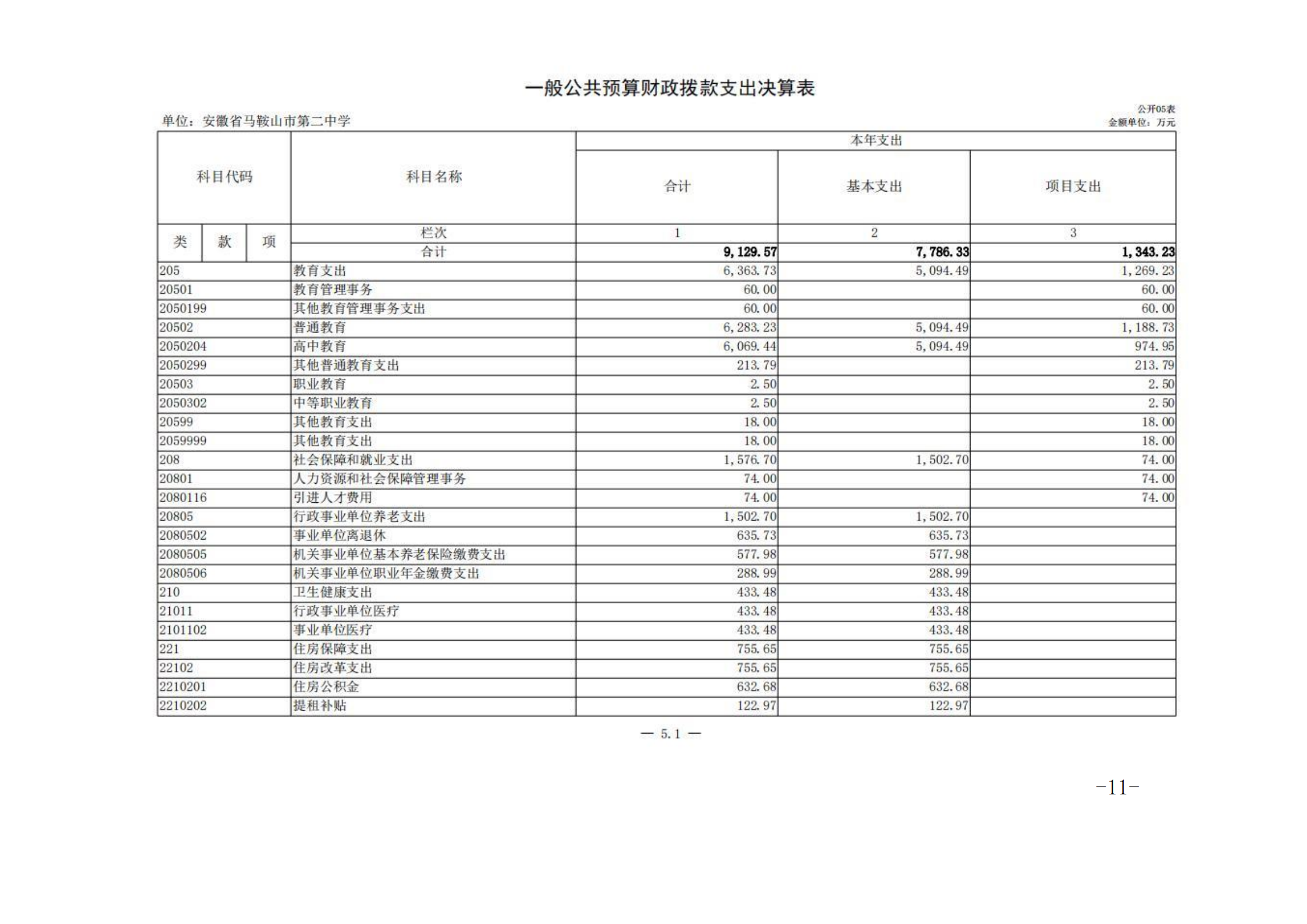 安徽省馬(mǎ)鞍山市第二中學2023年度單位決算