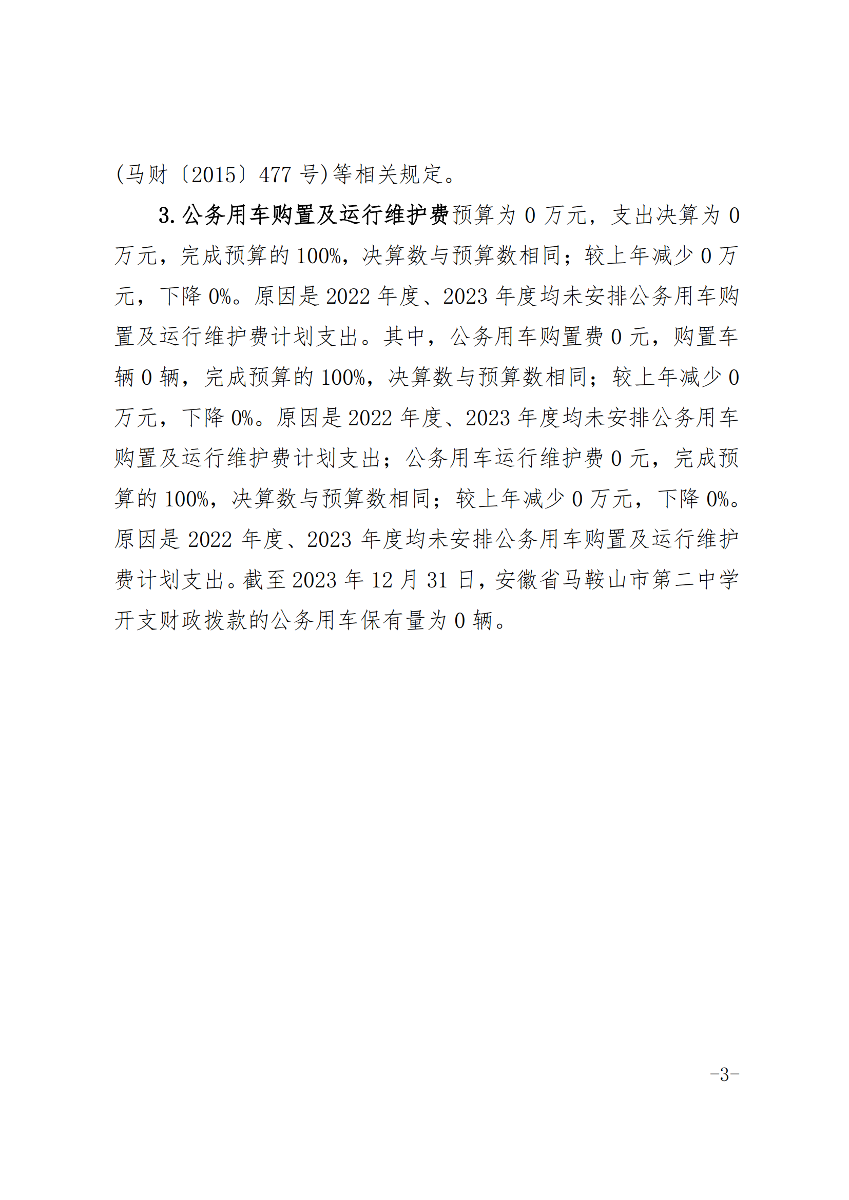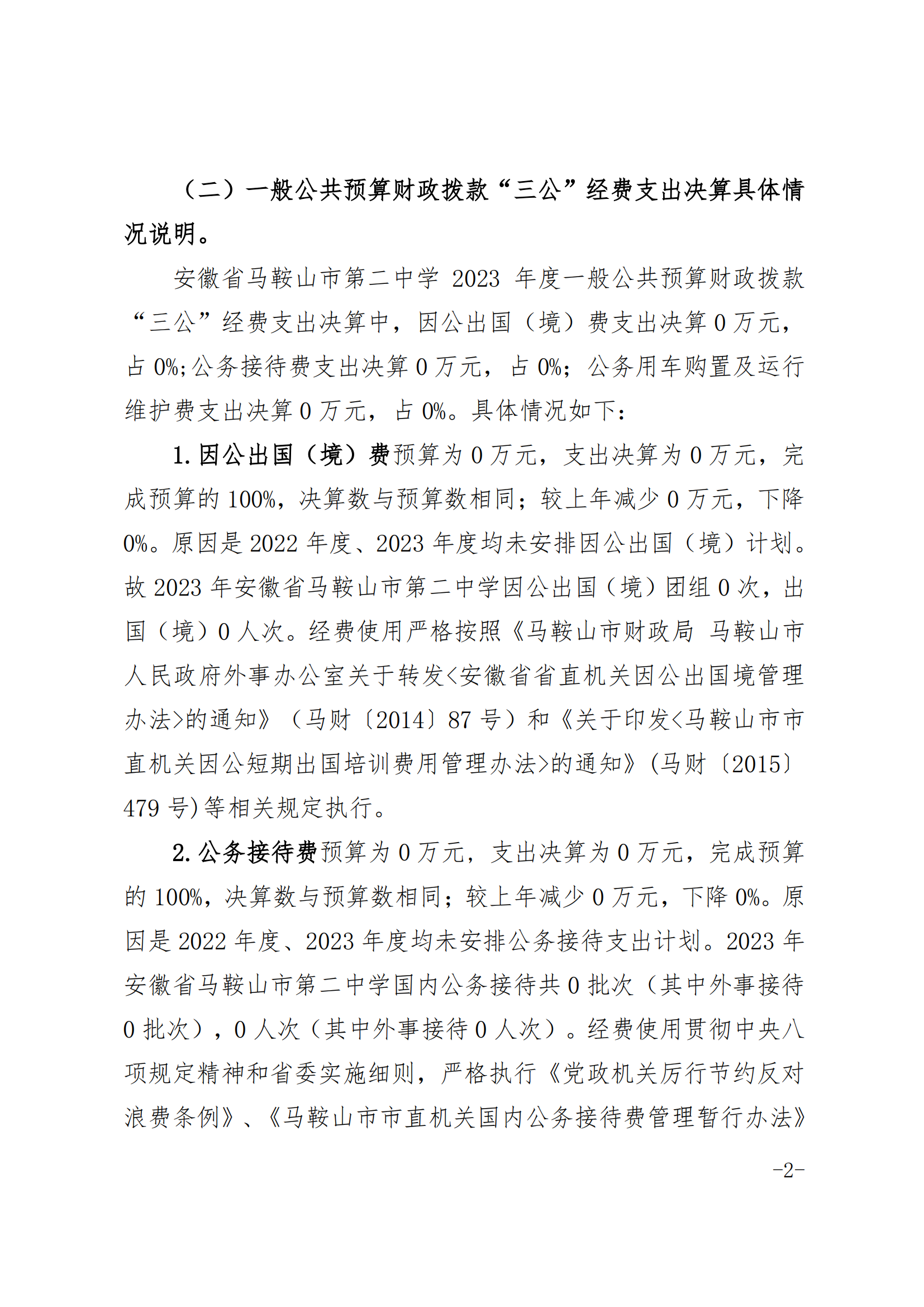安徽省馬(mǎ)鞍山市第二中學2023年度一般公共預算財(cái)政(zhèng)撥(bō)款“三(sān)公”經(jīng)費支出決算