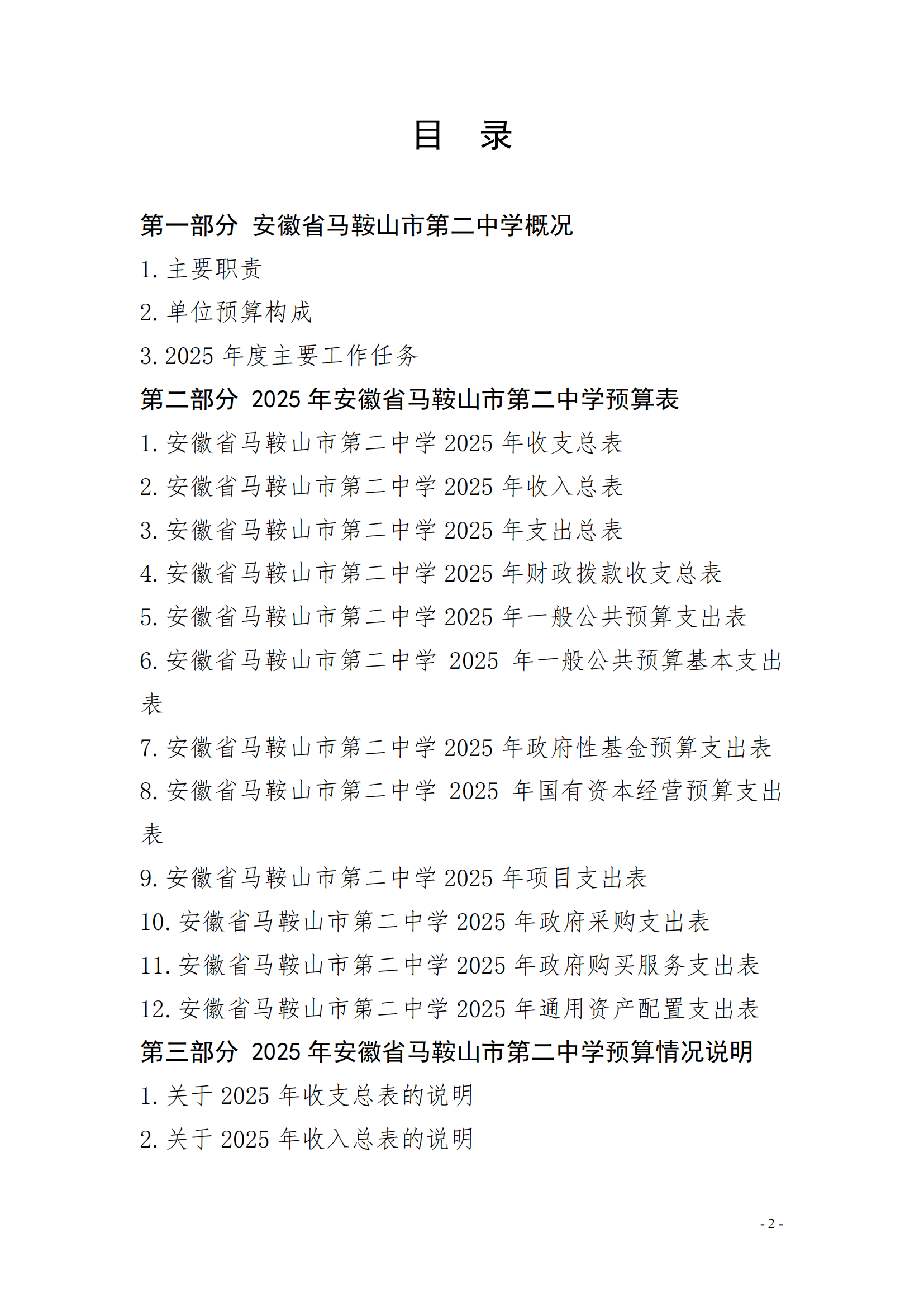 安徽省馬鞍山市第二中學2025年單位預算(suàn)