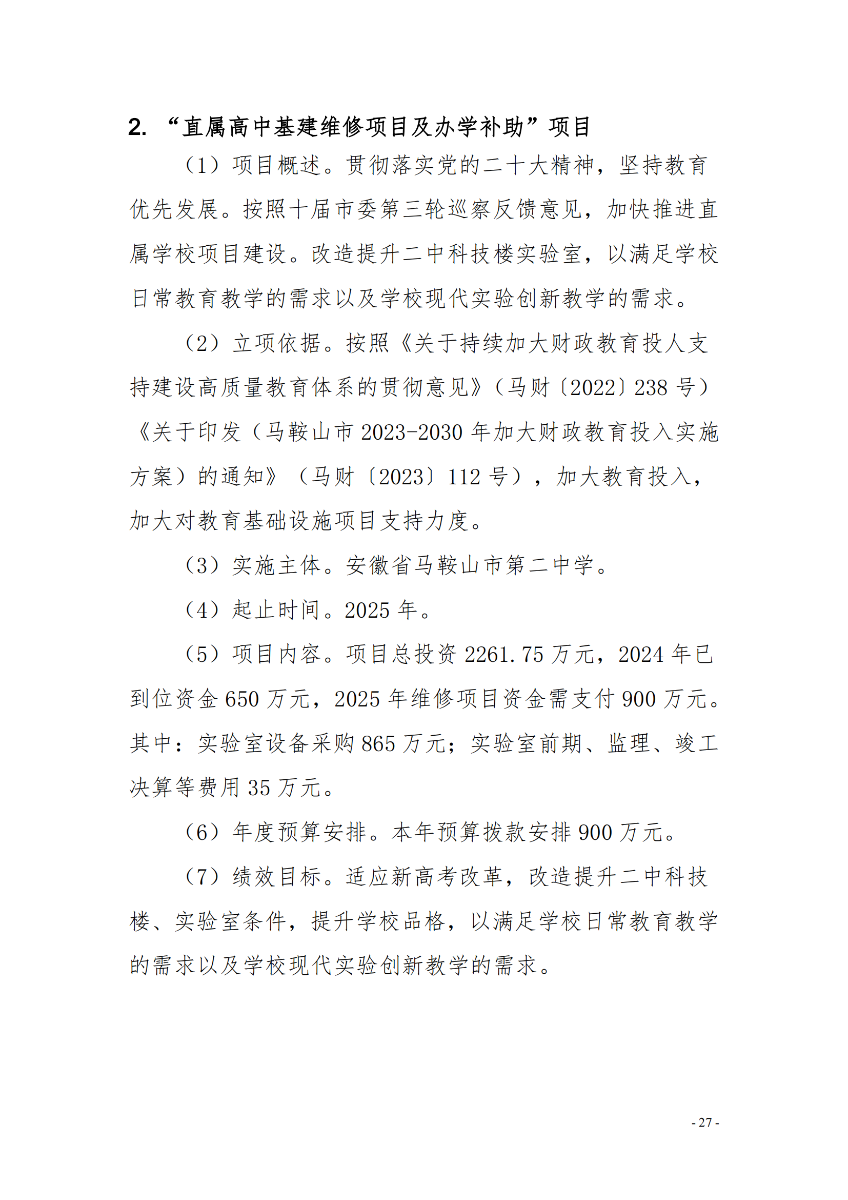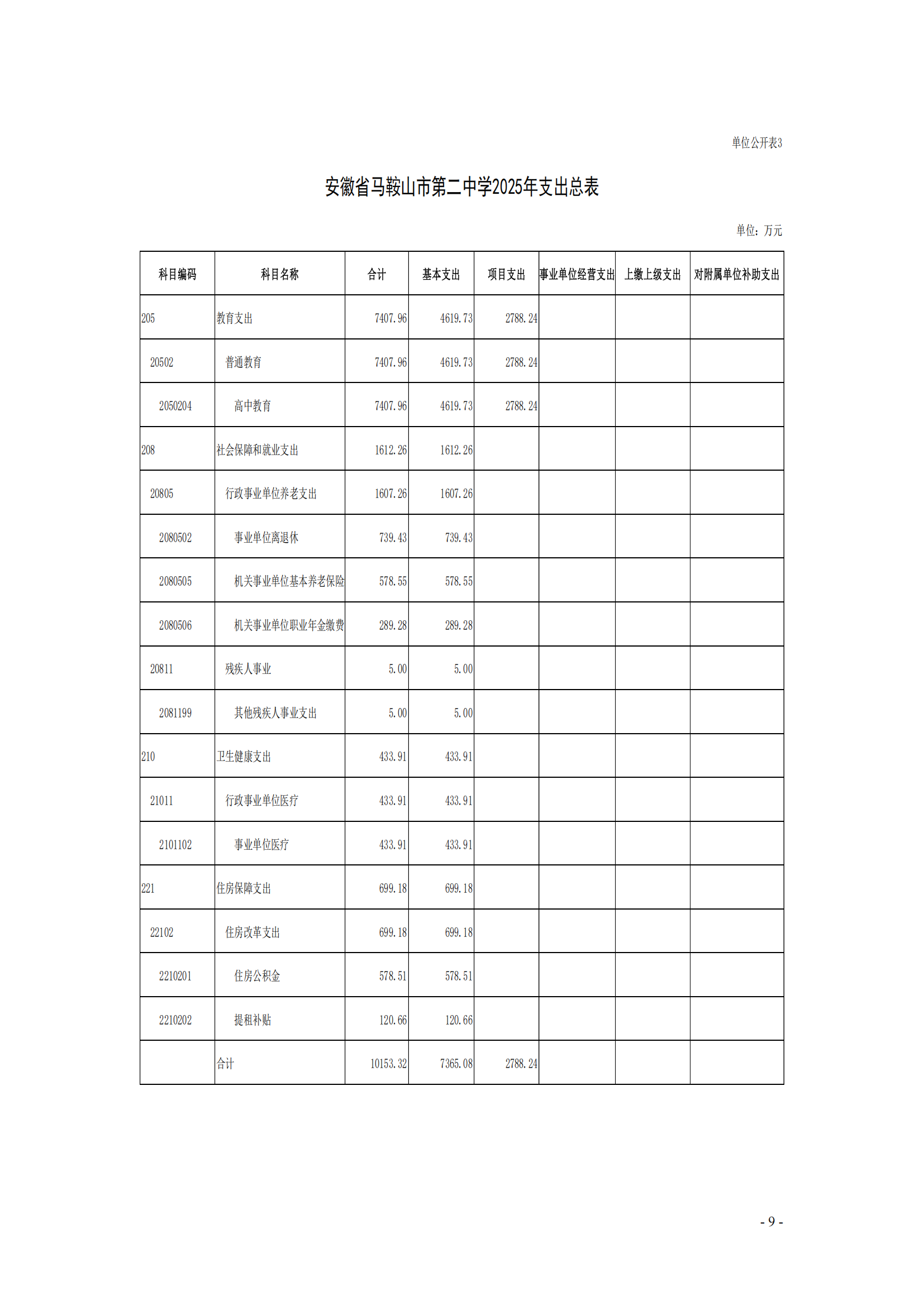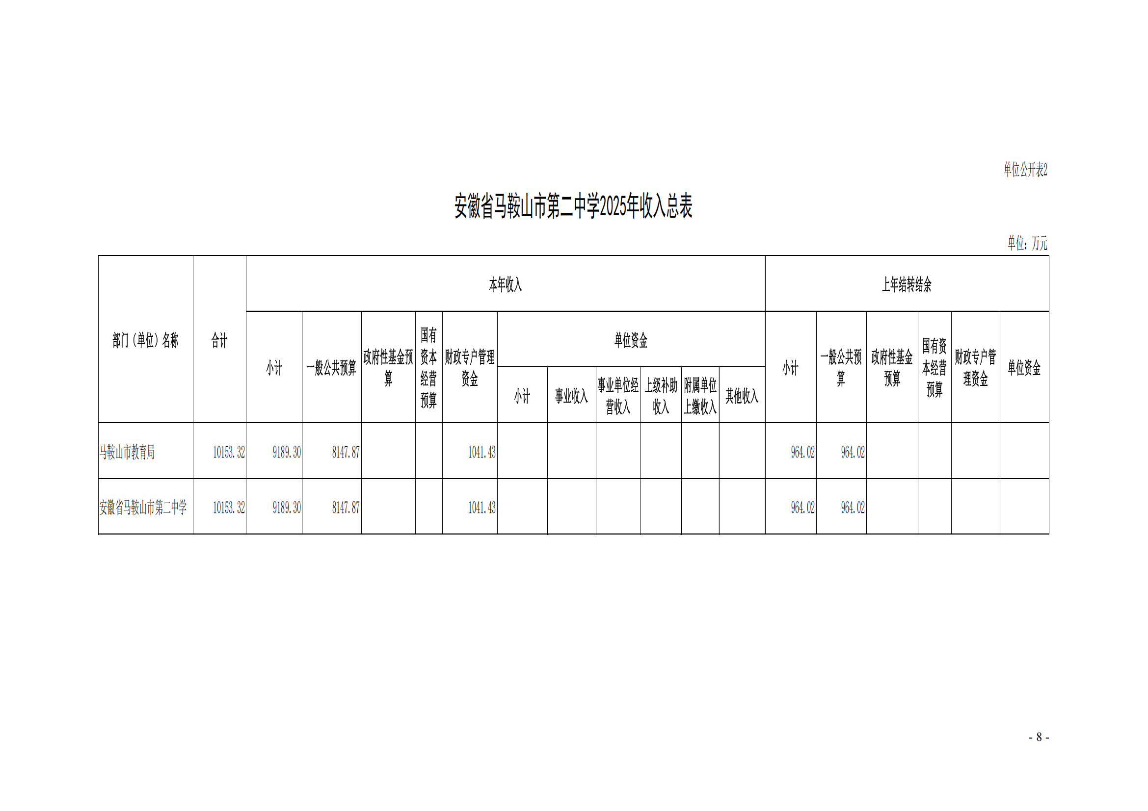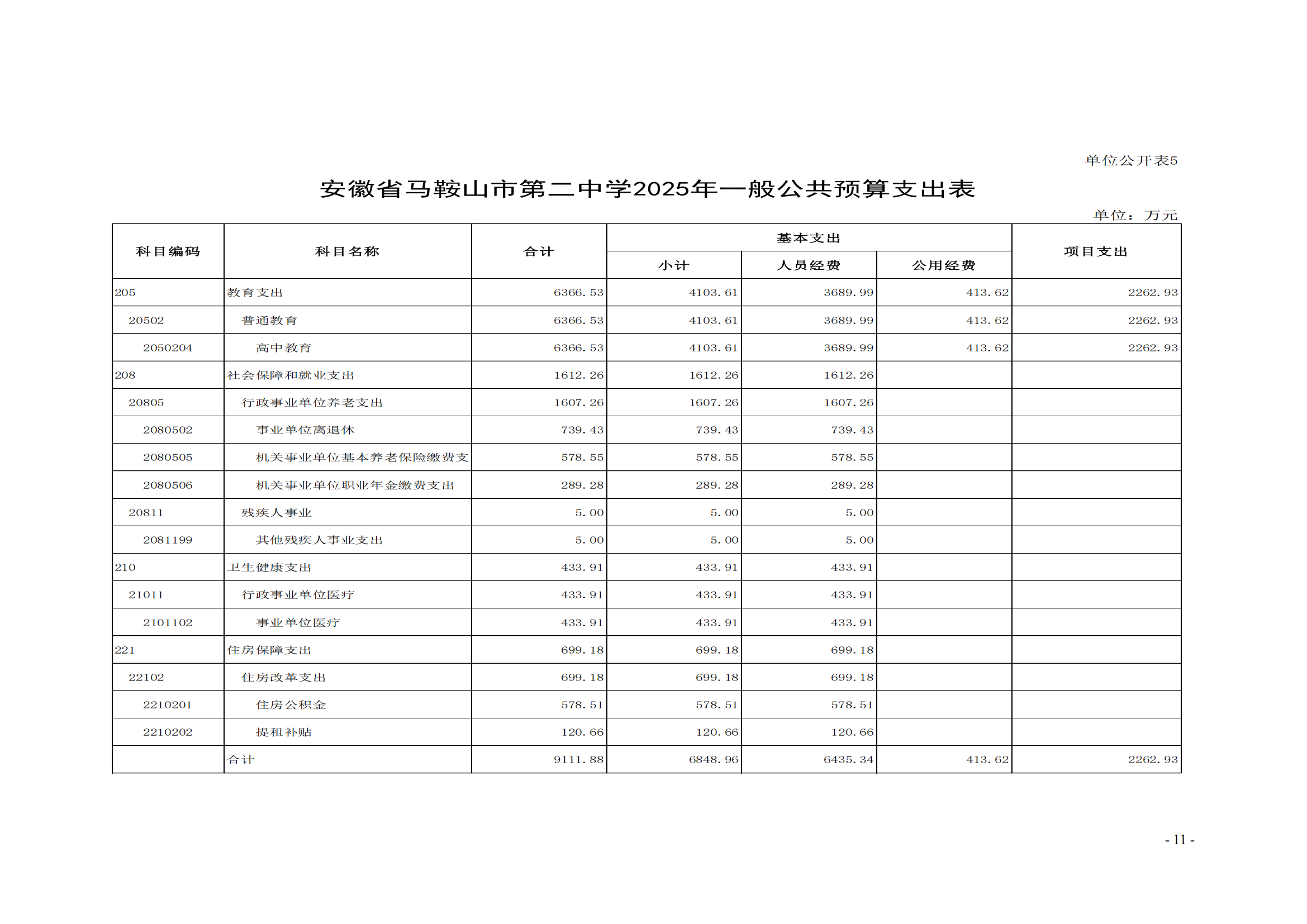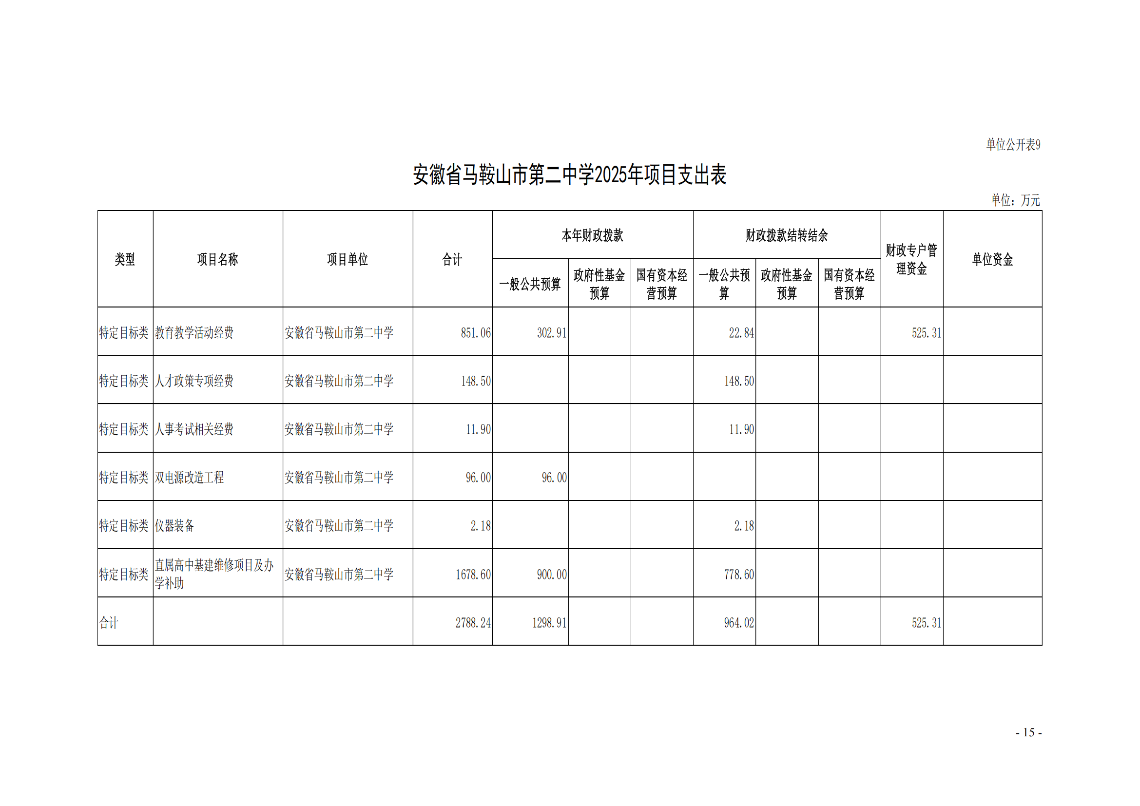 安徽省馬鞍(ān)山市第二中學2025年單位預算