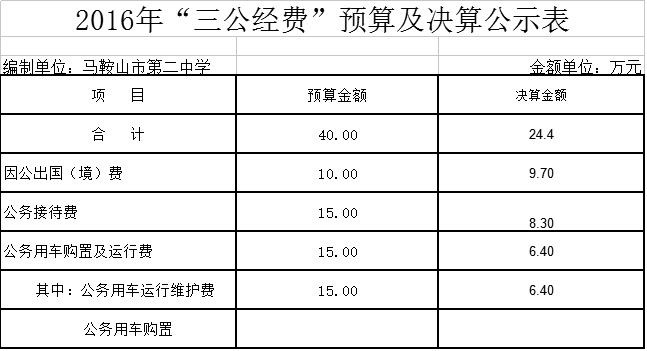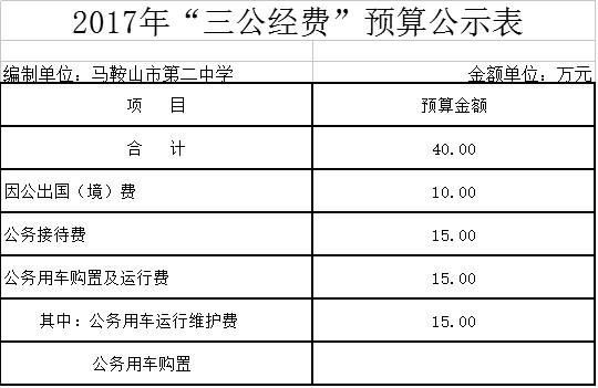 馬鞍山(shān)二中2016-2017三公經費公示表(biǎo)