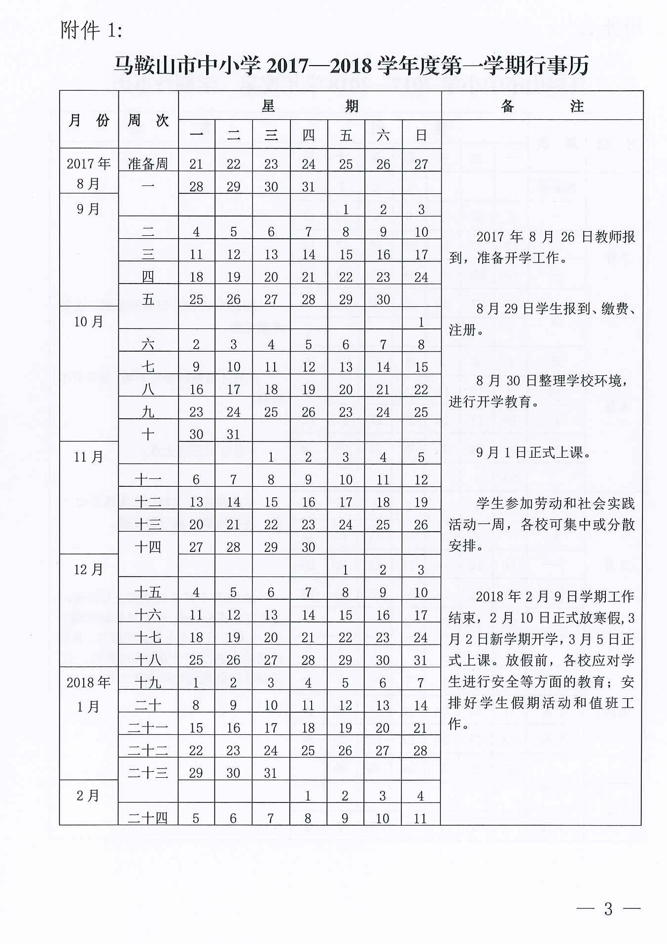 馬鞍山市中小(xiǎo)學2017-2018學年度第一、二學期行事曆