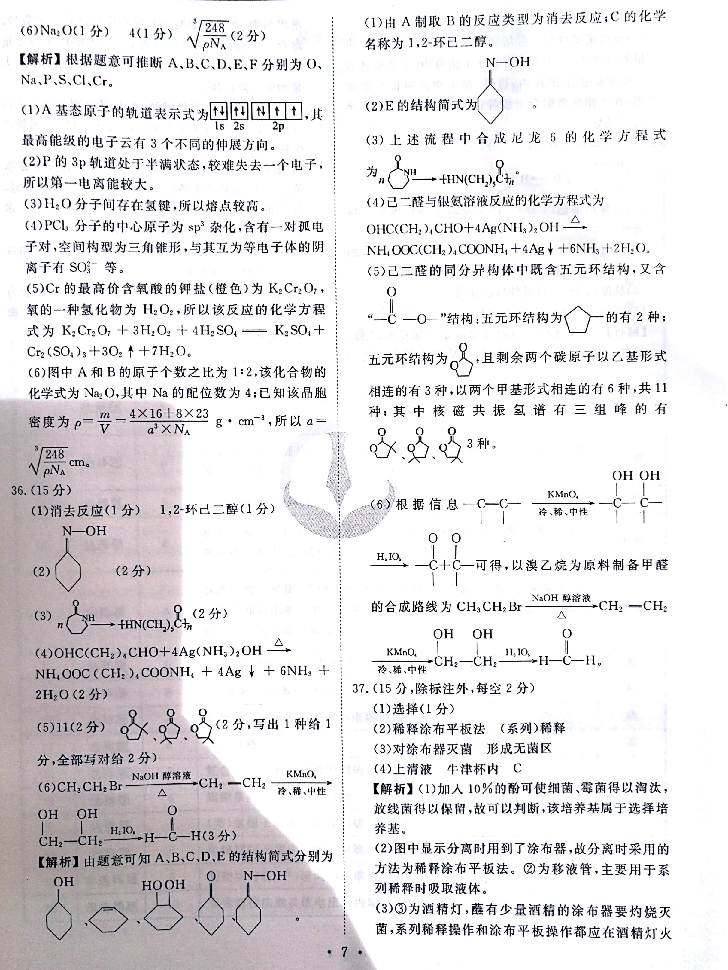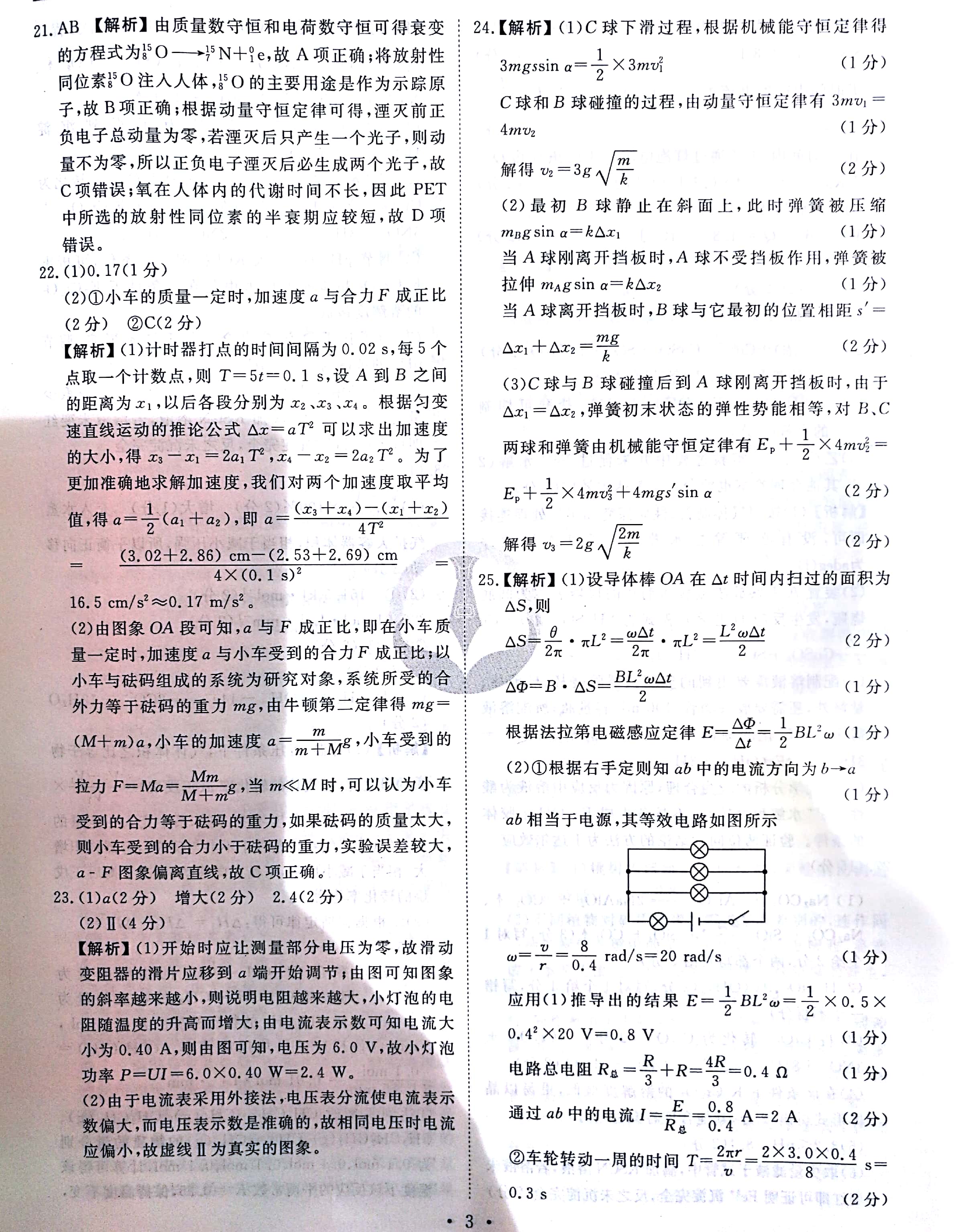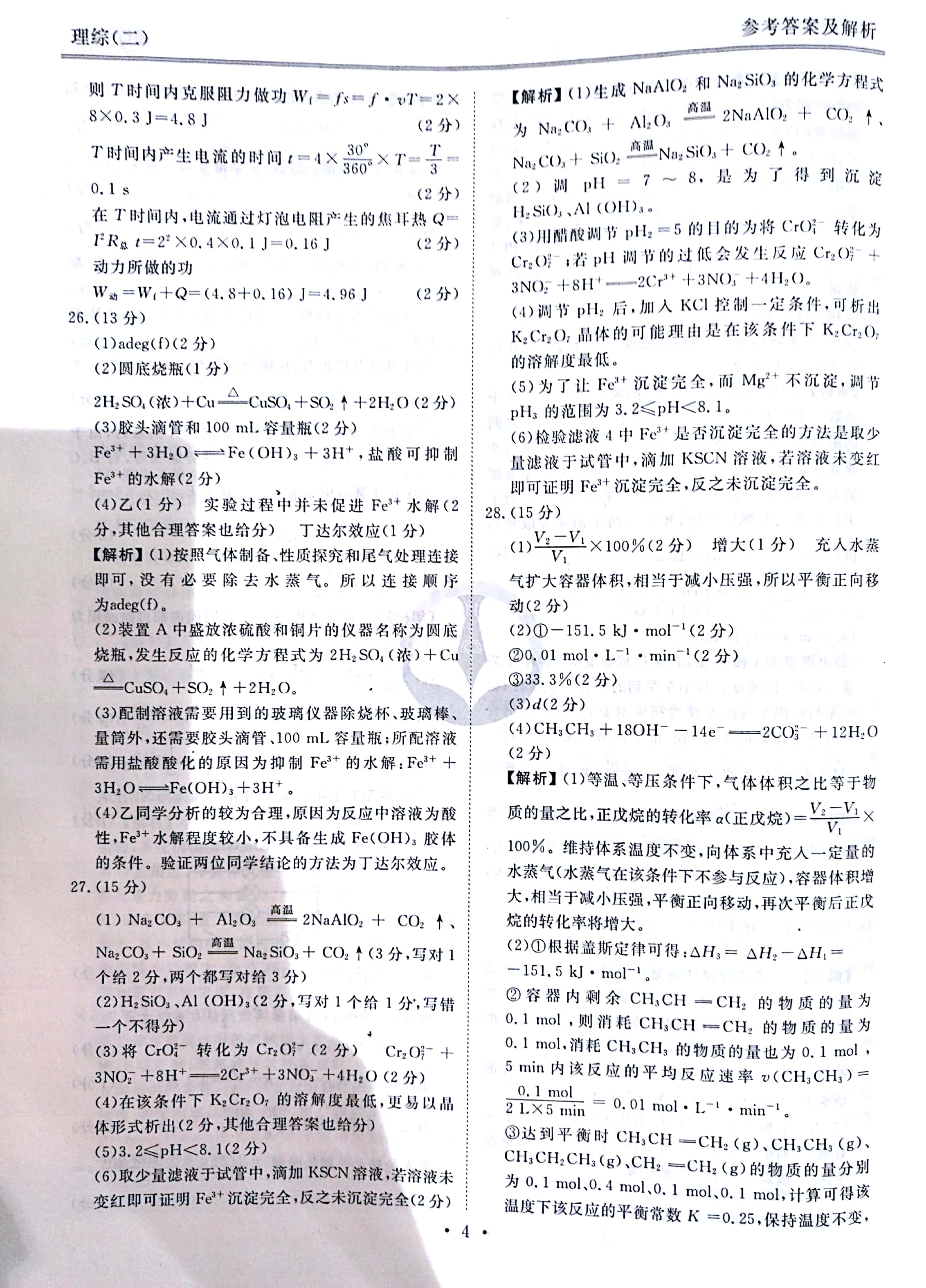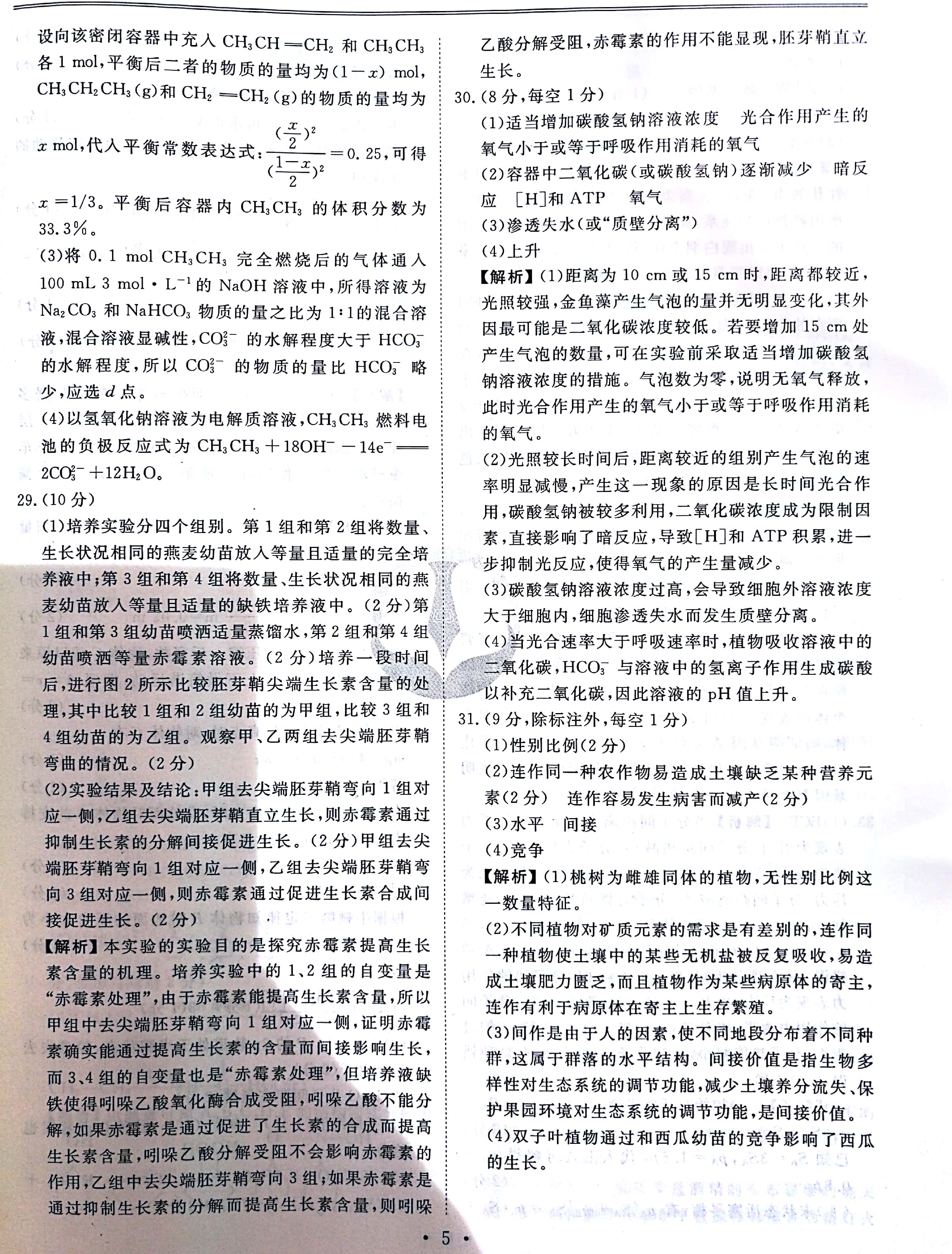 馬鞍山二中高三大練(liàn)習(xí)答案——理綜(二)