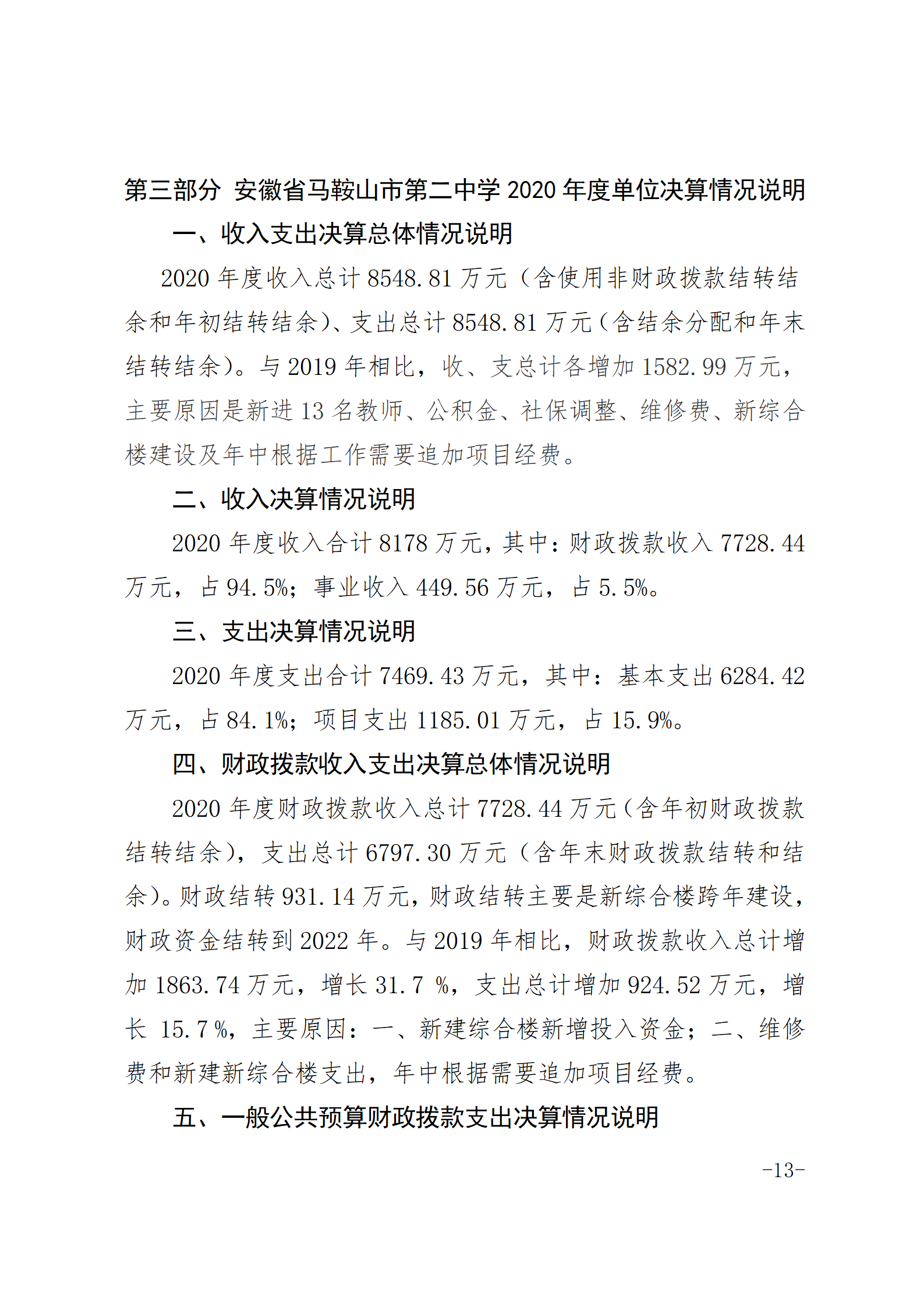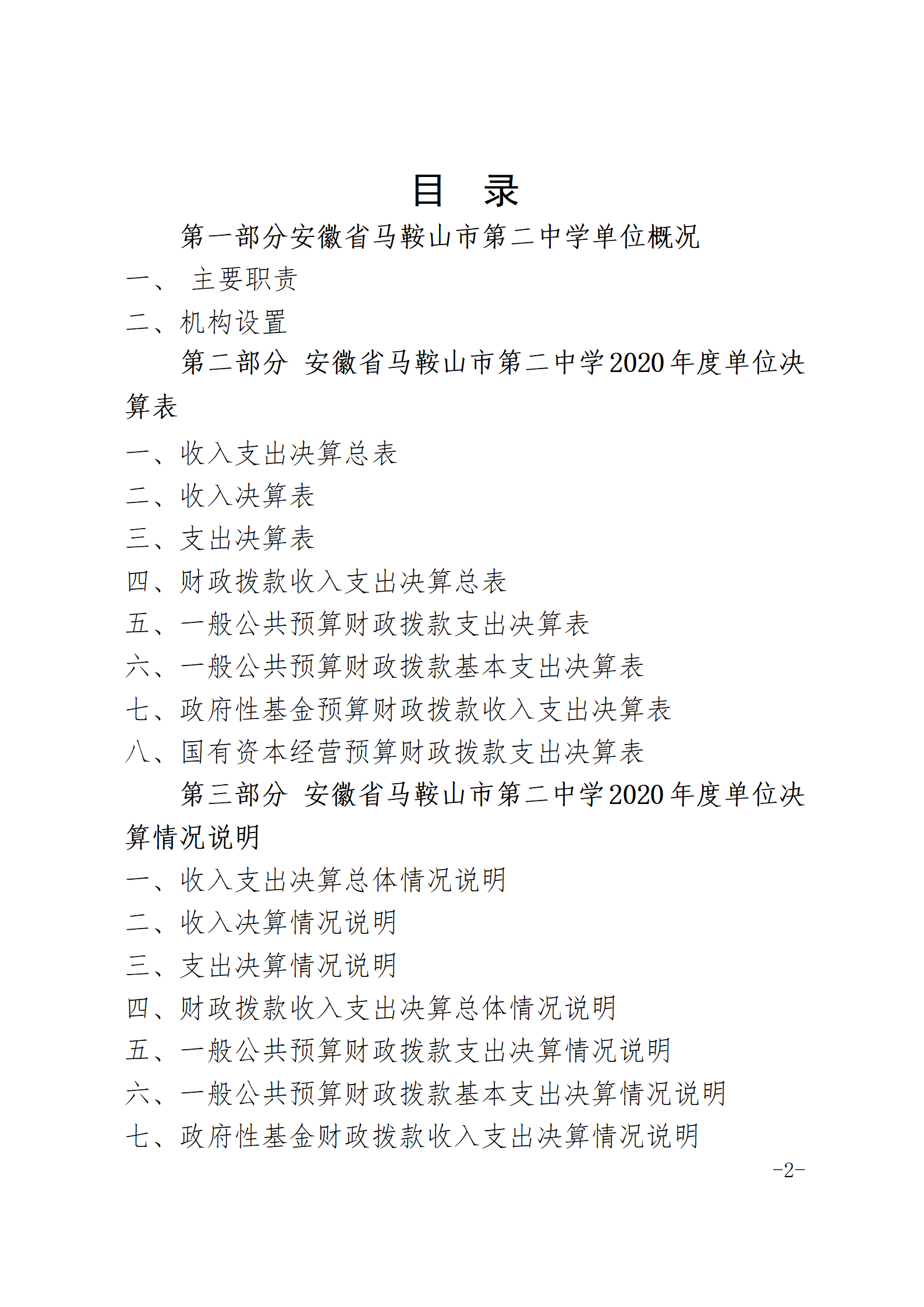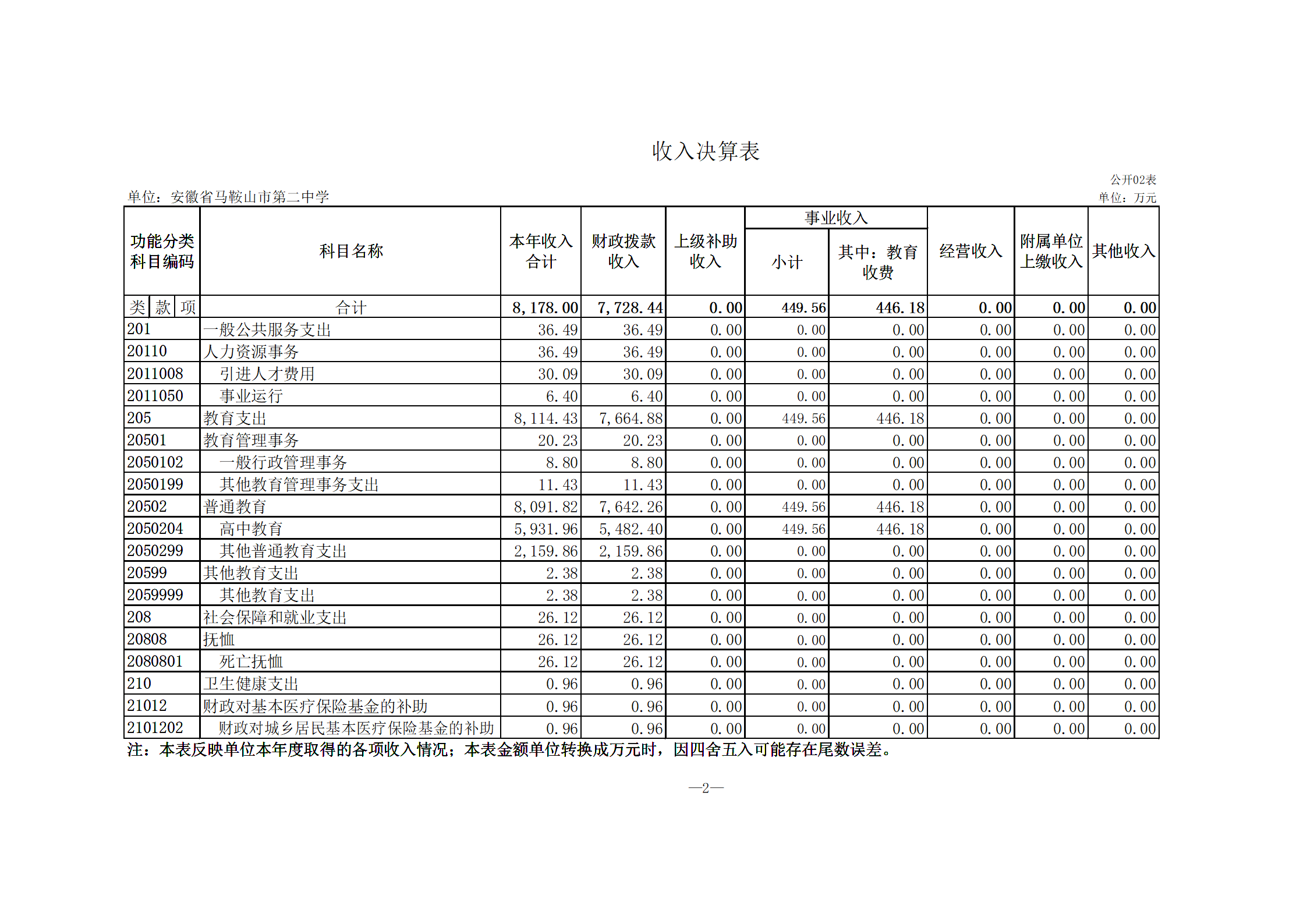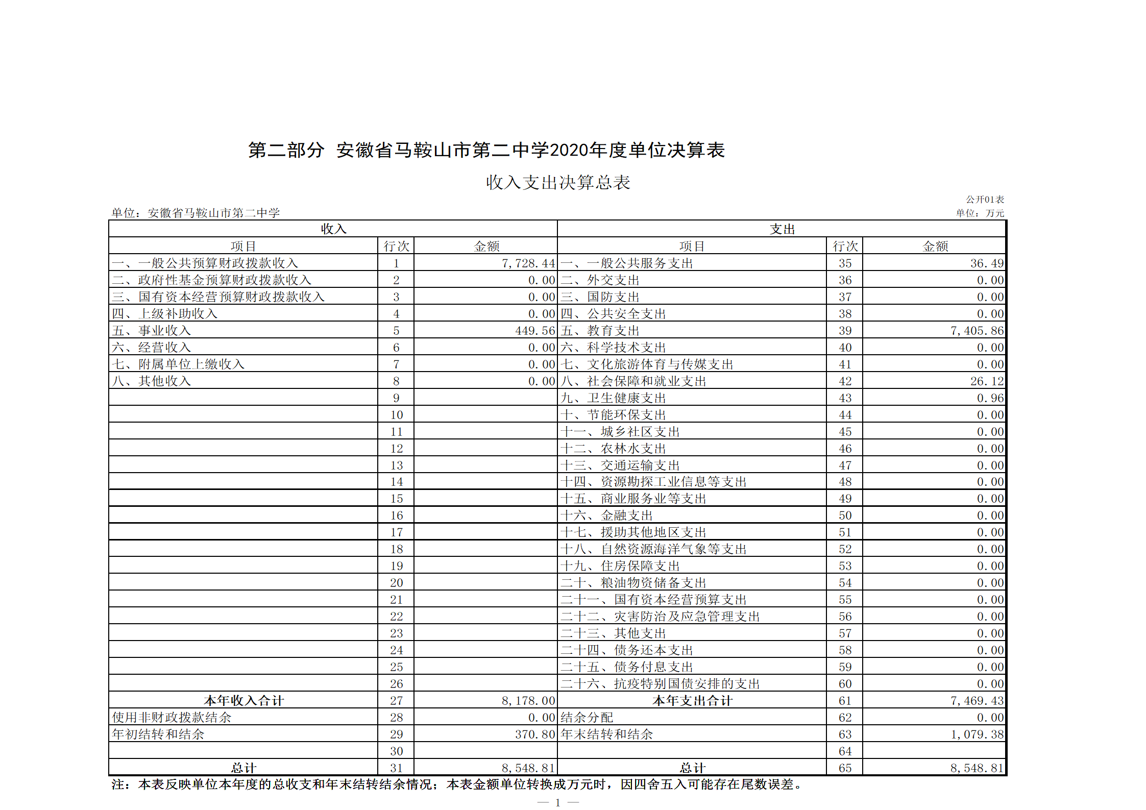 安徽省馬鞍山市第二中學(xué)2020年度單(dān)位決算