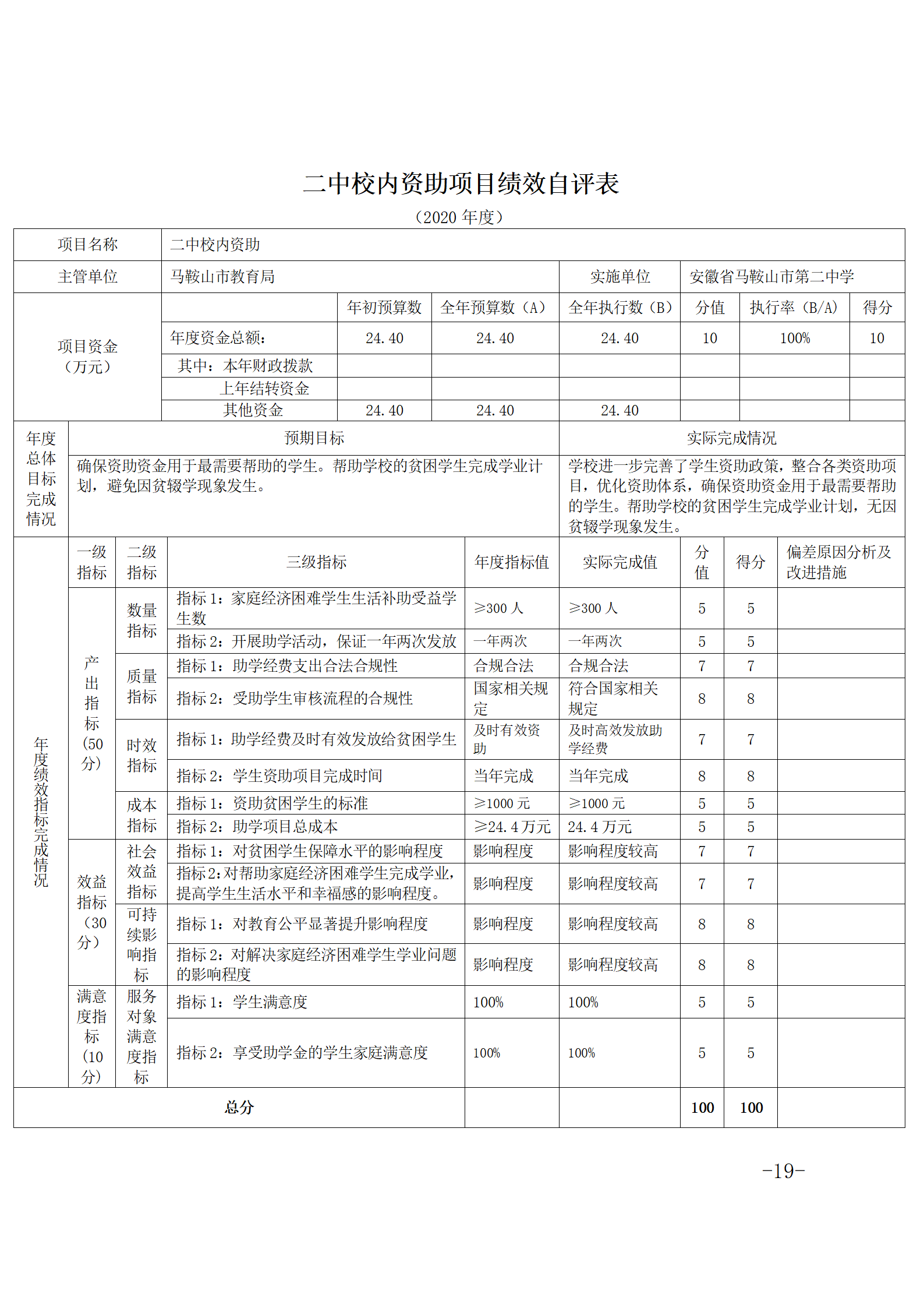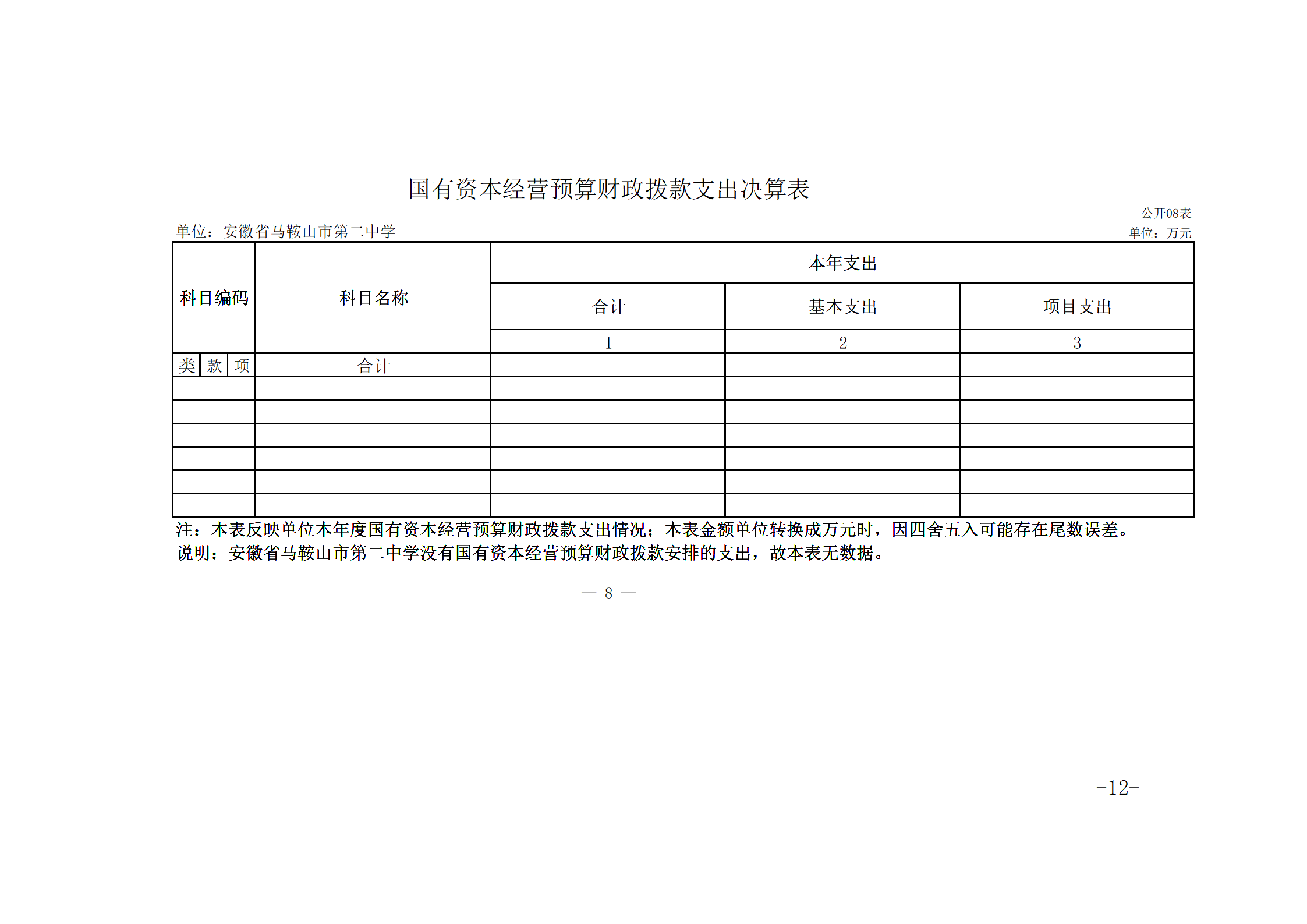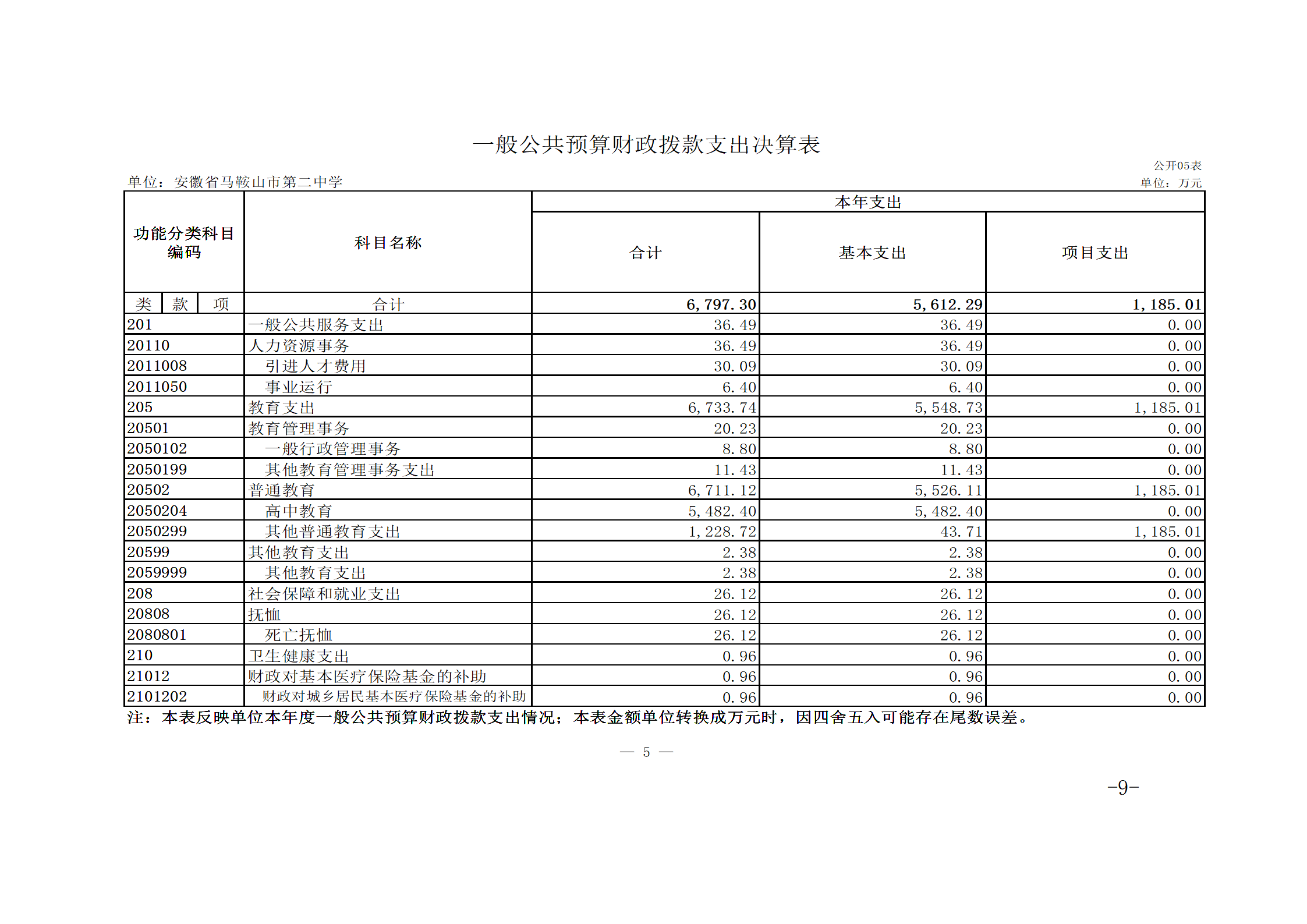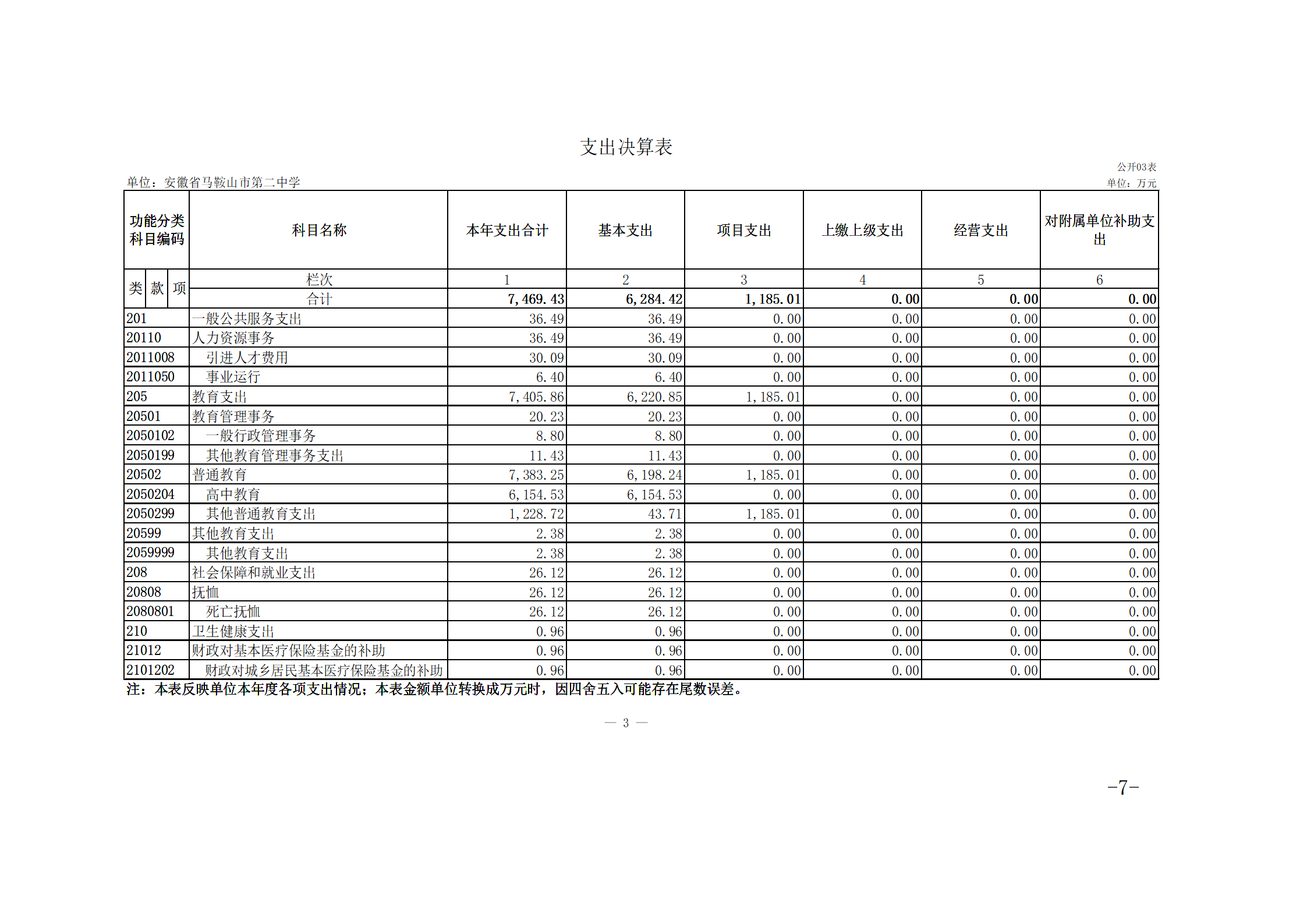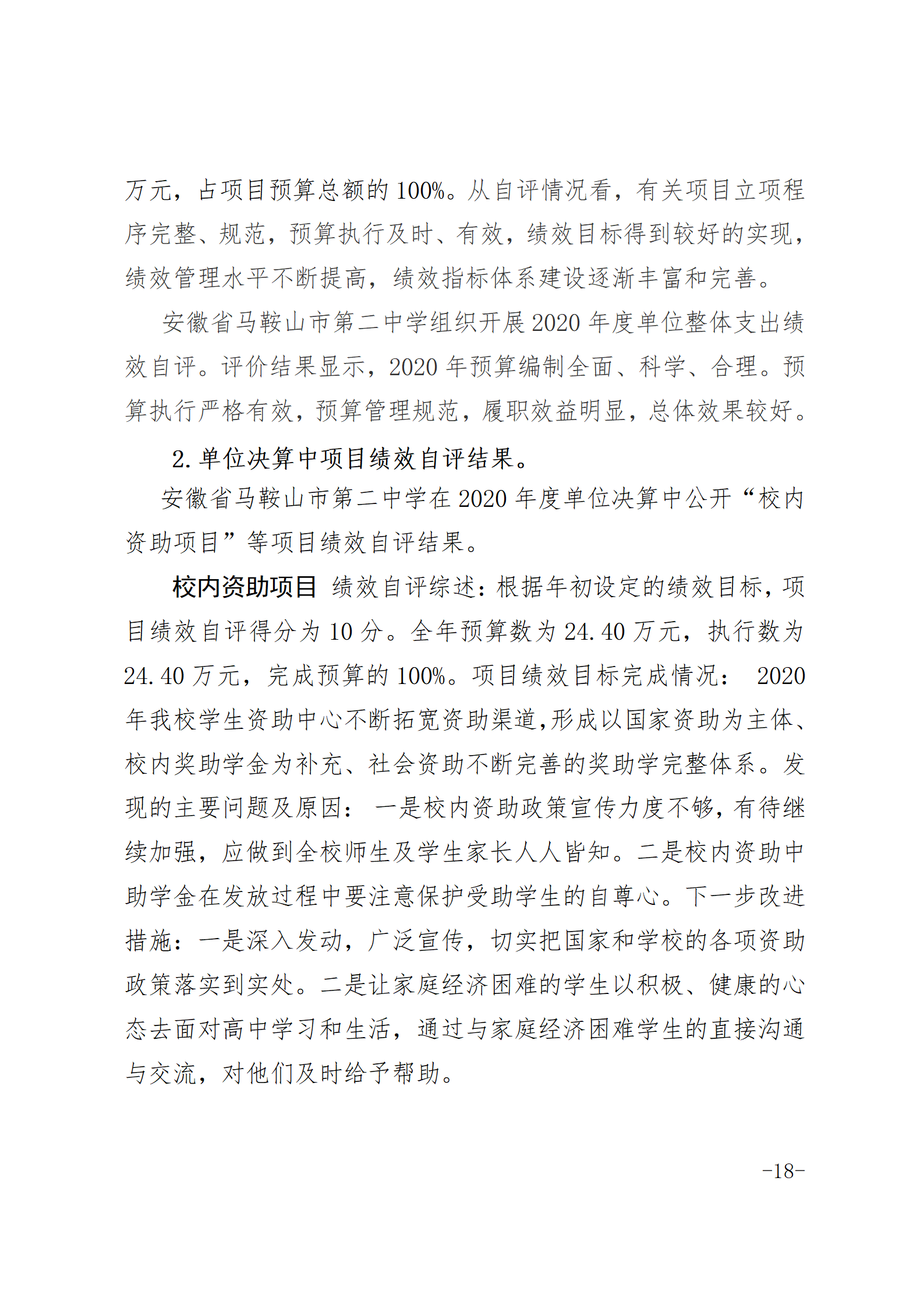 安徽省馬鞍山市第二中學(xué)2020年度單(dān)位決算