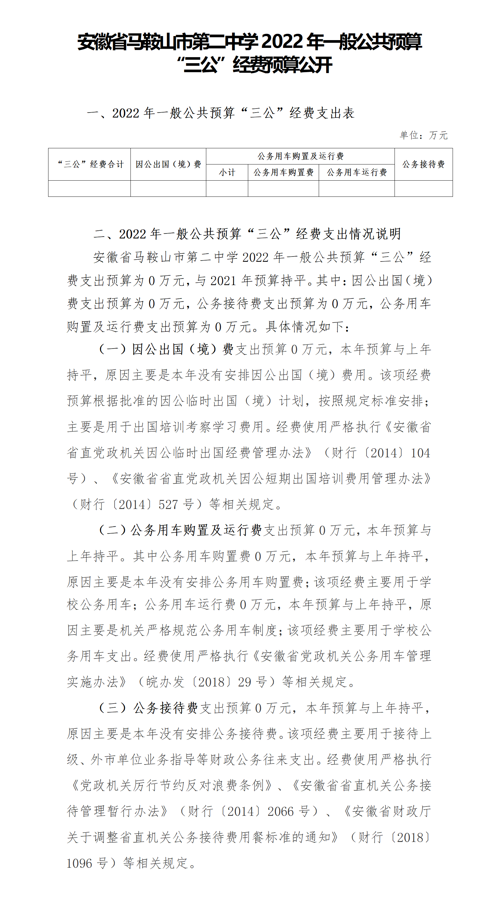 安徽省馬鞍山(shān)市第二(èr)中學2022年一般公共預算“三(sān)公”經費預算