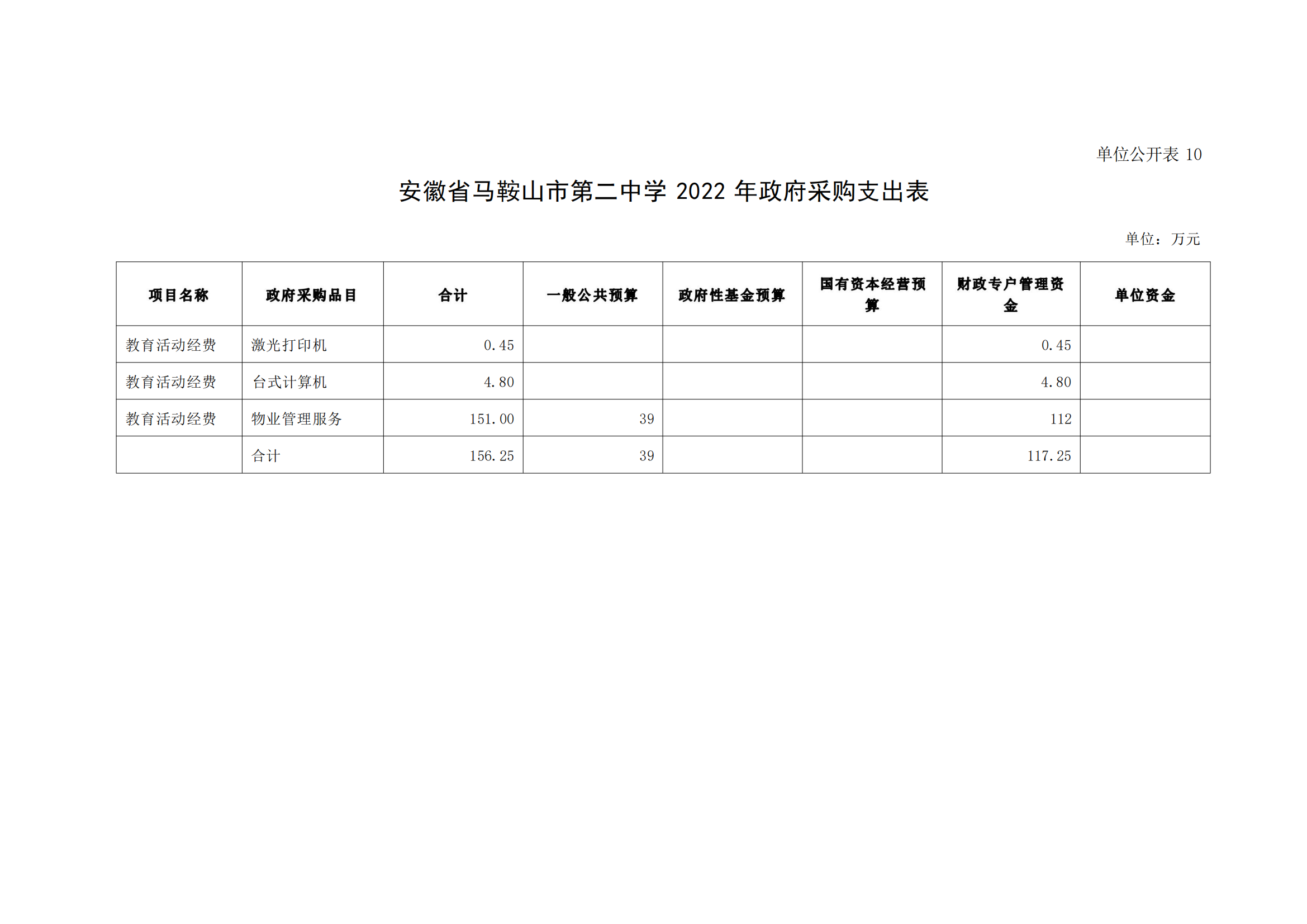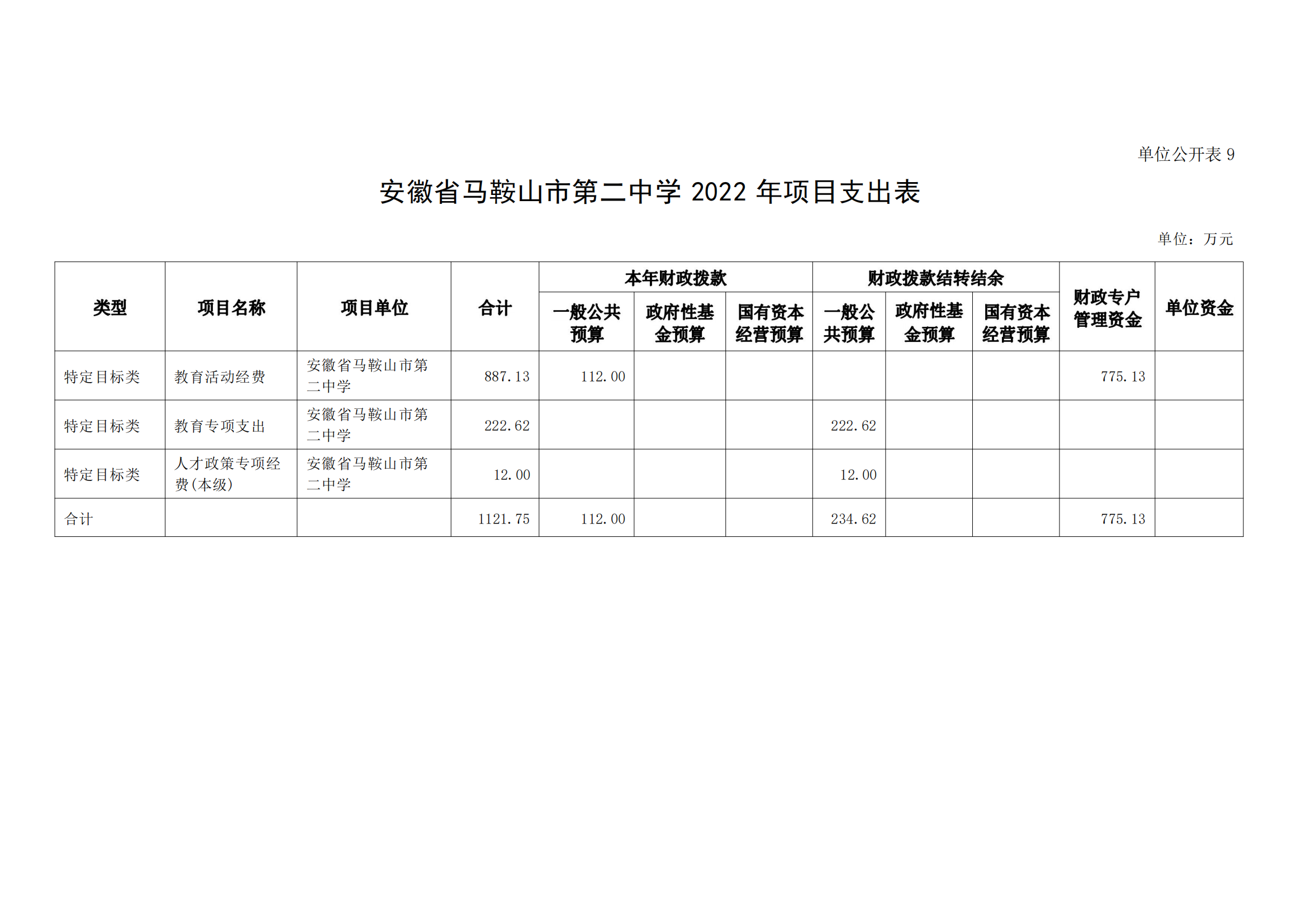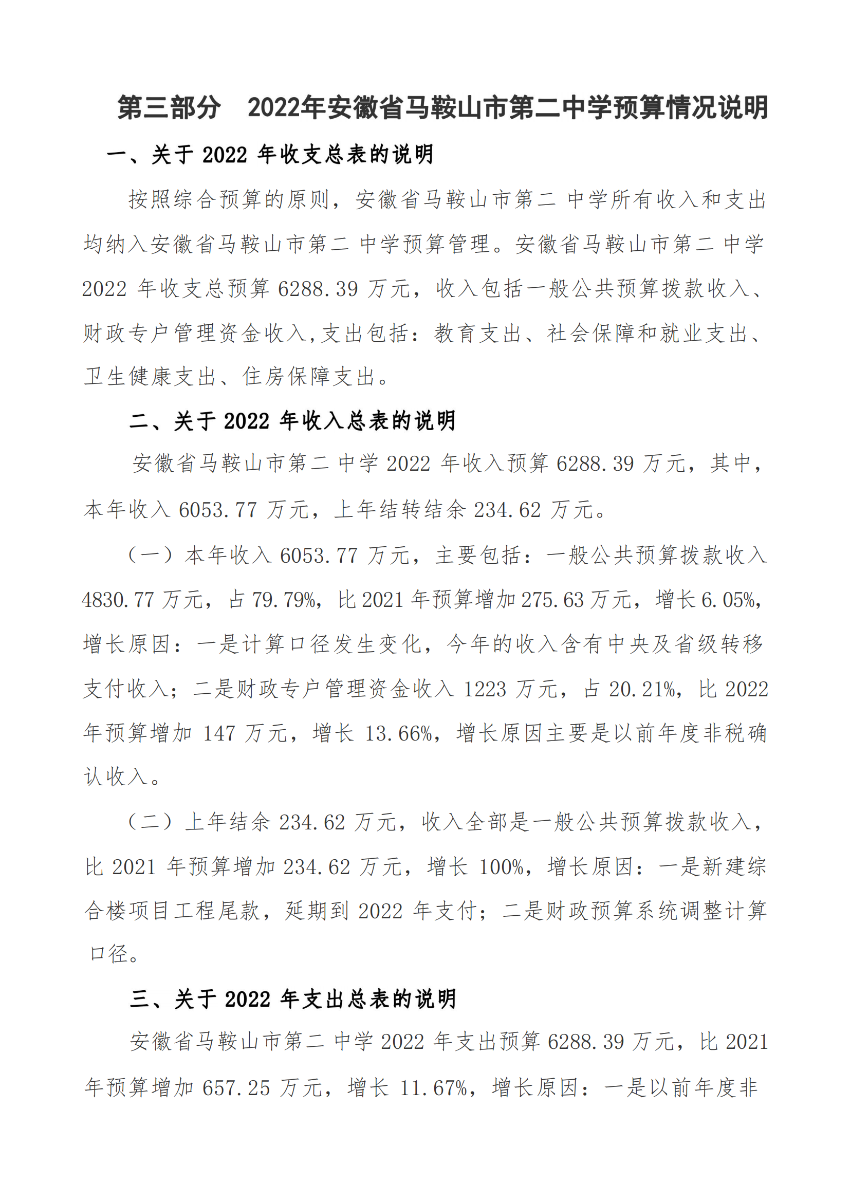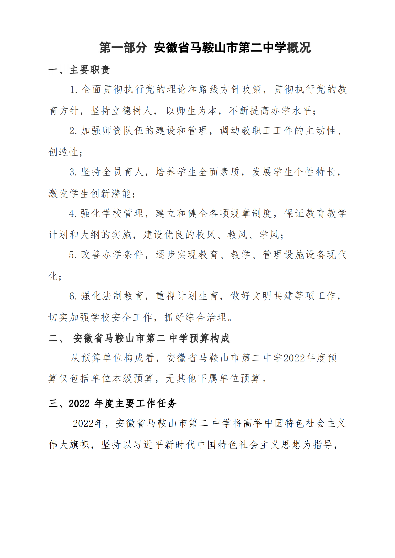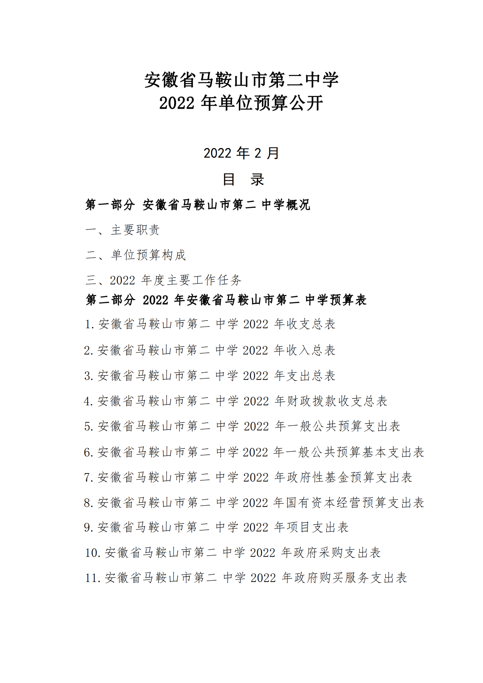 安(ān)徽(huī)省馬鞍山市第二中學2022年單位預算