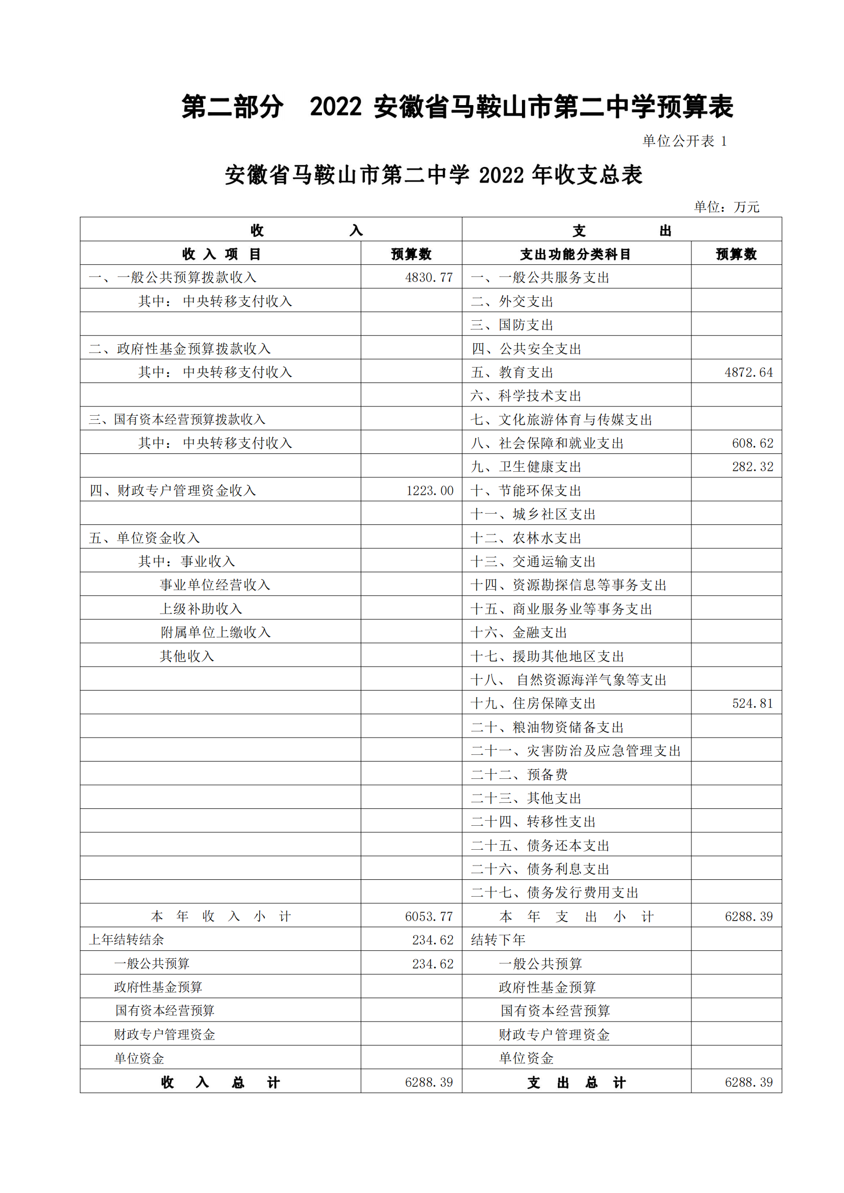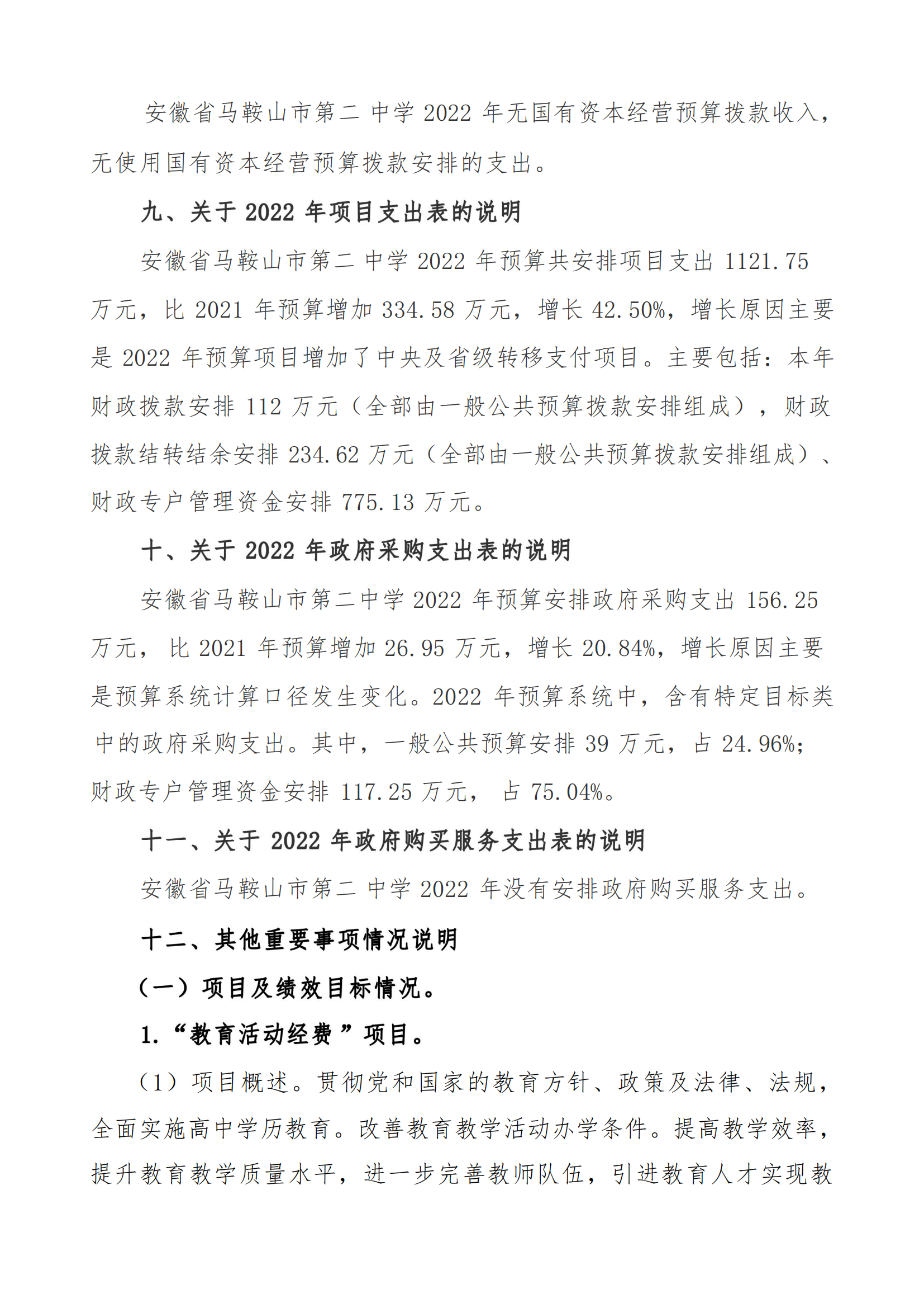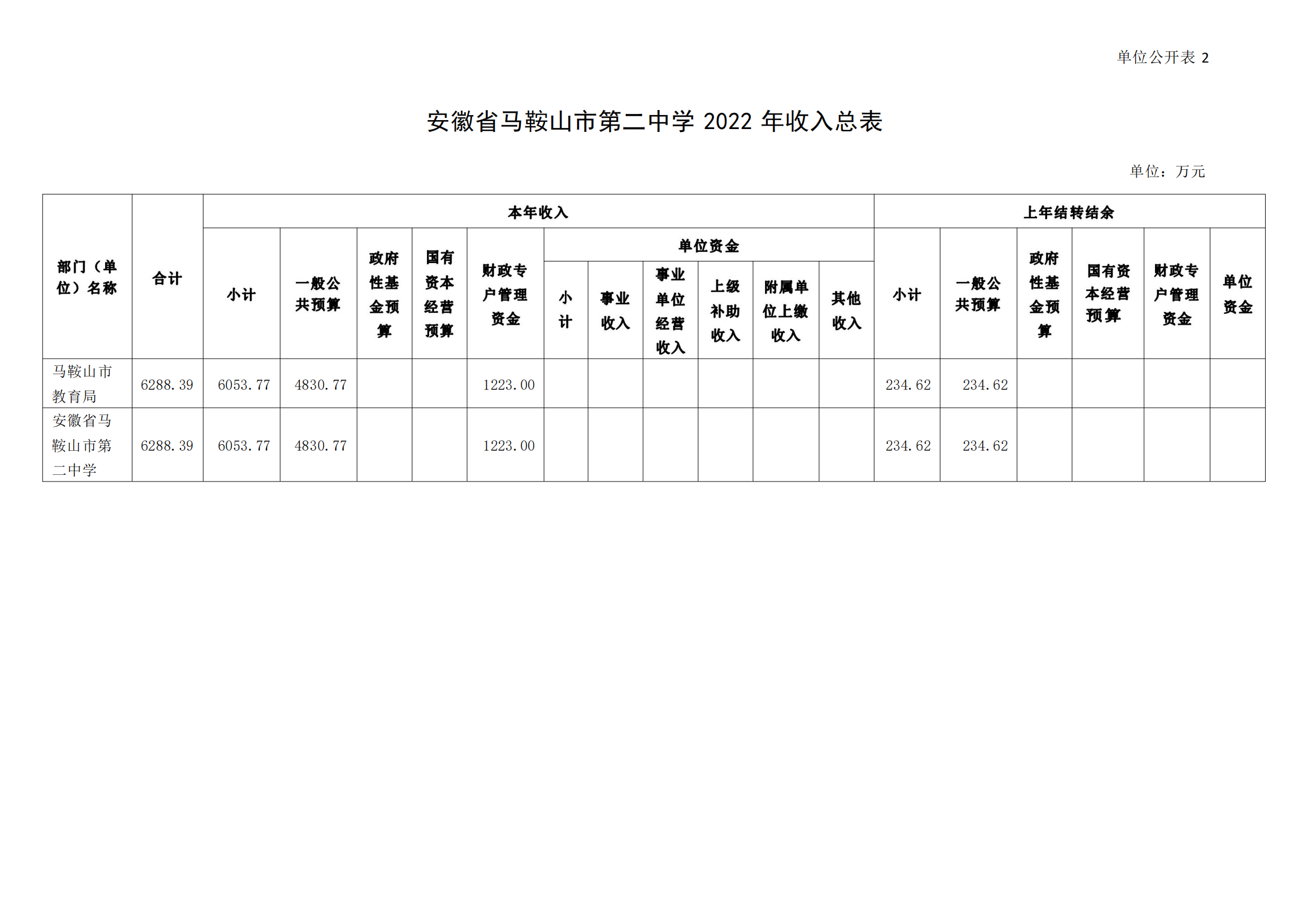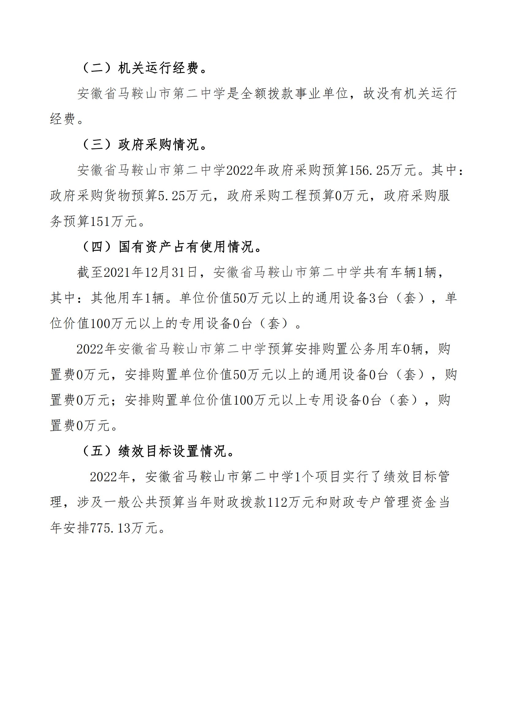 安徽省馬鞍山市第二中學2022年單位預算
