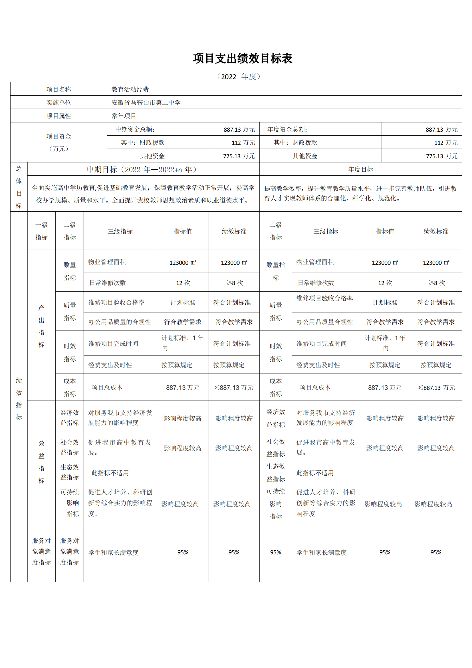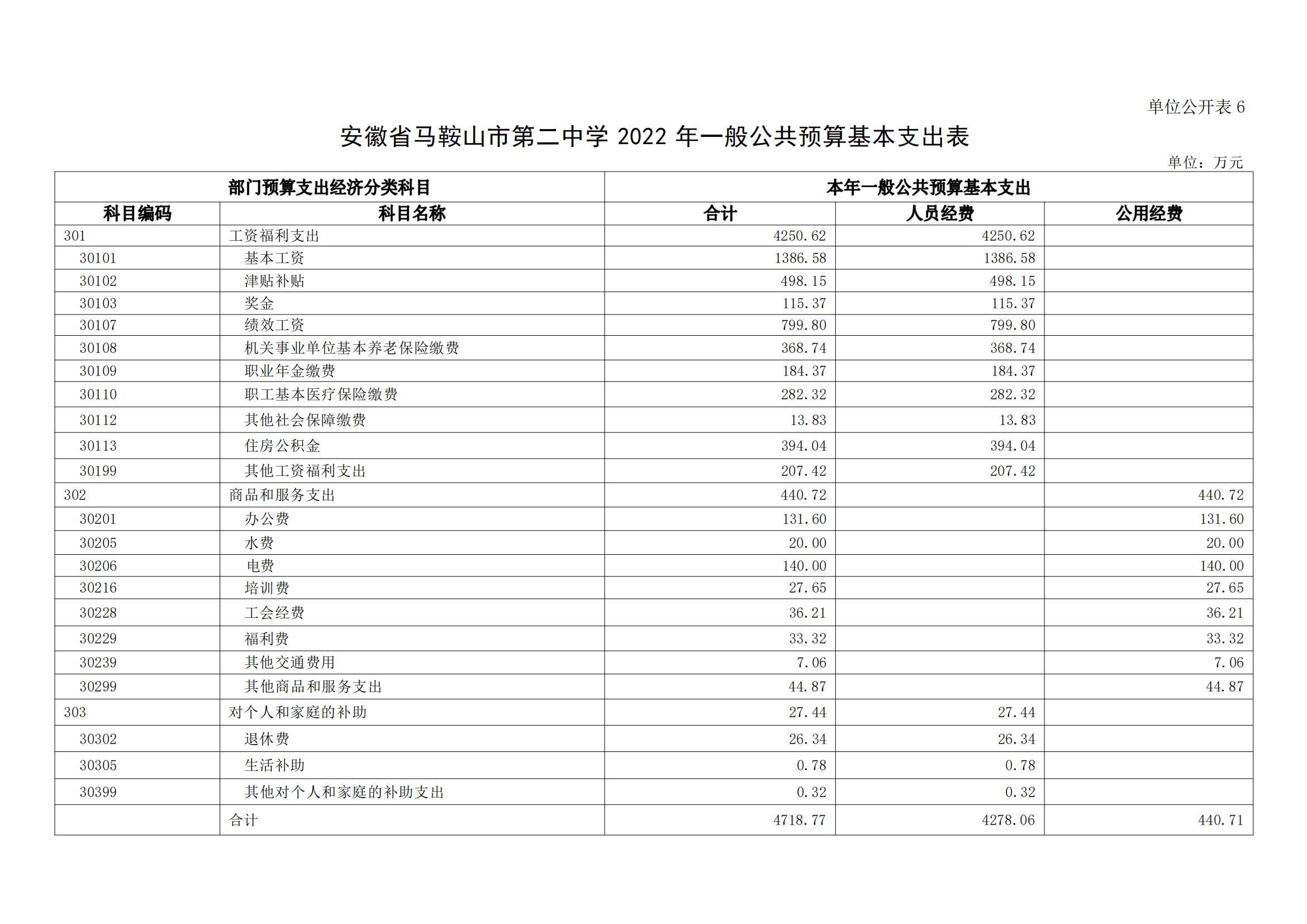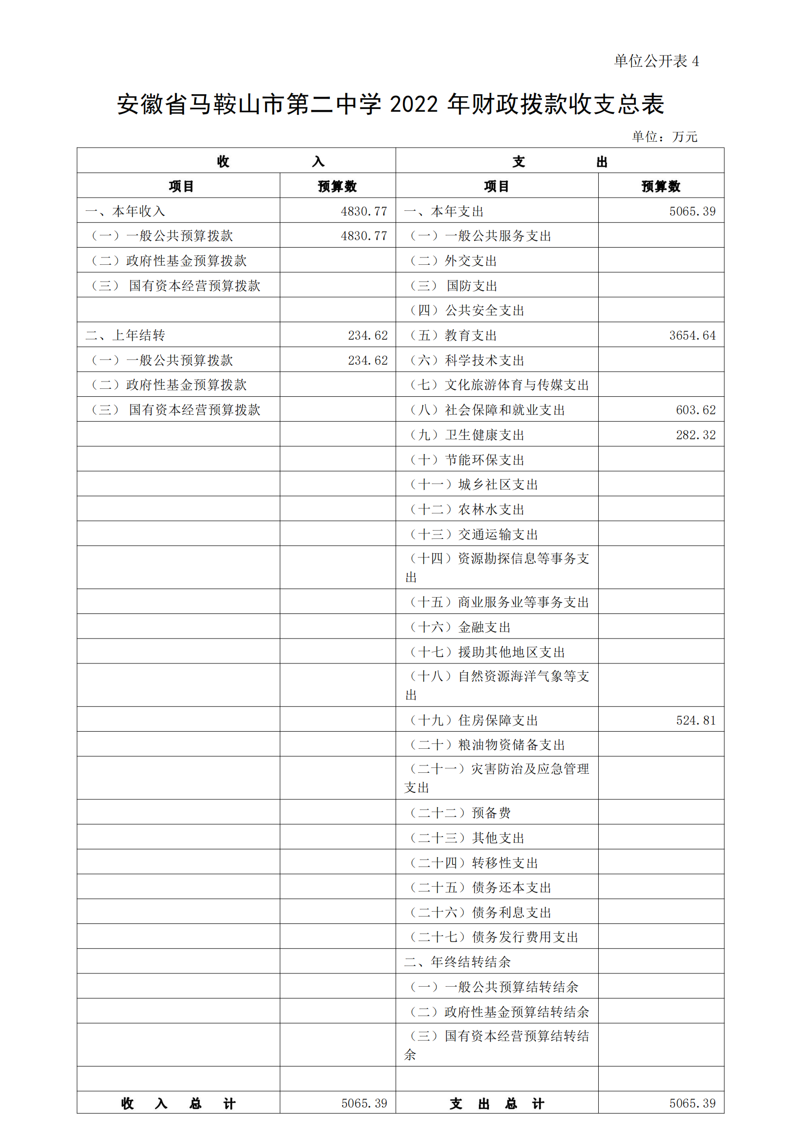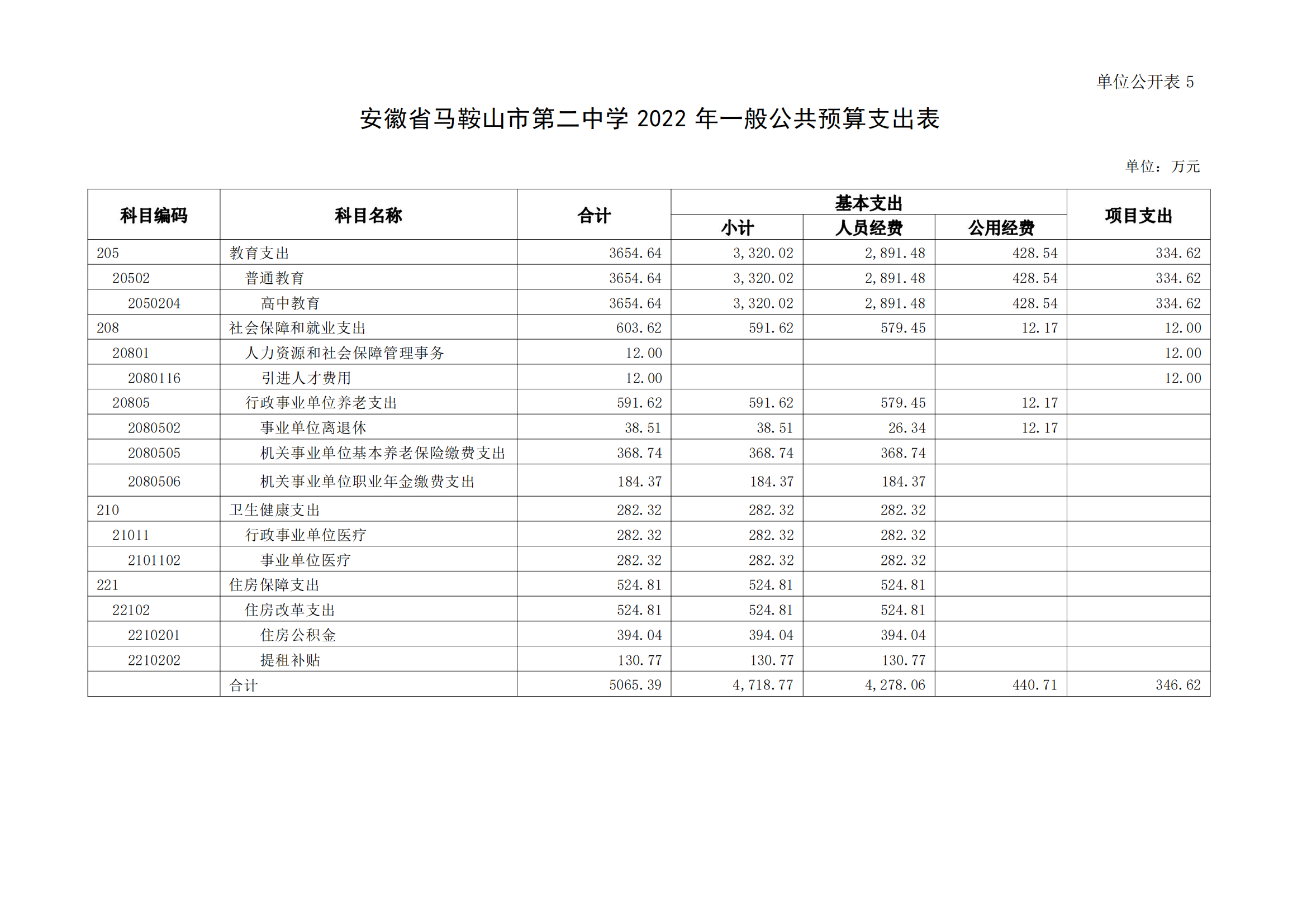 安徽省馬鞍山市第二中學2022年單位預算