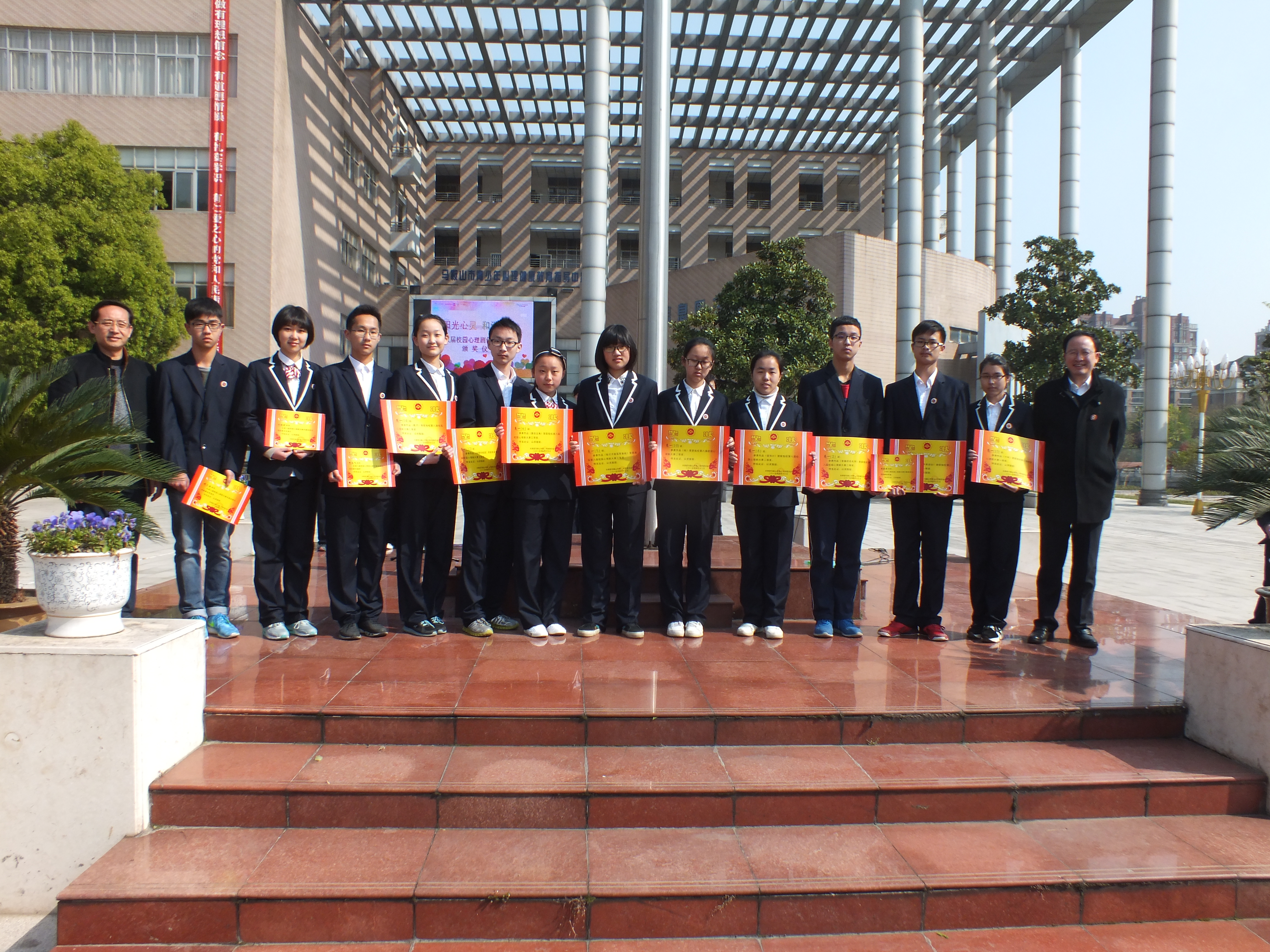 旗手:本次第八屆校園(yuán)心理劇大賽(sài)中,編寫並導演心理劇《十年(nián)》獲得一等獎,來自高一(yī)(15)班的賀逸飛同學。
