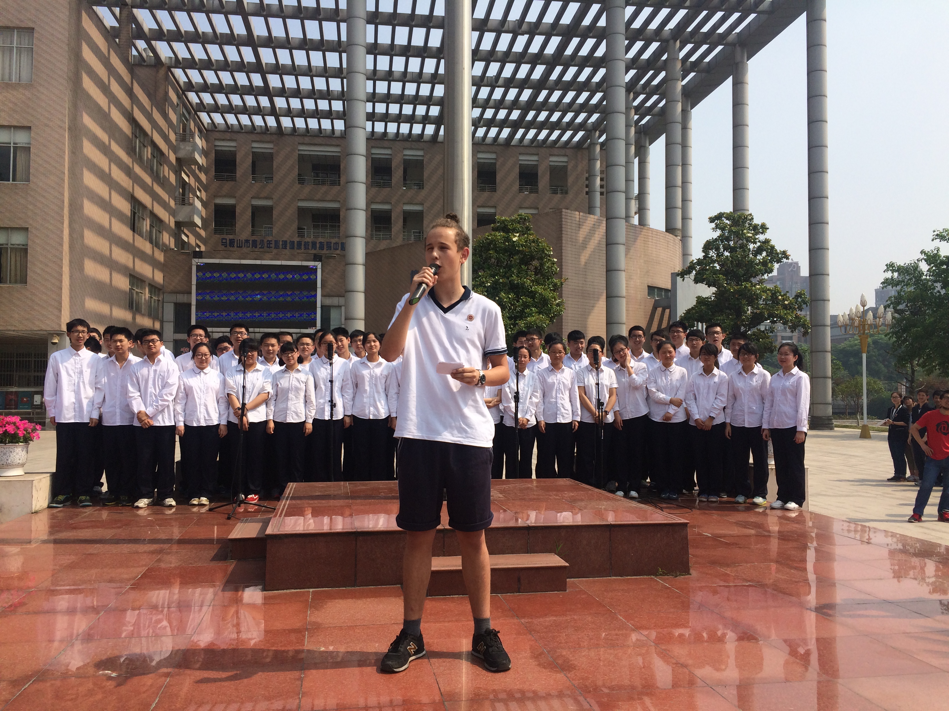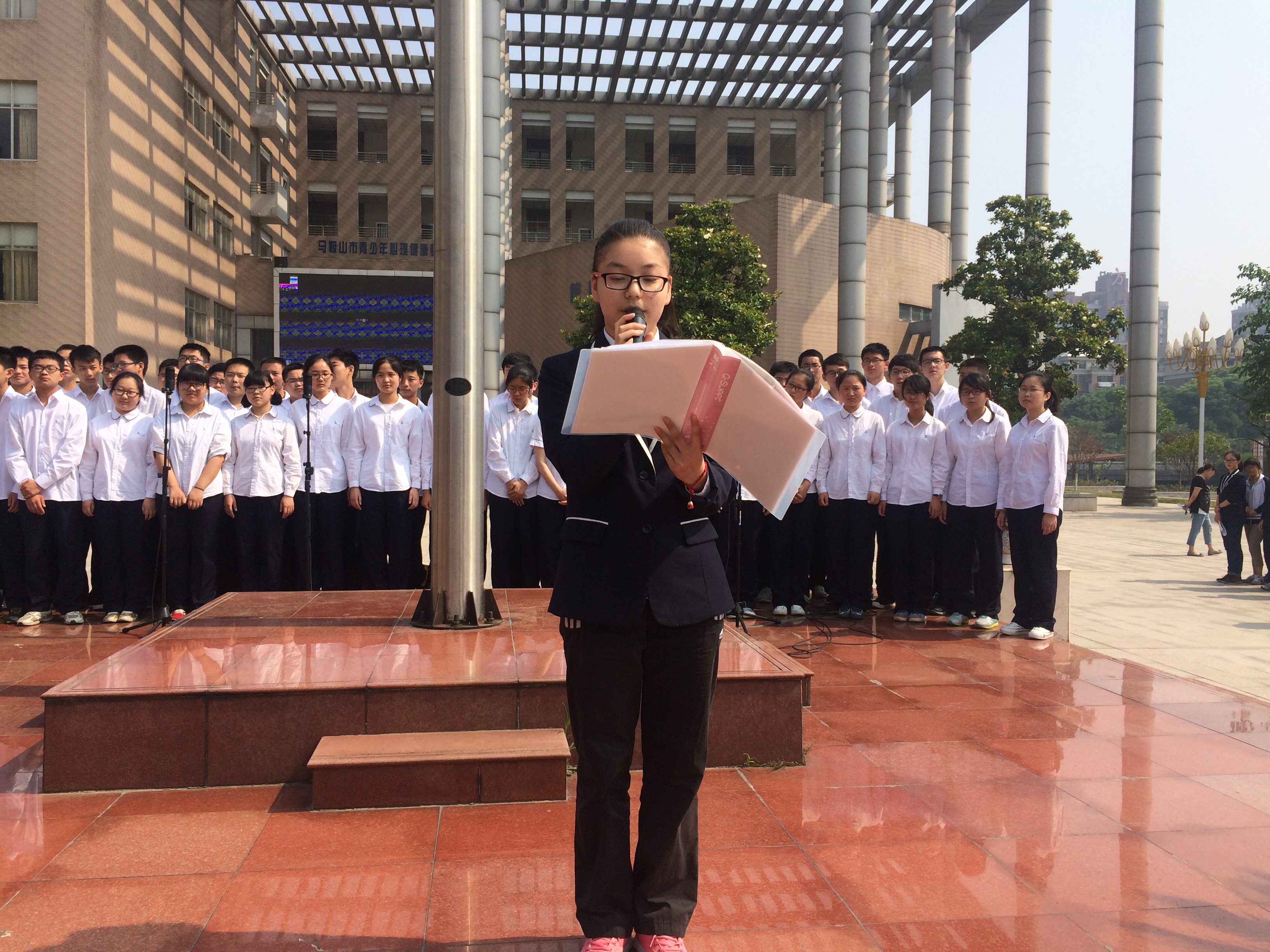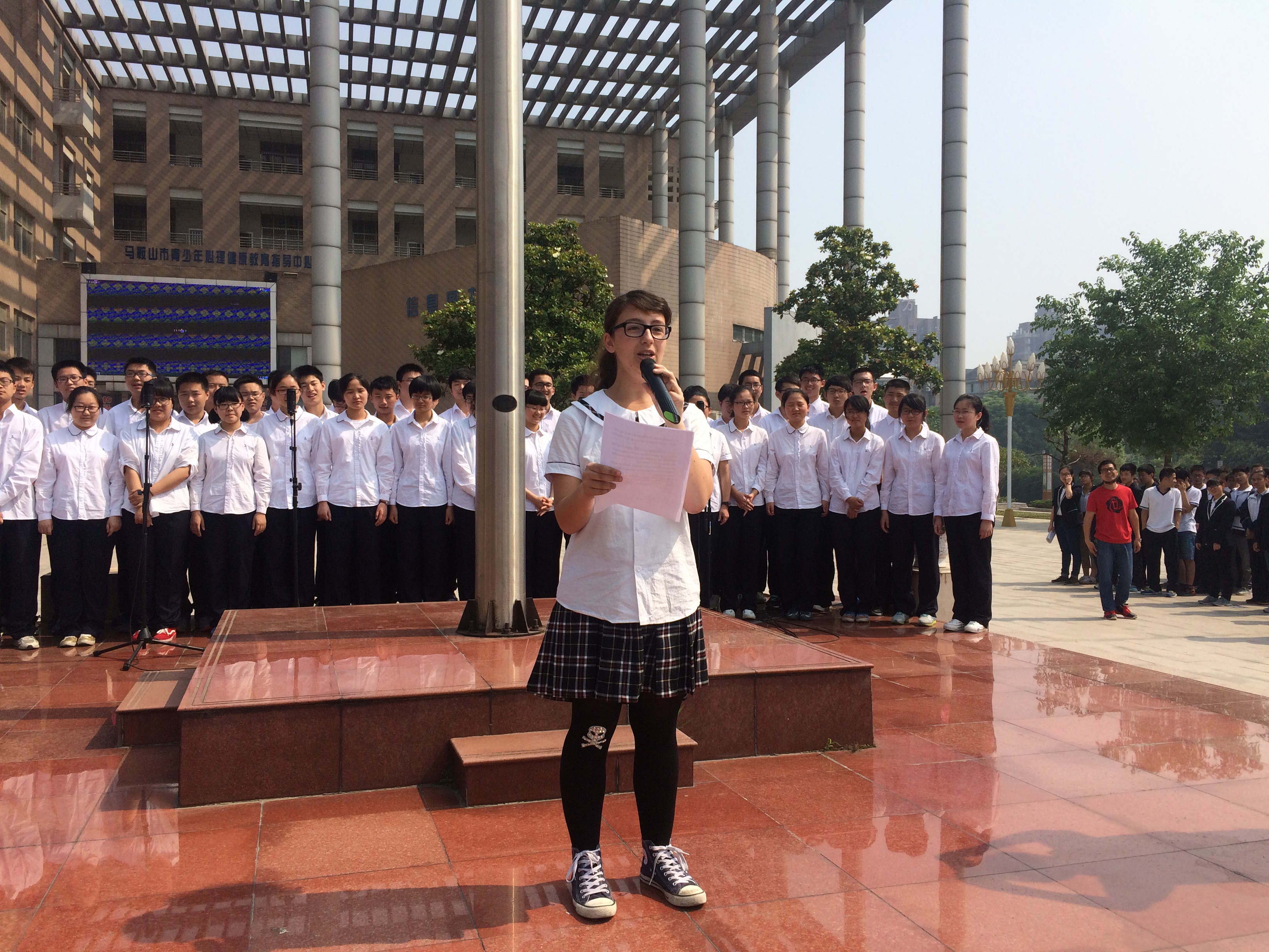 國旗下講話:學生會校長助理來自高一(3)班的(de)陳牧風同學。