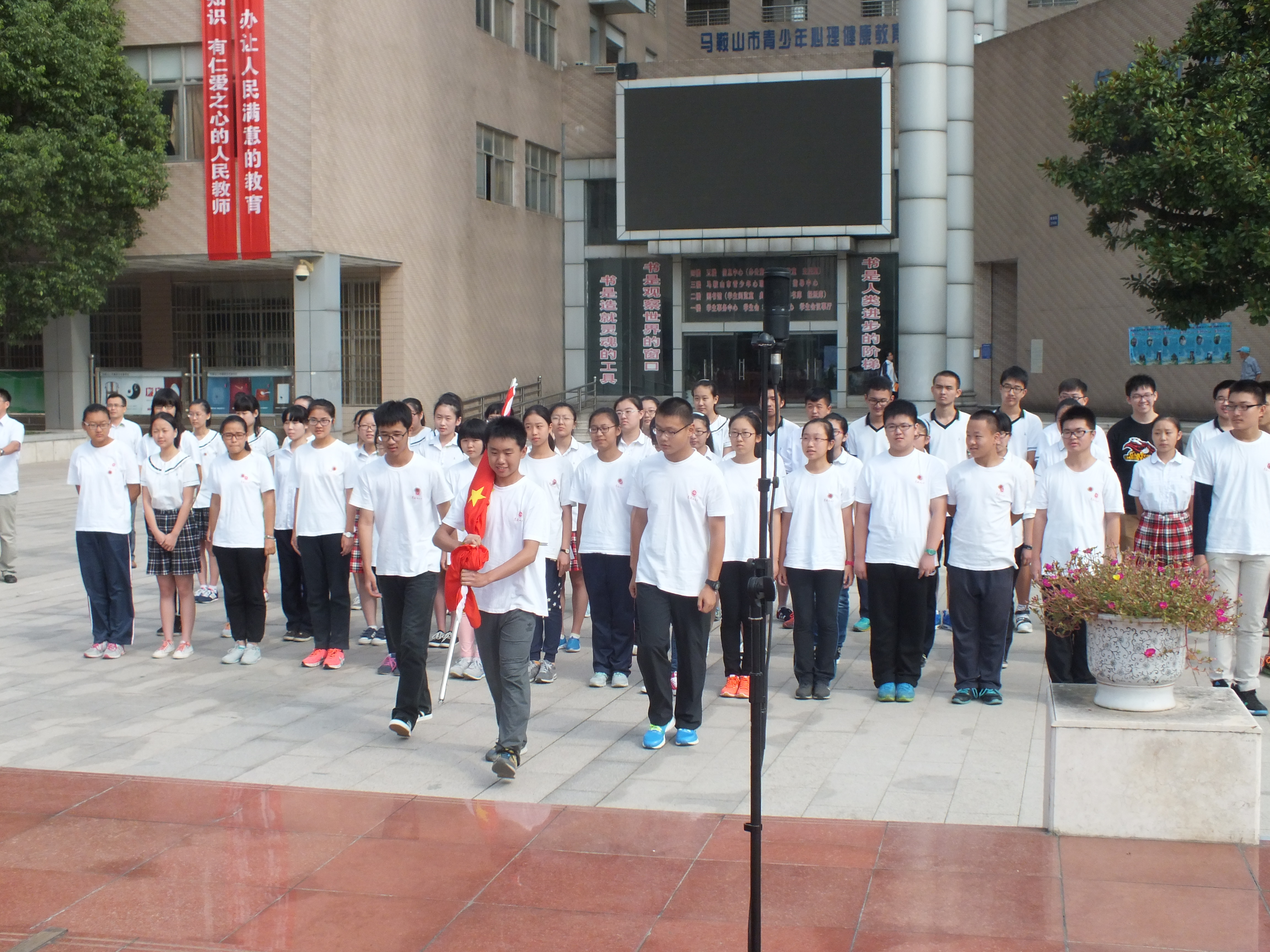 旗手:高一(16)班學生(shēng)資助委員(yuán)李本涵同學。