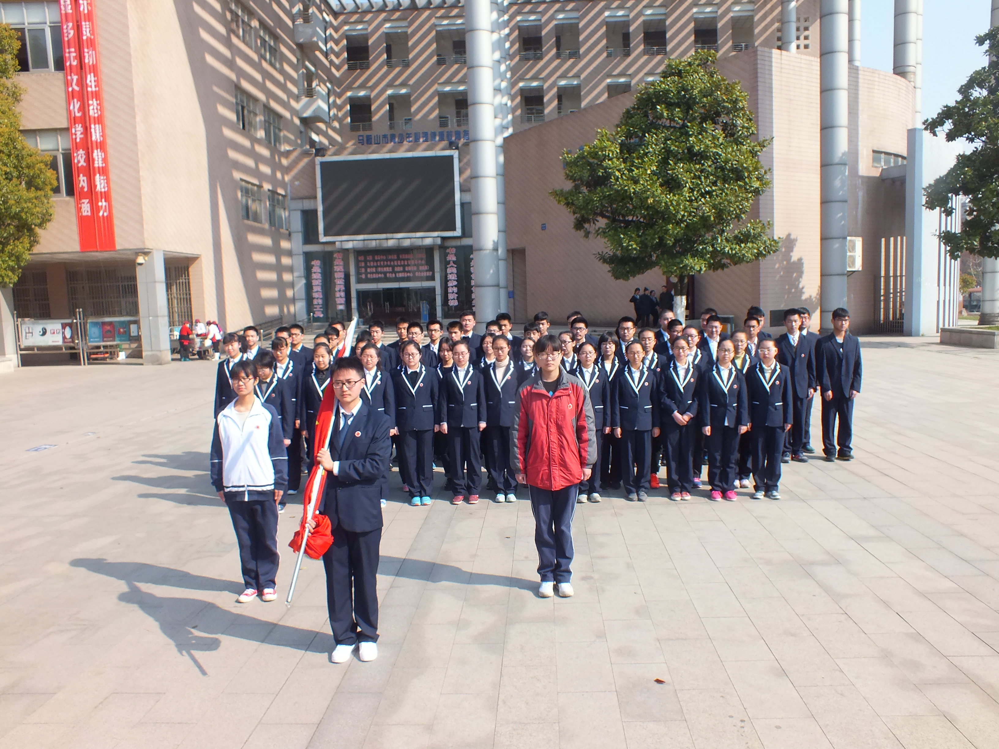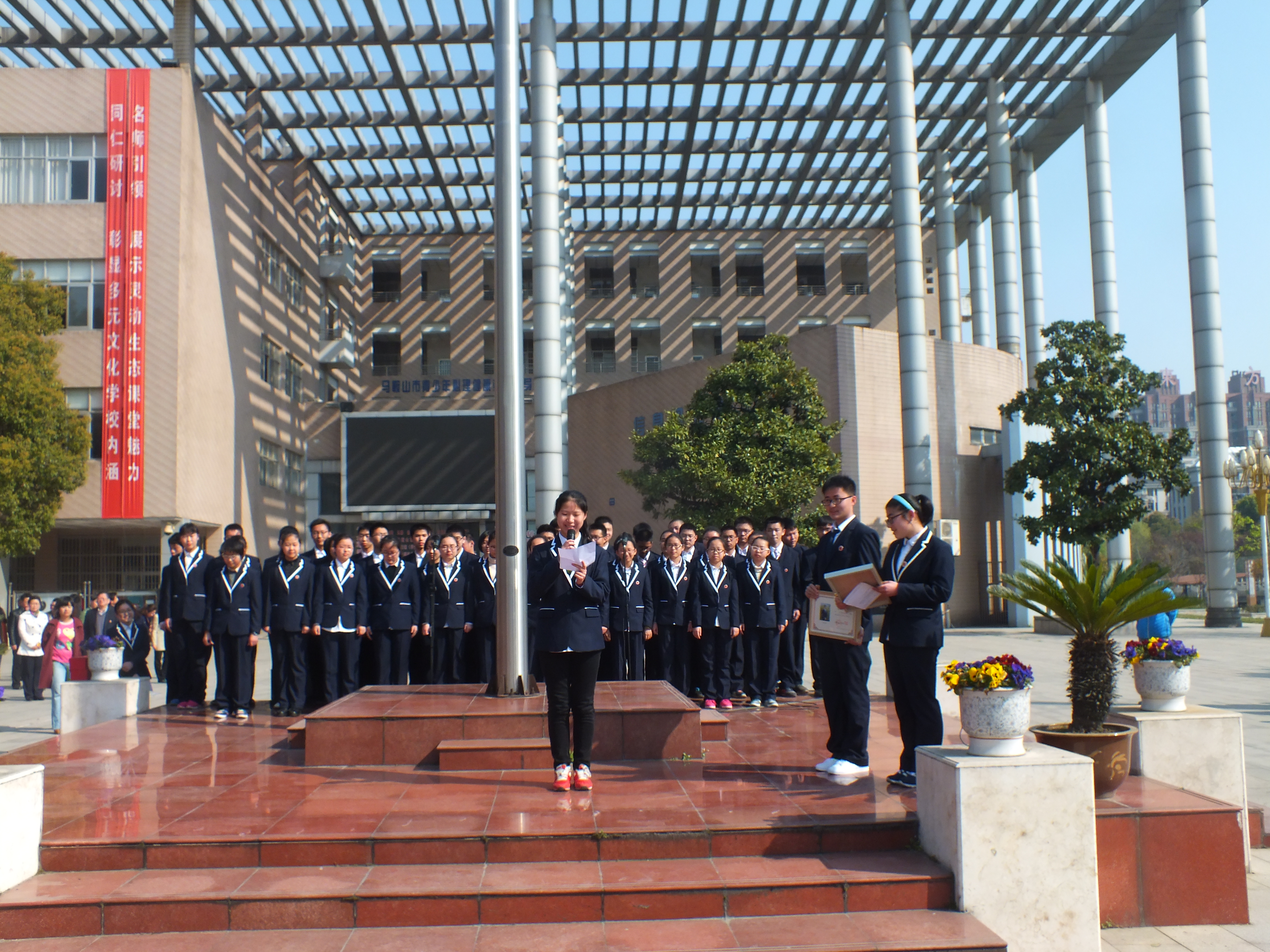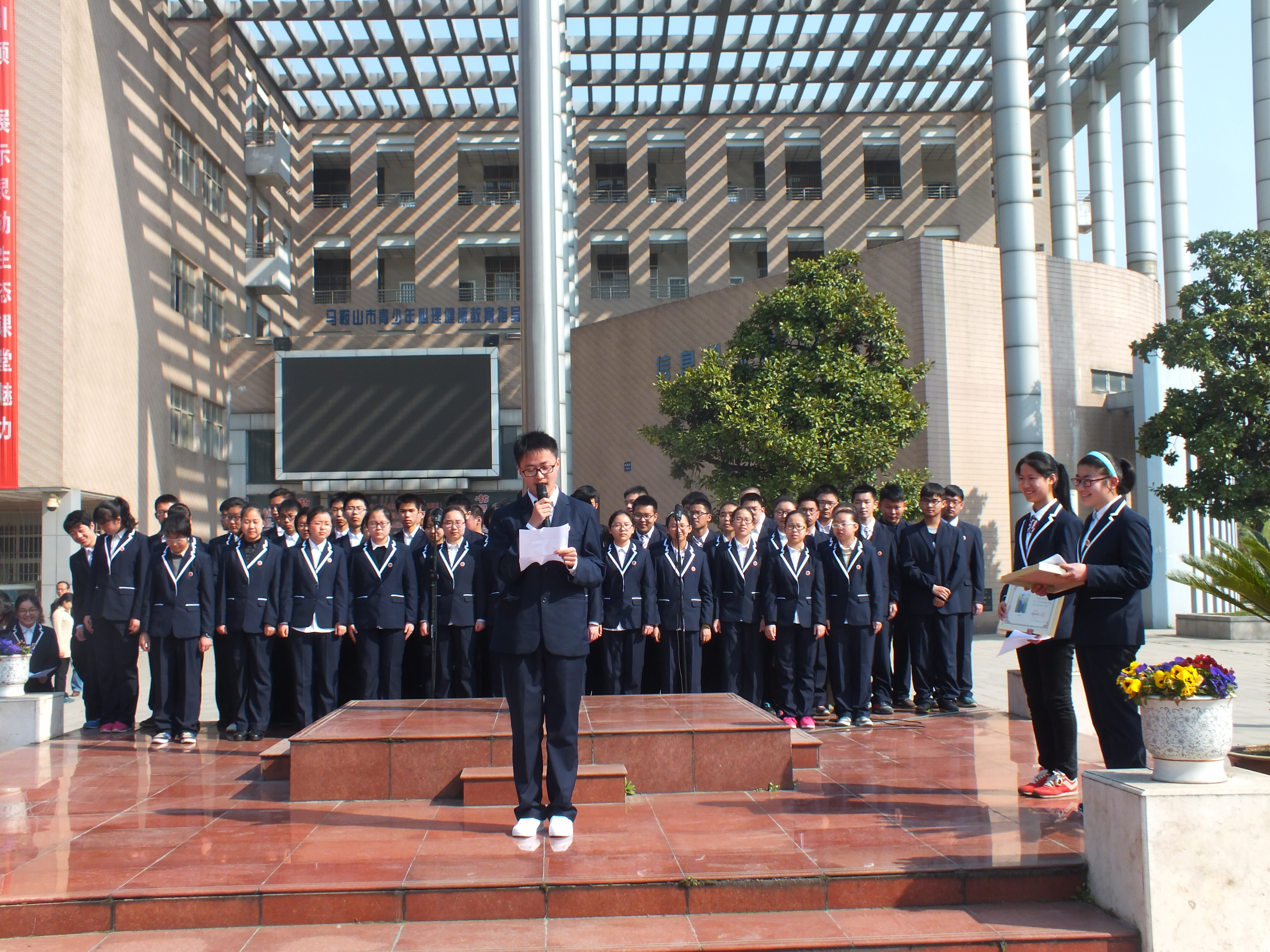 今天擔任國旗下領唱的是來自高一(yī)(8)班的(de)同學們。