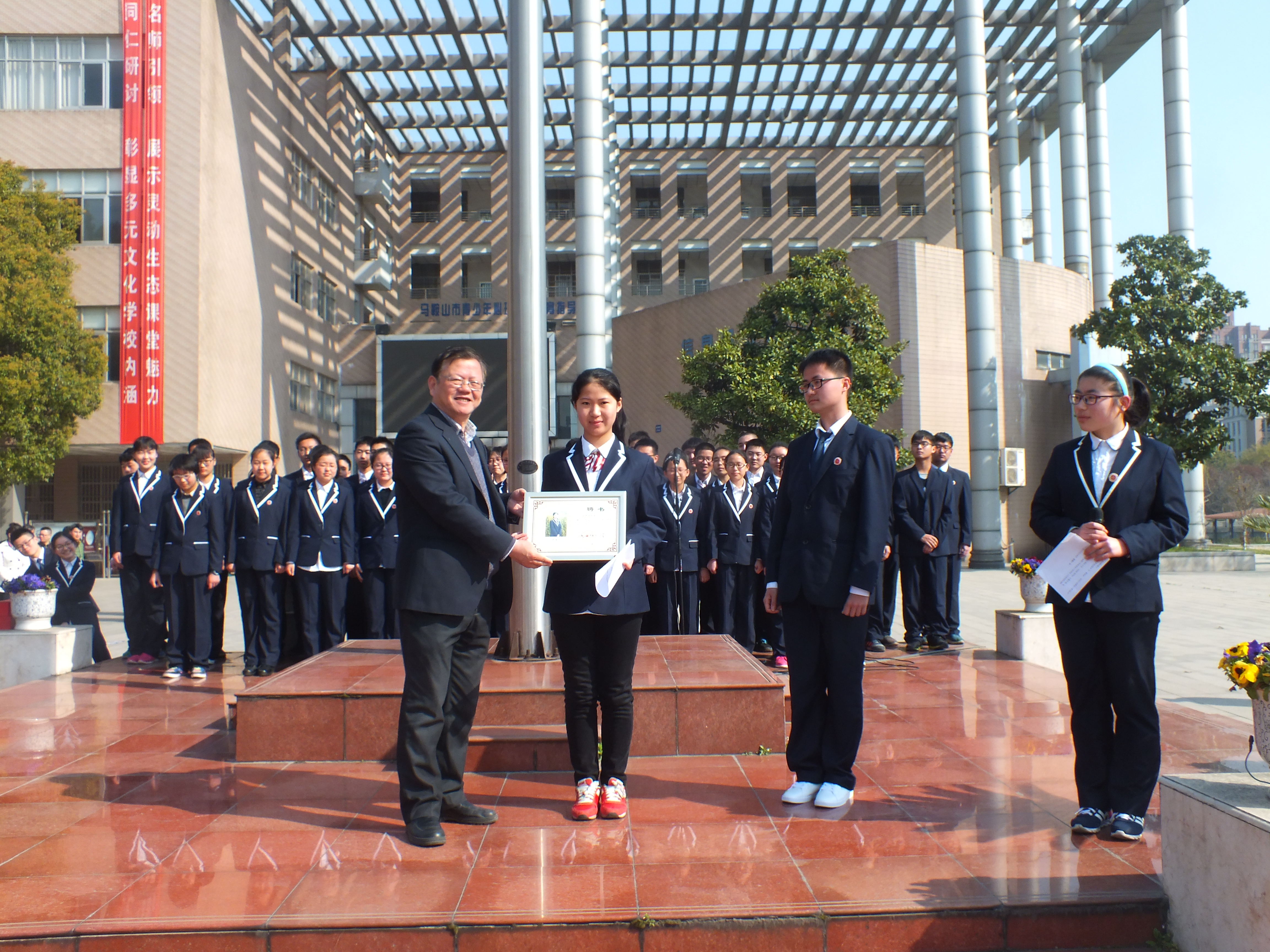 今天擔任升(shēng)旗儀式(shì)旗手是 第五屆(jiè)學(xué)生校長助理(lǐ) 高216班的黃子沐同學(xué)。