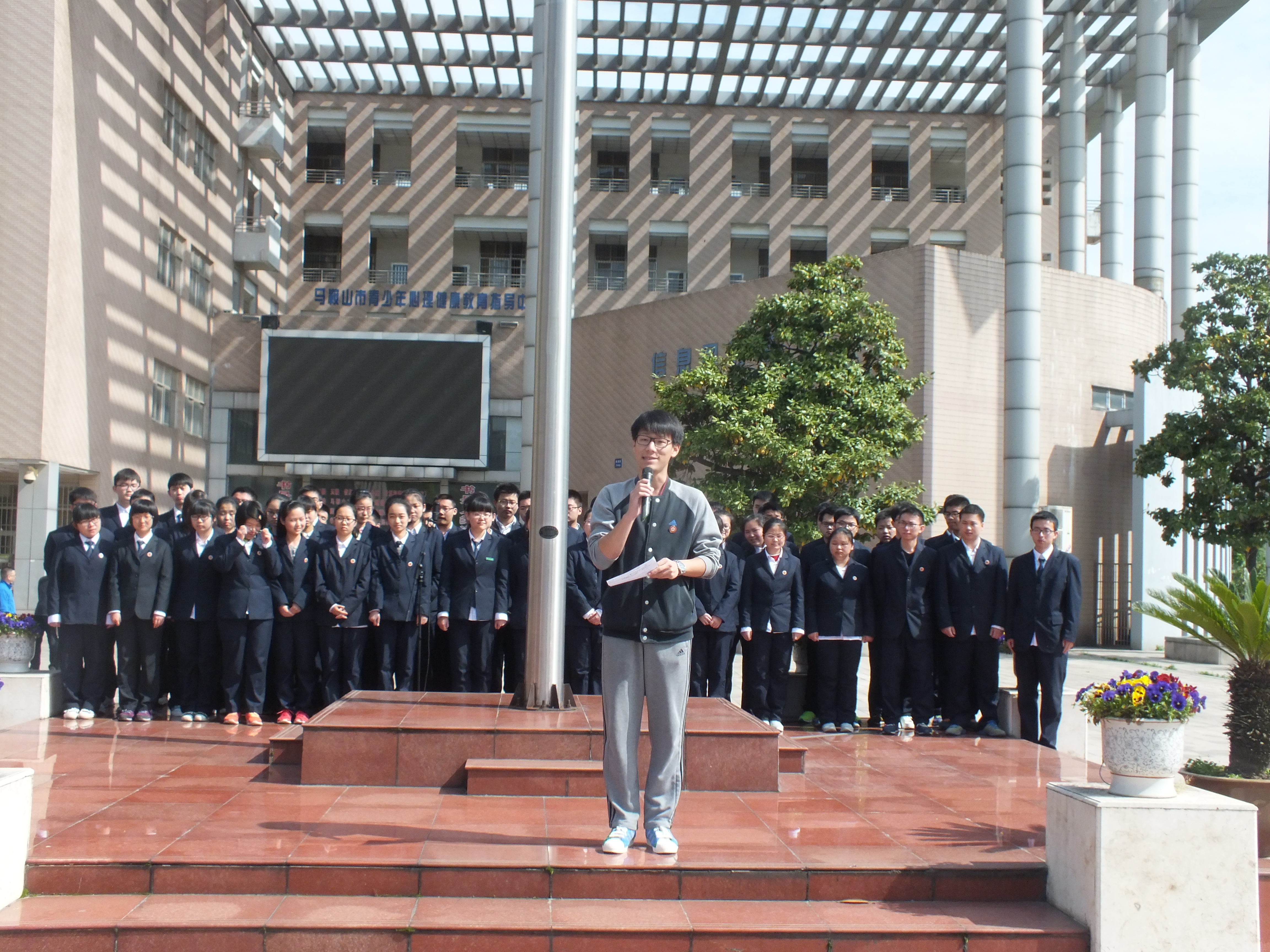 今天擔任升旗手的是曾獲英(yīng)語能力競賽全國一(yī)等獎,來自(zì)高三九班的楊愷心同學。
