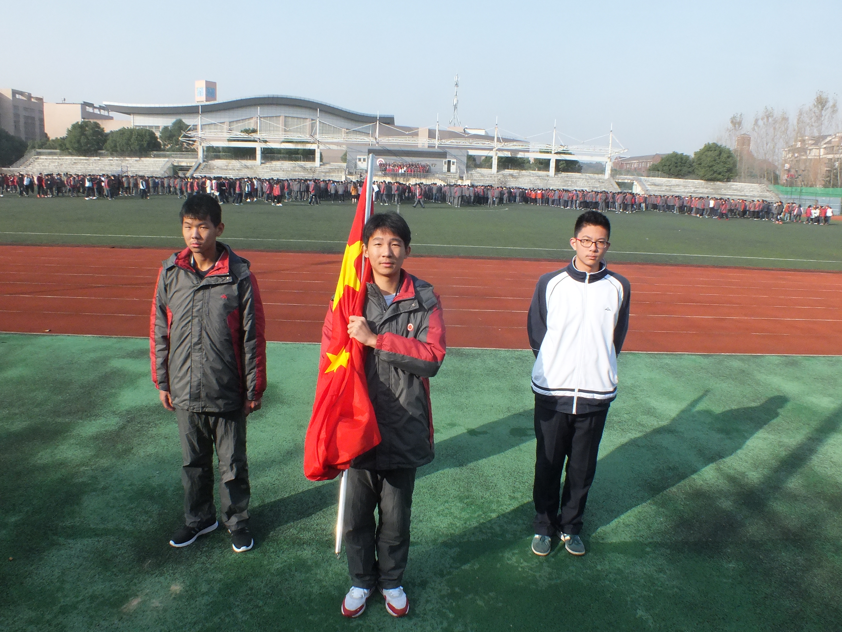 今天擔任升旗手的是來自高一(yī)(4)班的(de)茆立明(míng)同學。