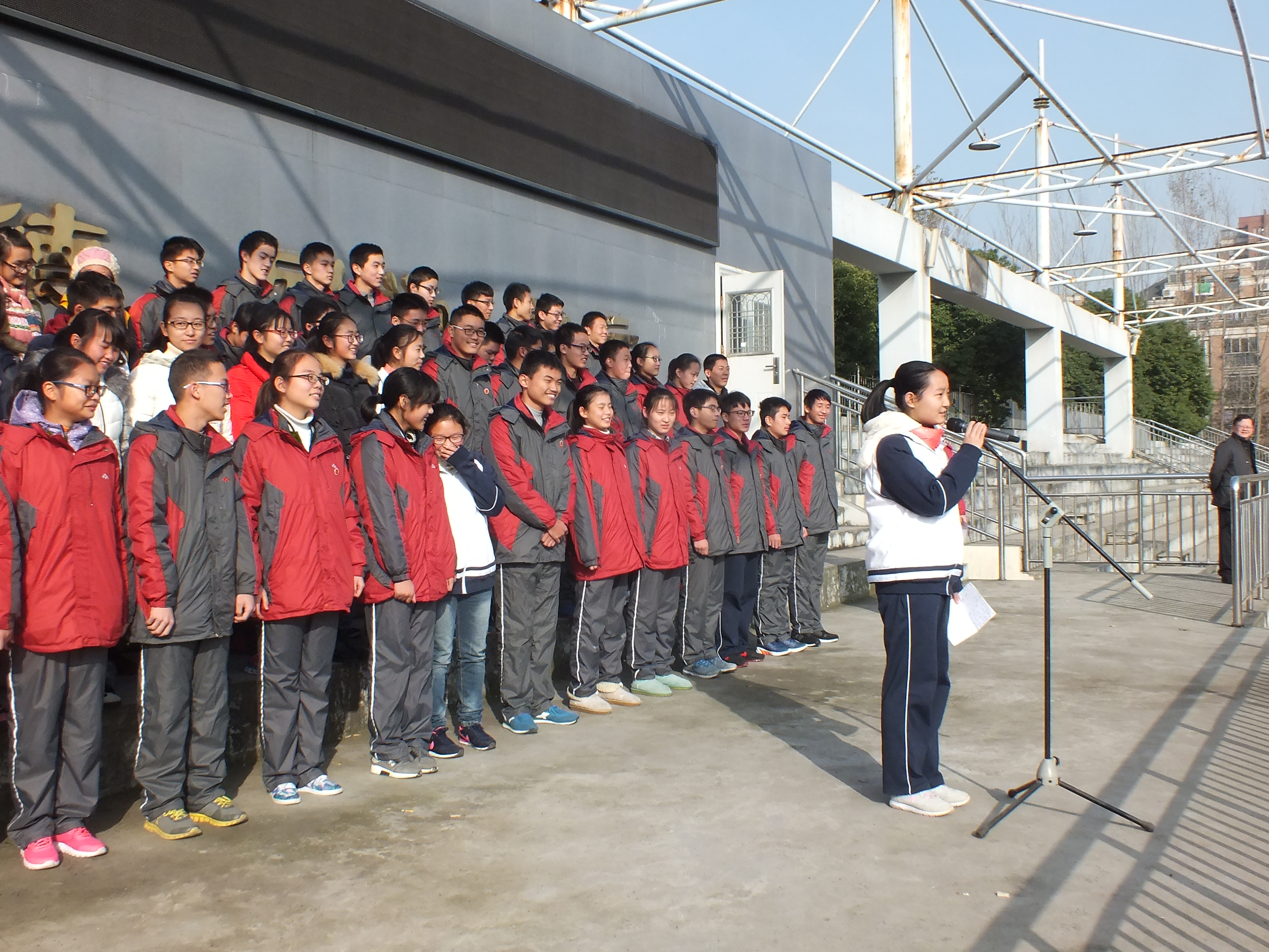 今(jīn)天做國旗下講話的是來自高一(4)班(bān)的張丹萍同學。