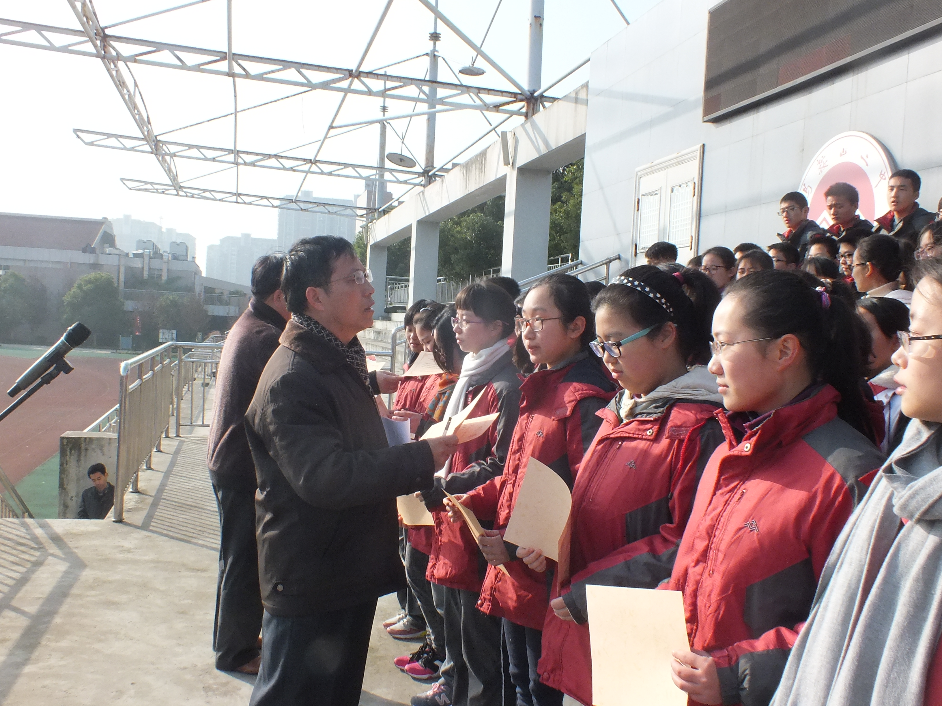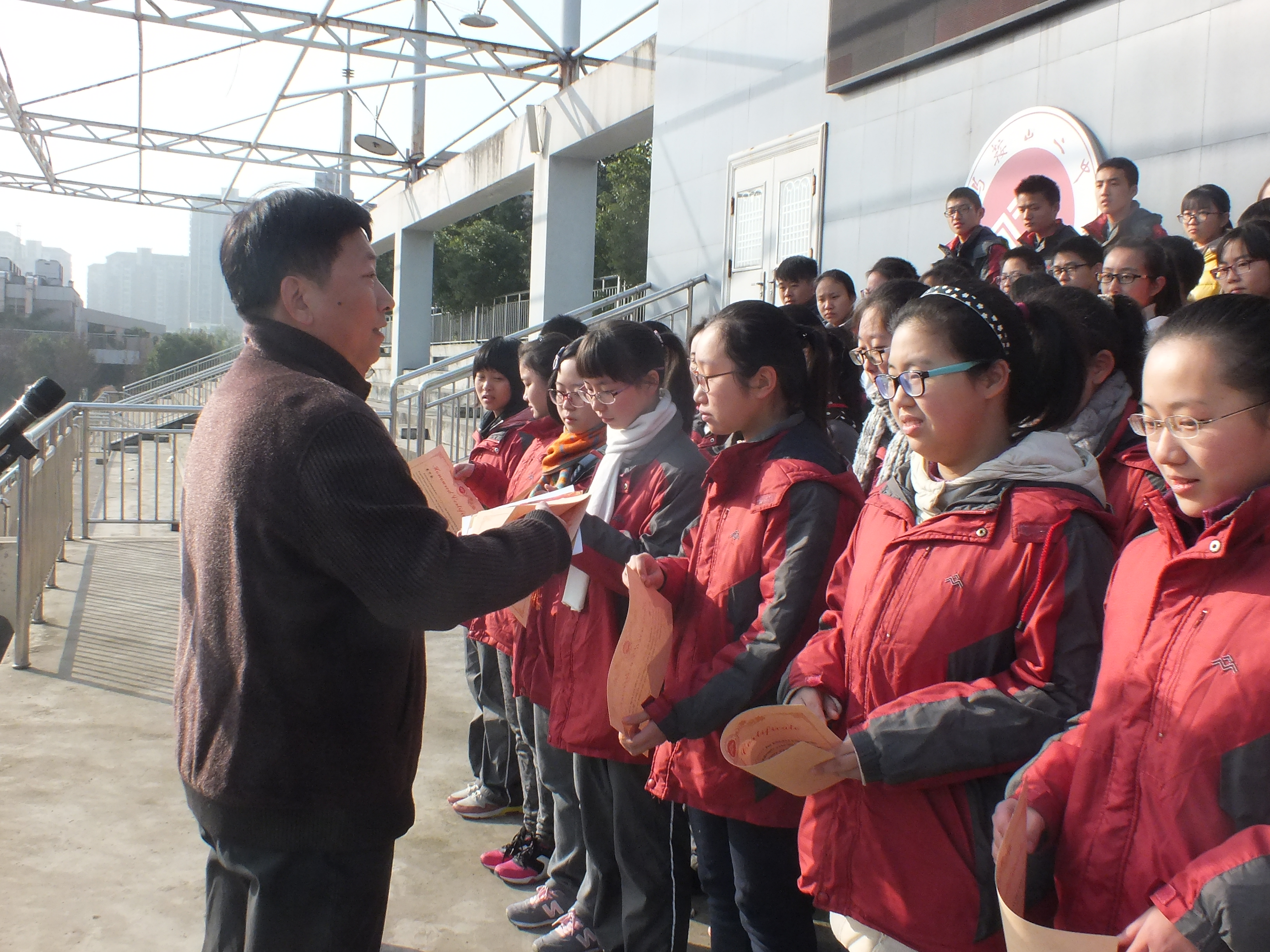 閆(yán)明老(lǎo)師宣讀(dú)我校英語演講風采大賽獲獎名單。