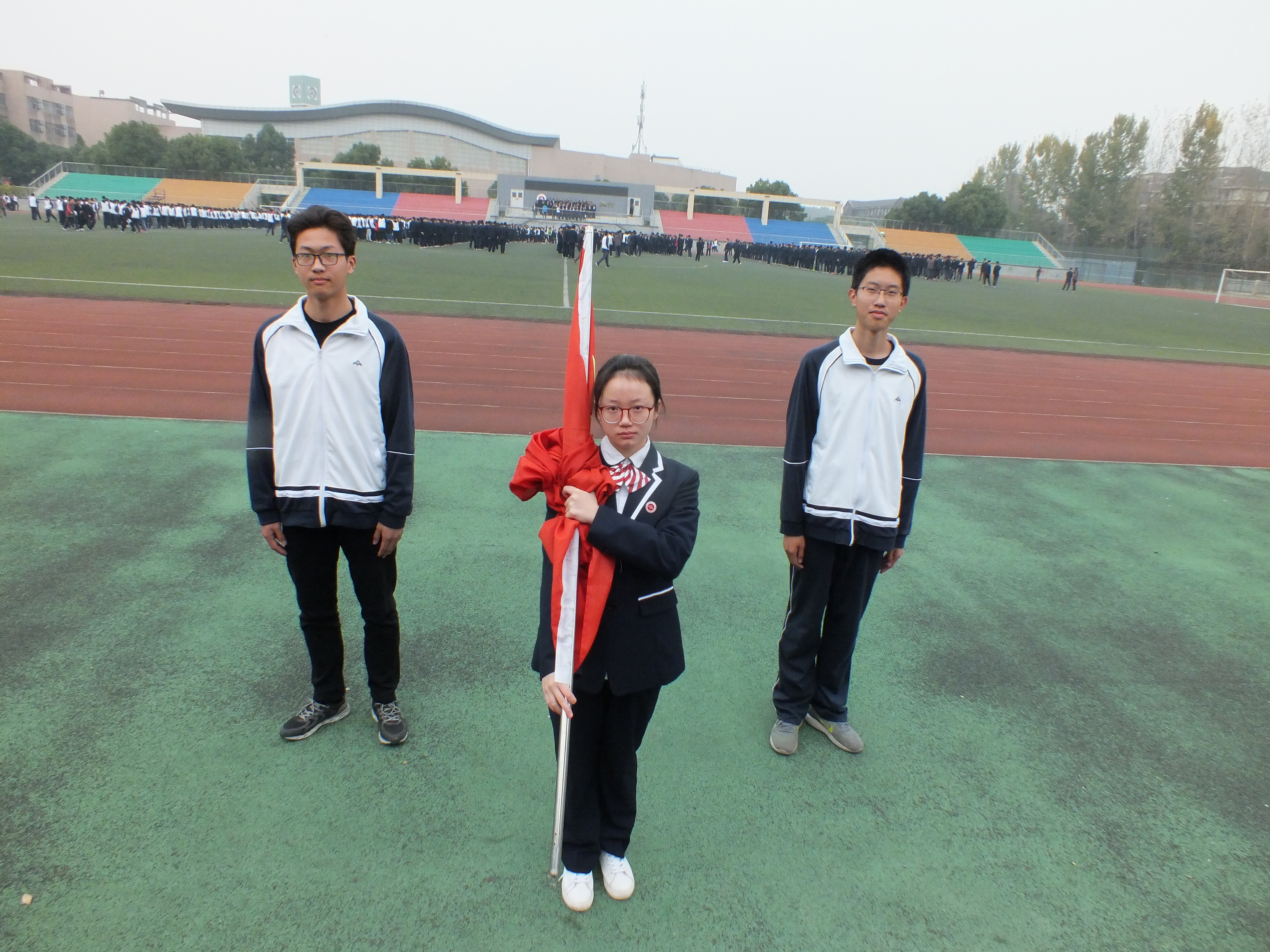 今天擔任旗手的是 在2017第十九屆“語文報杯”作文大賽中獲得省一等獎 來(lái)自高二15班(bān)的團(tuán)支書司晨欣同學。