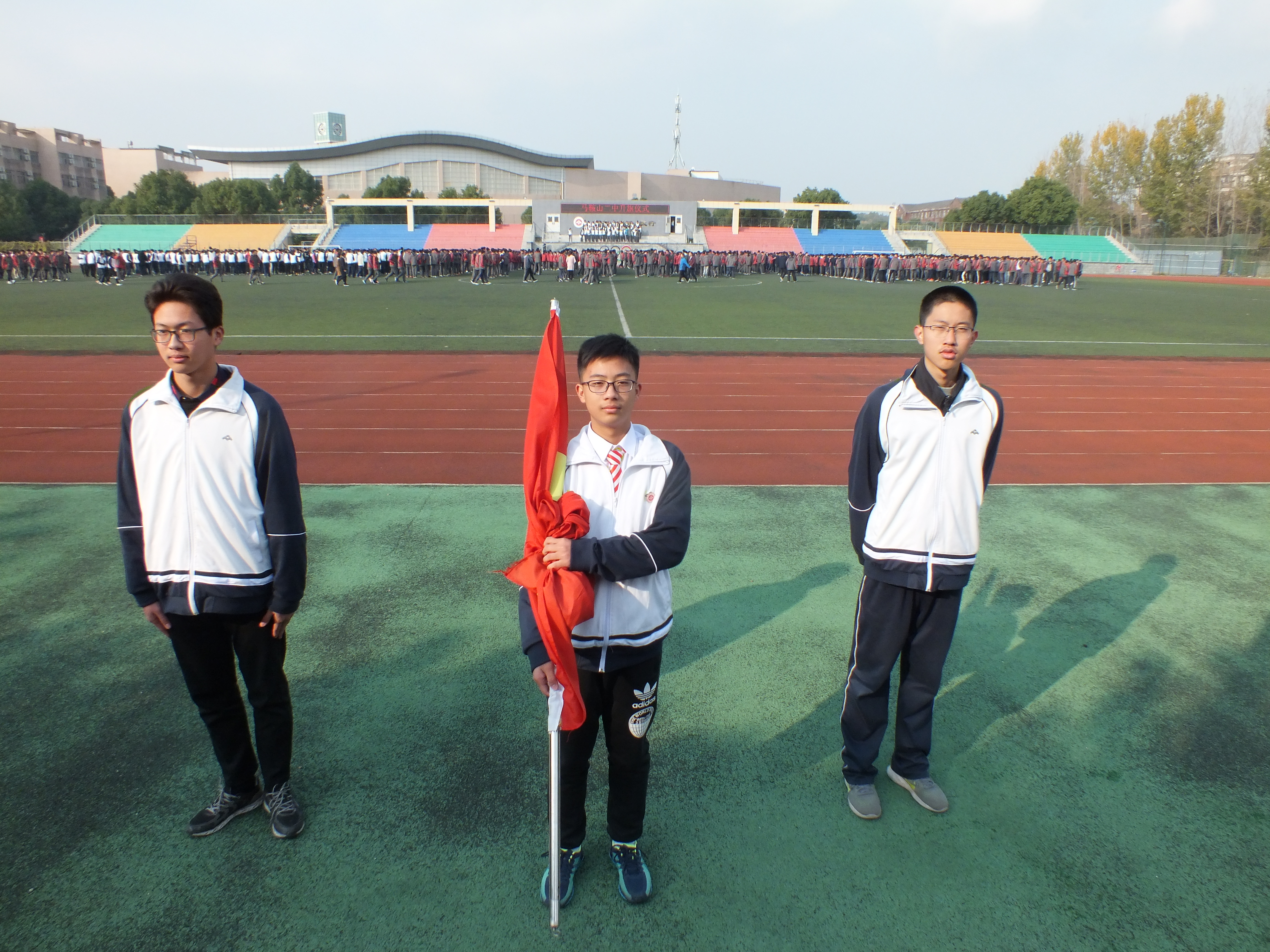 擔任今天升旗儀式旗手的是來自高一(8)班的班(bān)長 許博輝同學。
