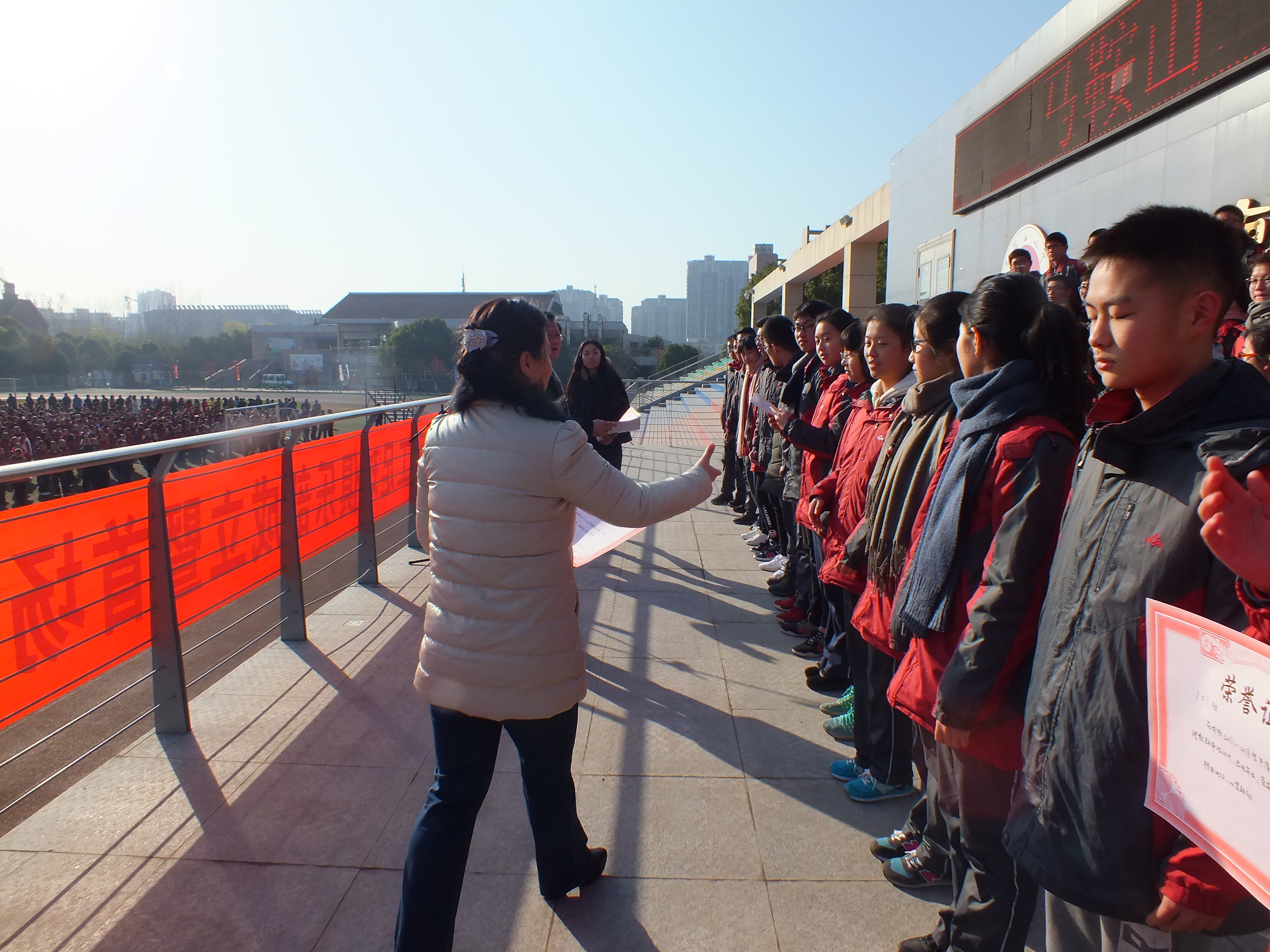 教導處王躍兵主任宣讀高一年級詩歌朗誦比賽獲(huò)獎情況(kuàng)。
