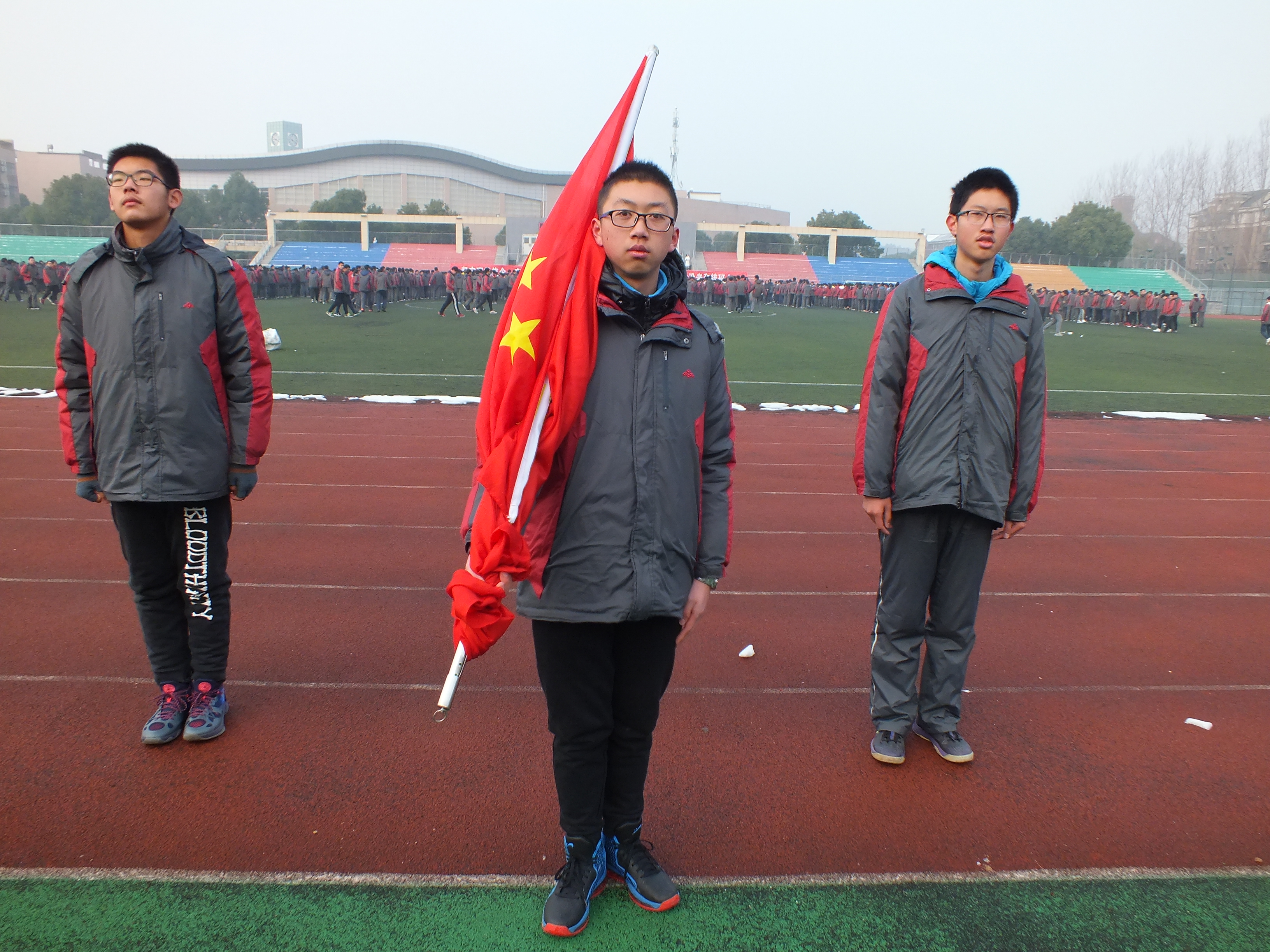 擔任今天升旗儀式旗手的(de)是來自高一(16)班班長唐承宇(yǔ)同學(xué)