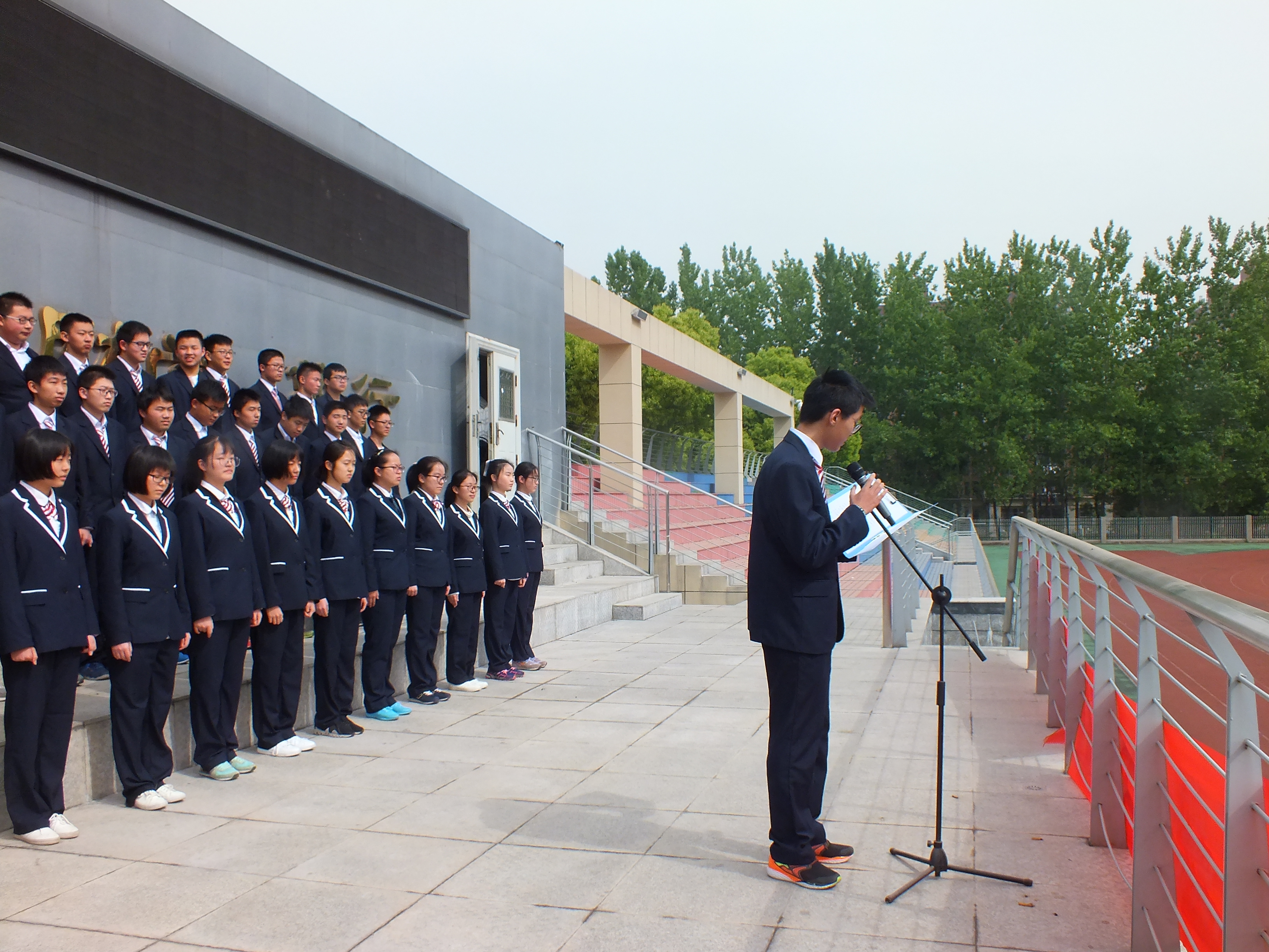 今天為我(wǒ)們領唱的是(shì)來自高一(2)班的同學們: