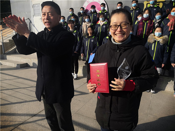 校領導為詩歌(gē)朗誦比賽獲獎班級頒獎