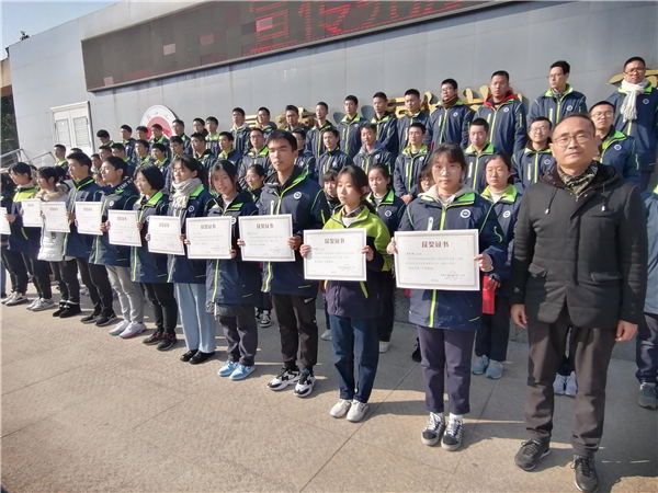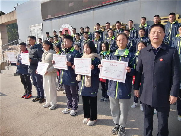 校黨委書記、校長王玉平為“憲法學習”標兵班級頒獎