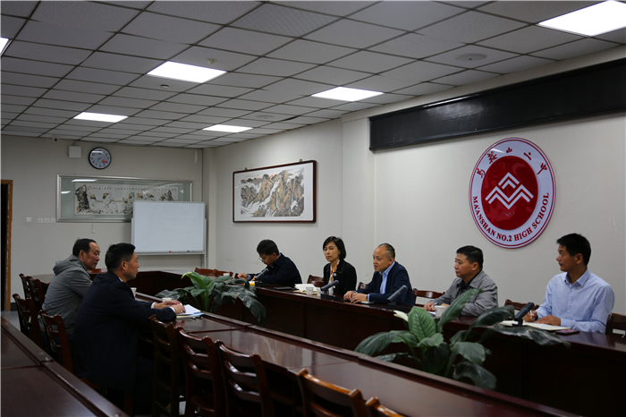 10月18日(rì),市政府(fǔ)副市長秦俊峰一行到馬鞍山二中,就(jiù)校友聯誼工作進行調研,市政府副秘書長任本年、市投資促進(jìn)中心主任袁敏、市投資促進中心對(duì)外聯絡科科長李(lǐ)耀文、市政府辦公室秘(mì)書(shū)五科秘書(shū)汪哲陪(péi)同(tóng)調研。馬鞍山二中黨委書記(jì)、校長王玉平,副校長王躍兵,辦公室副主任張致祥參加了調研活動。
