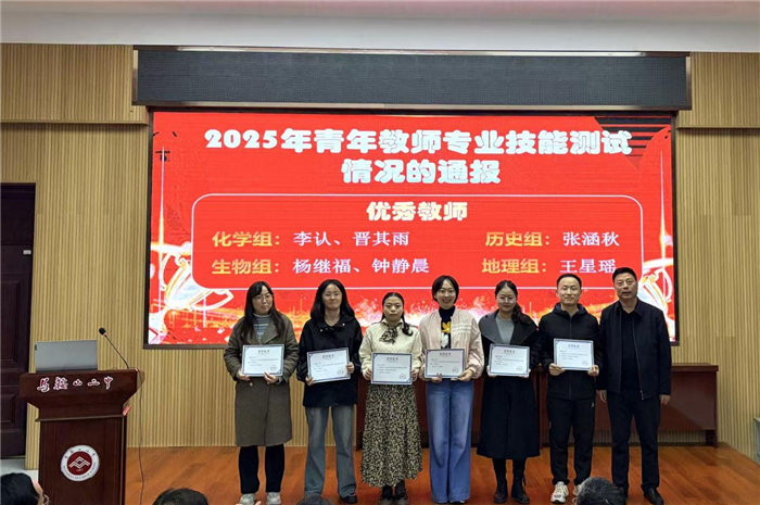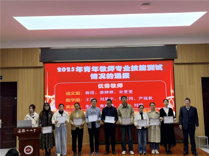 教(jiāo)導處副主任喻全貴宣讀2025年青年教師專業技(jì)能測試情(qíng)況通報,黨委書記王東山與校長(zhǎng)王玉平共同為測試中表現優異的教(jiāo)師頒獎,強調專業技能是教師立身之本,激勵教師精進(jìn)業務能(néng)力。