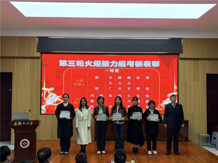 會(huì)議首個環節聚焦火炬接(jiē)力(lì)第三輪工作複(fù)盤與表(biǎo)彰,全麵梳理階段成果,肯定師(shī)生付出。副(fù)校長孫濱(bīn)對火(huǒ)炬接力(lì)夢之隊第三輪工作進行係統總結,從師徒(tú)幫扶成效、青年教師成長、教學質(zhì)量提升等維度,複盤工作亮點與經驗,為後續工作夯實基礎。