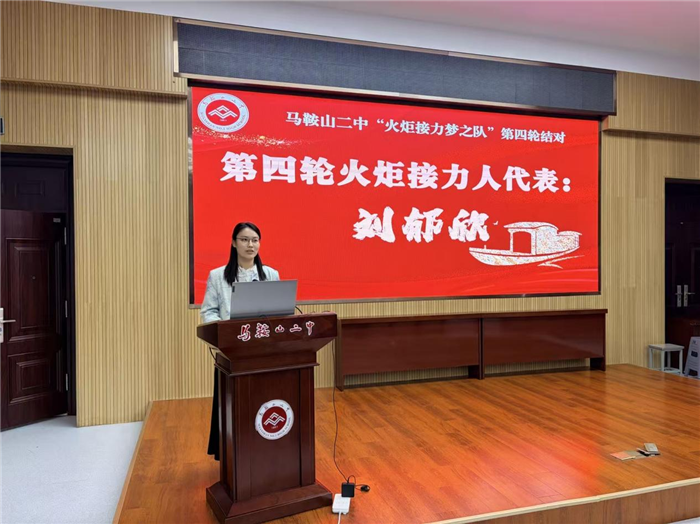 第四輪火炬接力人代表劉鬱欣發言,表達對傳承優秀教學經驗的期待,以及在師徒幫扶(fú)中積極學(xué)習、快速成長,為學校教育教學(xué)發展貢獻力量(liàng)的決心。