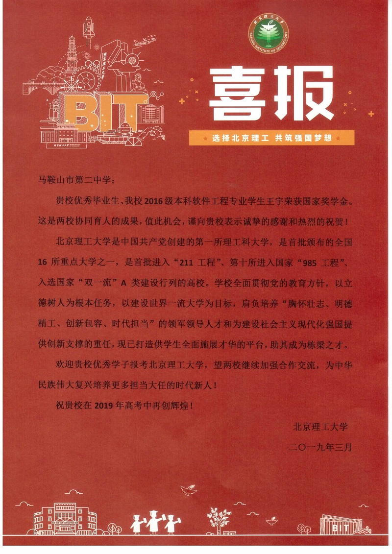 北京理工大學(xué)喜報