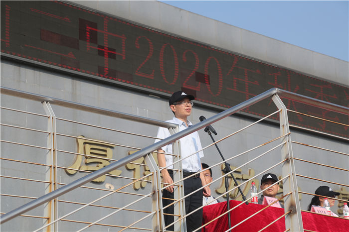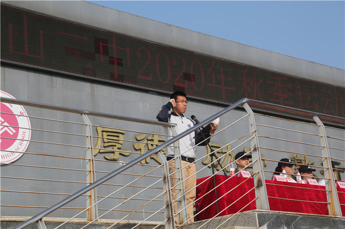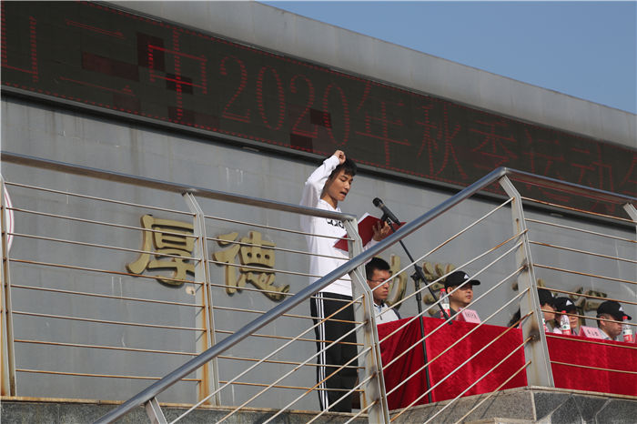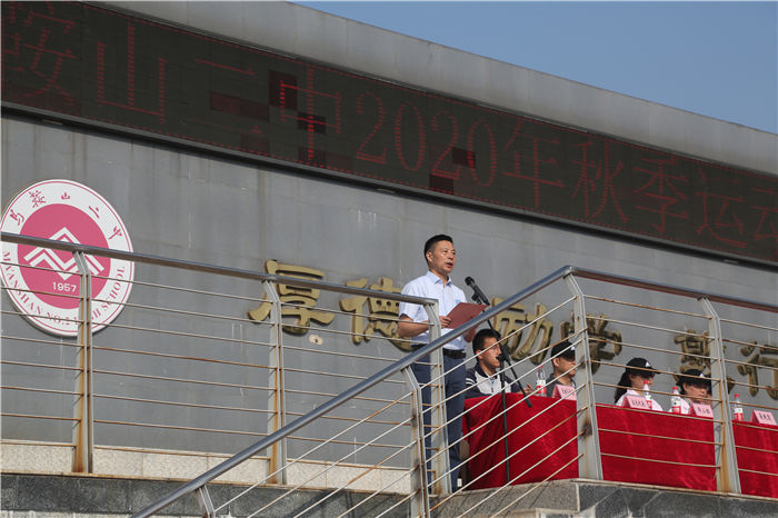 教育局副局長王東山宣布馬鞍山二中2020年秋季運動會正式開始,台下響起(qǐ)了熱烈的掌聲。