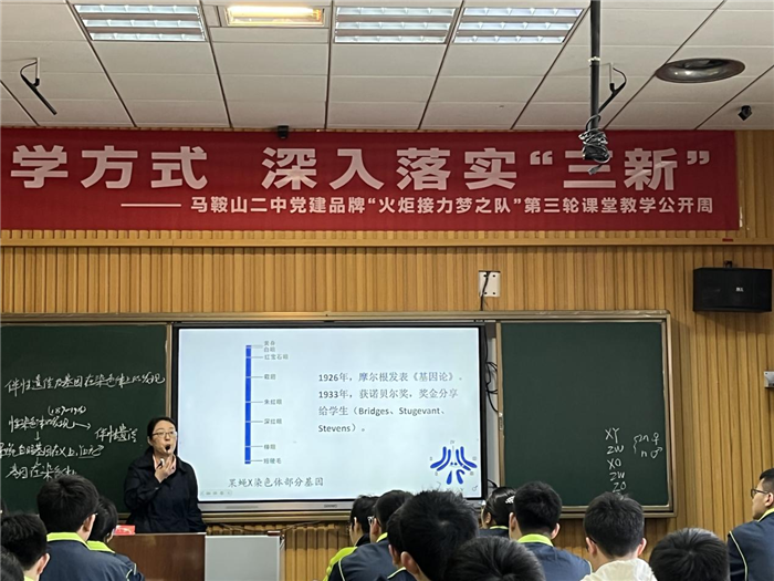 2023年10月(yuè)23日~27日是馬鞍山二中“火炬接(jiē)力夢(mèng)之隊”之傳(chuán)遞人示範課活動(dòng)周。24日上午我校生物組許長(zhǎng)廣(guǎng)老師和楊威老師在錄播教室展示(shì)了兩節精彩的示範課(kè)。二中副校長褚亞飛、市生物教(jiāo)研員禹萍老(lǎo)師及全市各高(gāo)中生(shēng)物教師到場聽課並參與評(píng)課。