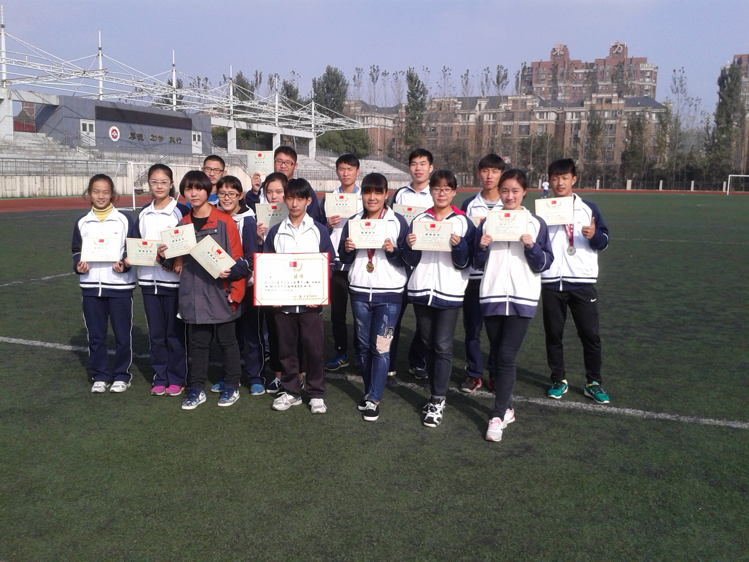201510月(yuè)19日至21日,馬鞍山市第十一屆運動會(中小學組)田(tián)徑比賽在馬(mǎ)鞍山師專舉行,來自全市66所中小學,共906名運動員參加了此次比賽。我校代表隊男女共16人在教練員(yuán)虞琴老師的帶領下參加了高中組的角逐。經過3天(tiān)的奮力(lì)拚搏,取得了男女團體(tǐ)第四名(總分117)的好成績。其中高三(16)班的(de)朱小帥同學以109108226222的成績分別二次打破市(shì)中學生田徑運動會男子甲組100M200M的最高紀錄,並分別獲得冠軍。高(gāo)一(8)班的徐錦龍同學以22秒(miǎo)9的成績在男子甲組200M預賽中打破了最高紀錄,並獲得男子甲組100M亞軍的好成績。高三(15)班包蕾同學分別在(zài)女子甲組(zǔ)800M1500M比賽獲得冠軍,高一(14)班的畢良玉同(tóng)學獲得男子甲組鉛球冠軍,高二(16)班的黃綺涵同學獲得女子甲組100M欄季軍。