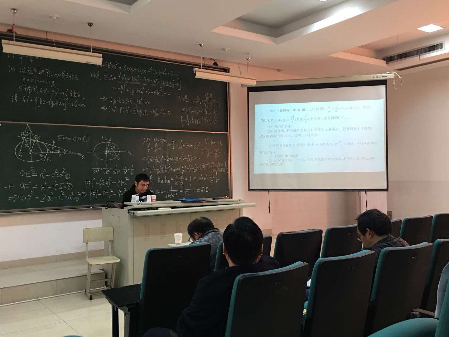在隨(suí)後的專題講(jiǎng)座中(zhōng),盧建軍老師就圓錐曲線中(zhōng)的性質(zhì)等與在座的老師們展(zhǎn)開交流與討論(lùn),令在座的老師們(men)受益匪淺。
