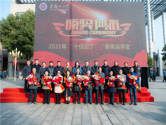 最後,馬鞍山二中黨委書記、校長王玉平作總結講話。他向獲(huò)得2021年“十佳園丁”稱號及提名獎(jiǎng)的老師(shī)們致以(yǐ)崇高的敬(jìng)意,向榮獲“春來獎學金”的優秀學子們表示熱烈的祝賀,並向一直以來關心(xīn)和支持二中發展(zhǎn)的各位領導和社會各界人士表示衷心的感謝。他希望每一位新時代的二中人,秉承(chéng)“厚德、勵學、敦行”的校訓,堅守(shǒu)“上好(hǎo)每一節課,關愛每一位學(xué)生”的優良教風,弘揚“尊師守紀、勤奮學習”的優(yōu)良學風,時刻牢記習(xí)近平總(zǒng)書記的殷殷囑托,真正做到不負初心使命,不負壯麗青春,不負偉大時代。(撰稿人:趙博文 審核人:王玉平)