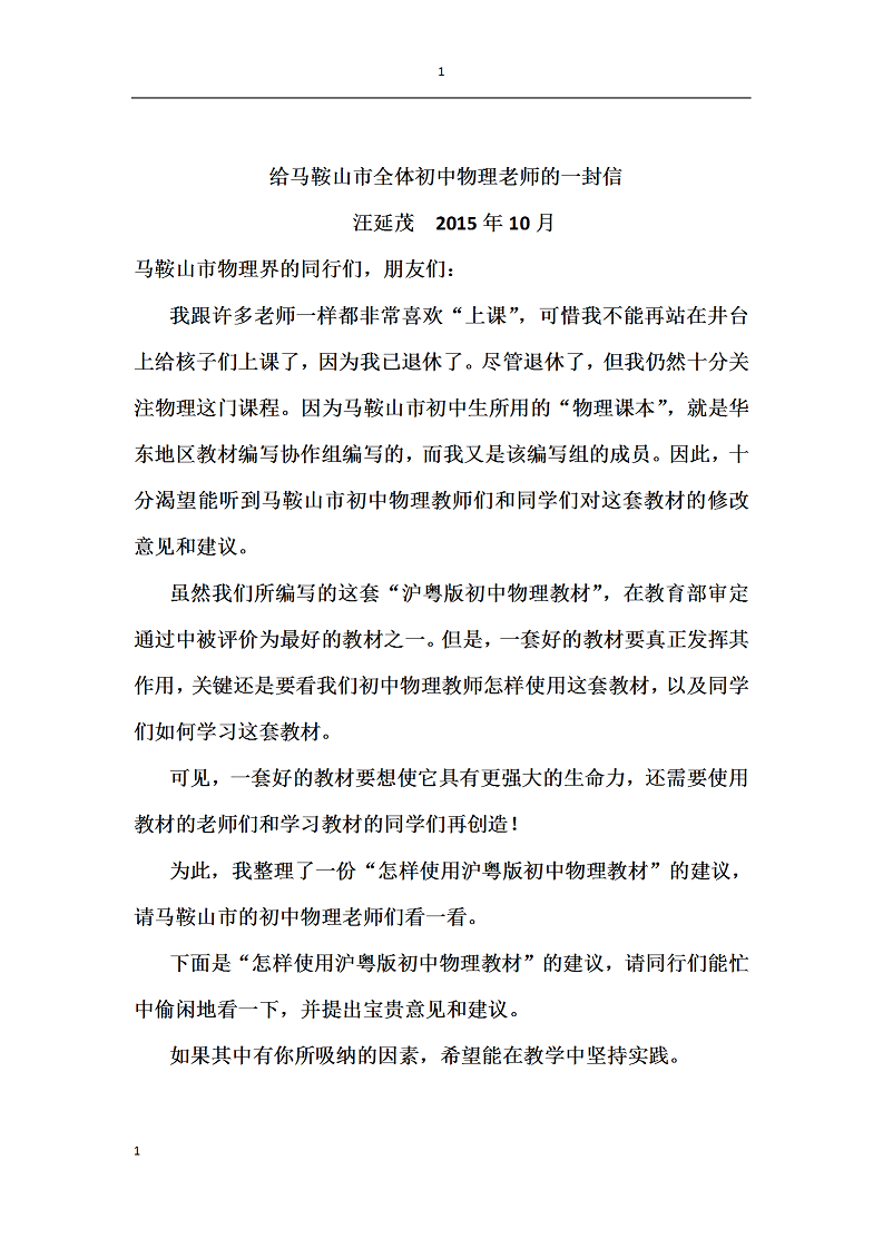 給馬鞍山市全體初中物理老師(shī)的一封信(xìn)
