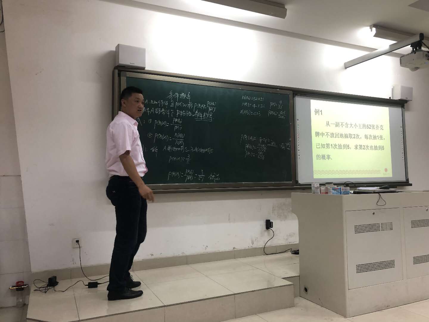 第二節課是由杭仁(rén)禮老(lǎo)師帶來的《條件概率》。杭老師聲音洪亮,語言幽默風趣,清楚地向學生解釋了條件概(gài)率的概念,以及告訴學生如何利用條件概率的相關知識解決相關數學問題。在他的調動下學(xué)生展現了很(hěn)高的學(xué)習熱情。課堂氣氛十分活(huó)躍(yuè)。