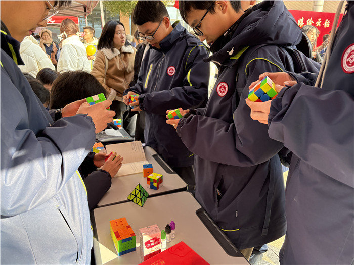 沿(yán)著此起彼伏的搶答聲,91视频网站來到STEM生物社的活動點(diǎn),參加活(huó)動(dòng)的同學們爭先恐後地報出自己的答案,在知識(shí)的海洋中暢意競遊,勇爭第一。同類型的還有義封社、動漫(màn)社、CI英語社的問答活動(dòng)。晨星廣播站的接龍遊戲,讓身處(chù)於激烈比賽中的同學們展露自我,增長知識,也與誌趣相投的人結識。一旁的魔方社卻是一片“靜”的(de)海洋——選手們(men)專注(zhù)於(yú)指尖旋轉的魔方,無論環境多麽嘈雜,他們都能保持自己全身心(xīn)地投入,就像他(tā)們對自己技(jì)術的精益求精。