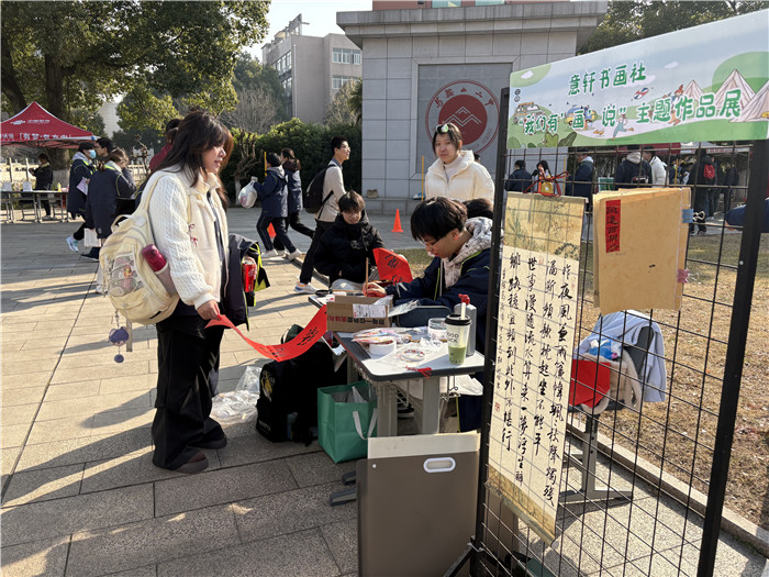 廣場中央的草坪(píng)上,是攝影社、書(shū)畫社、海報(bào)社、模型社聯(lián)合舉辦(bàn)的主題展覽活動,眾多優秀作品(pǐn)於此齊聚,筆鋒飄逸的書法作品、栩栩如生的畫作、令人歎為觀止的(de)精妙模型,都讓路過(guò)的同學不禁駐足欣賞,流連忘返。