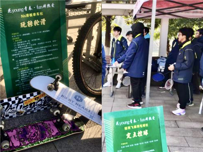 諾貝爾橋上,則是NS滑板單車社的領地,單(dān)車慢騎,看似簡單,卻非常(cháng)考驗技術,規則(zé)簡單的繞障遊戲,也因發生在校園中而別有了(le)一番趣味。體育競賽,自古以(yǐ)來便是競技精神之源。且看乒乓球社的技巧(qiǎo)大賽,看場上選手們揮灑汗水的風姿,看那一條條於空中劃出的優美曲線,好似弓上蓄勢待發的弦,頃刻便要迸發出無(wú)限的力量。